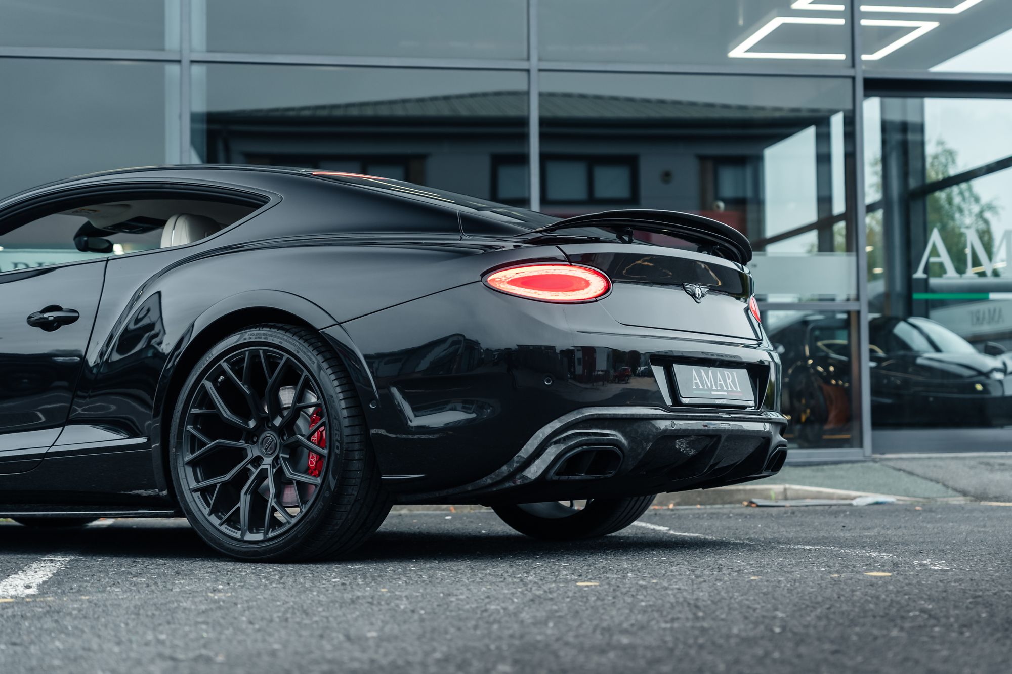 This 2021 Bentley Continental GT V8 Urban is a show-stopping grand tourer dressed in Onyx Black Metallic with a full Black leather interior—every inch crafted for presence and prestige. Registered in September 2021 (71 plate), the car is enhanced with Bentley GT Urban Aero package, featuring wide-arch carbon fibre bodywork, an Urban front and rear bumper and splitter, side extensions, rear diffuser, spoiler, plus full carbon fibre inserts and the rear spoiler. The look is sharpened by 22-inch Urban forged alloy wheels in satin black, red brake calipers, blacked out Bentley badges front and rear, and the Continental’s Blackline Specification. Further luxury comes via Mulliner Driving Specification, Touring Specification, Bentley Dynamic Ride, and the Front Seat Comfort Specification. It includes the performance exhaust and satin black billet exhaust tips, wheel spacers to enhance stance, and features such as inductive phone charging to blend usability with craftsmanship.