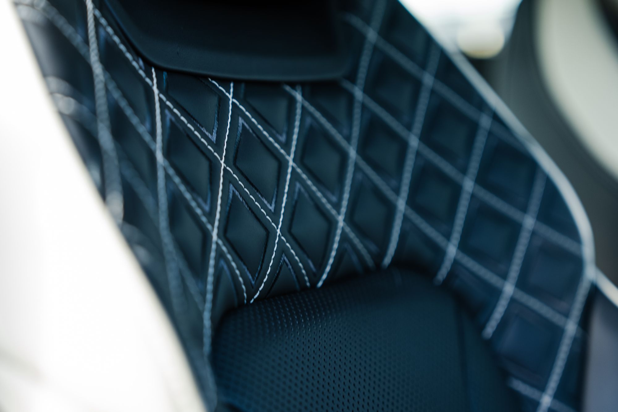- Mulliner Colour Split with Beluga Secondary Hide and Linen Main Hide to Seat and Headrest Edge Panels.