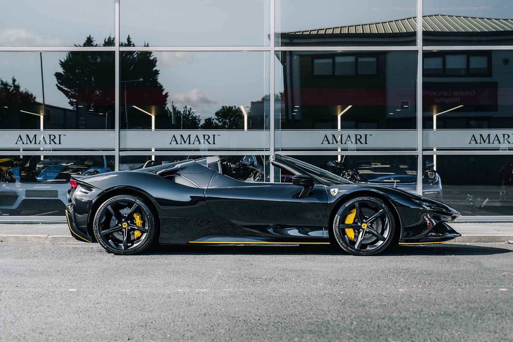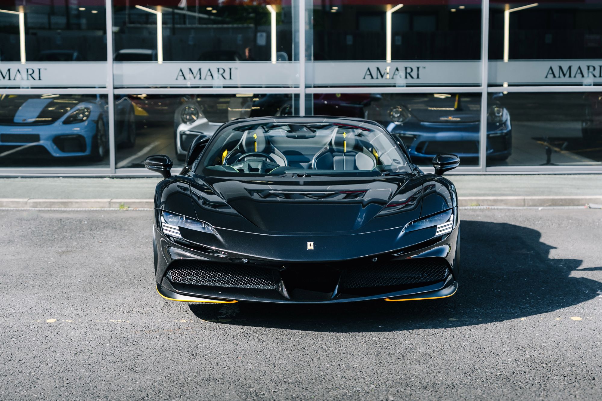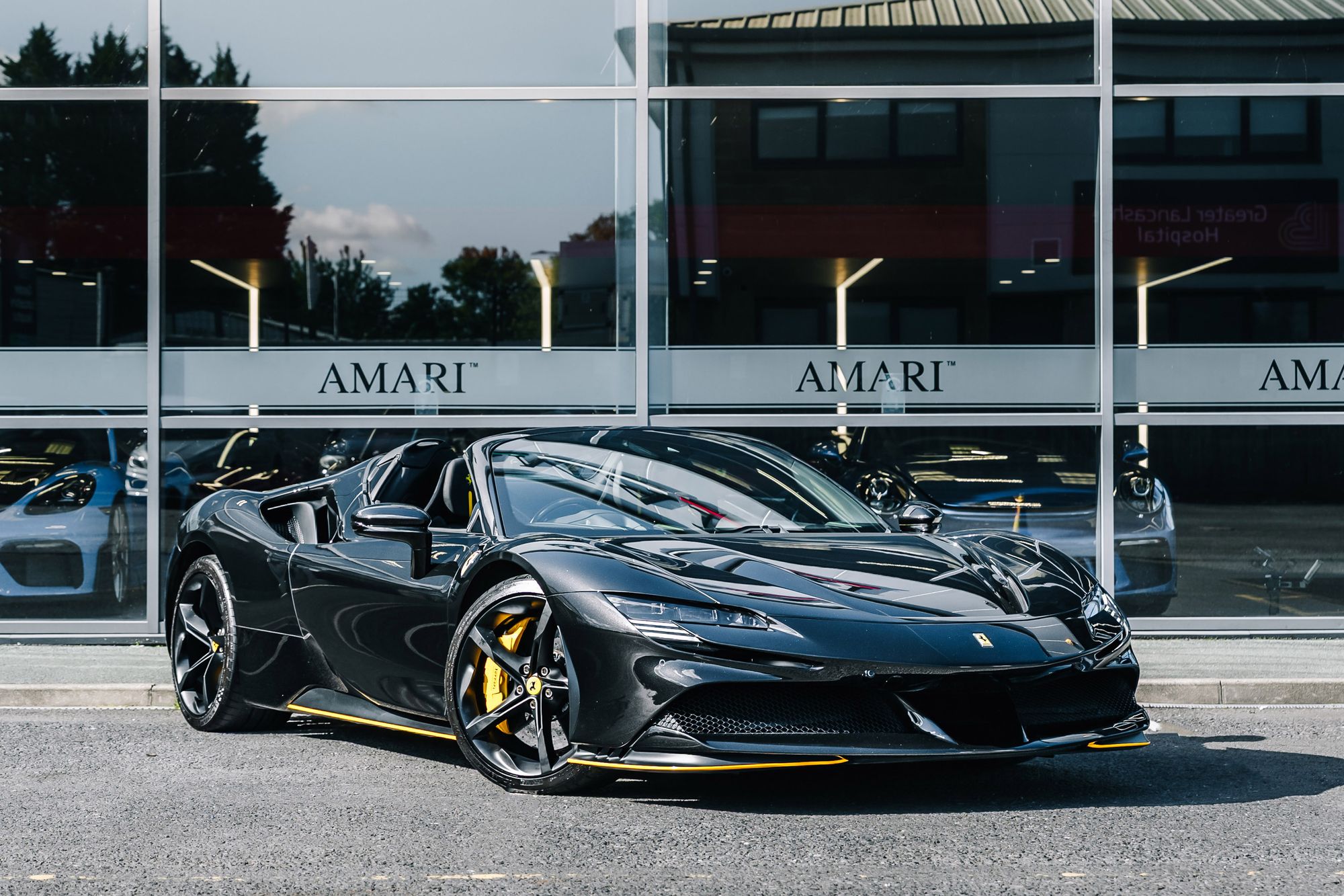 This 2022 Ferrari SF90 Spider in Nero Daytona with a Nero interior is a striking example of Ferrari’s hybrid supercar engineering, combining breathtaking performance with meticulous attention to detail. Registered in October 2022 and covering just over 5,500 miles, this right-hand drive example has been meticulously maintained with full Ferrari main dealer service history, including the most recent service at 5,530 miles in August 2025. Its exterior is protected by full Paint Protection Film and enhanced with carbon fibre details, matte-black 20-inch Dark Forged wheels, black tailpipe tips, Scuderia Ferrari shields, and vibrant yellow brake calipers. Inside, the cabin features carbon fibre racing seats, the Carbon Fibre Driver Zone with LED shift lights, and luxurious Giallo yellow stitching and accents on the seats, belts, and headrests, creating a striking contrast that perfectly balances sportiness and sophistication. Modern conveniences such as Apple CarPlay, a premium hi-fi system, an electrochromic rear-view mirror, parking sensors, a rear camera, an Adaptive Frontlight System, and a suspension lifter ensure that this supercar is as refined and usable as it is exhilarating to drive.