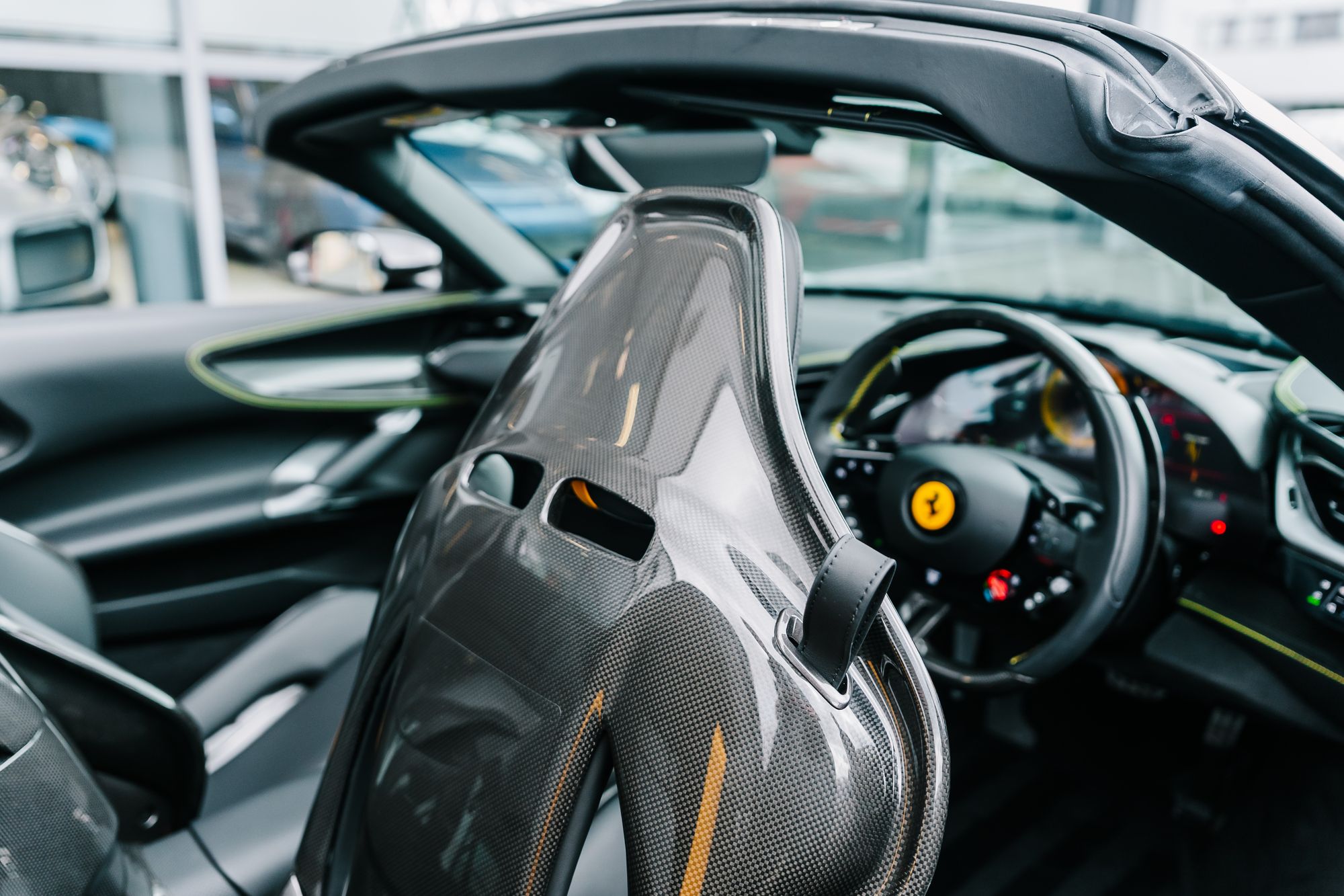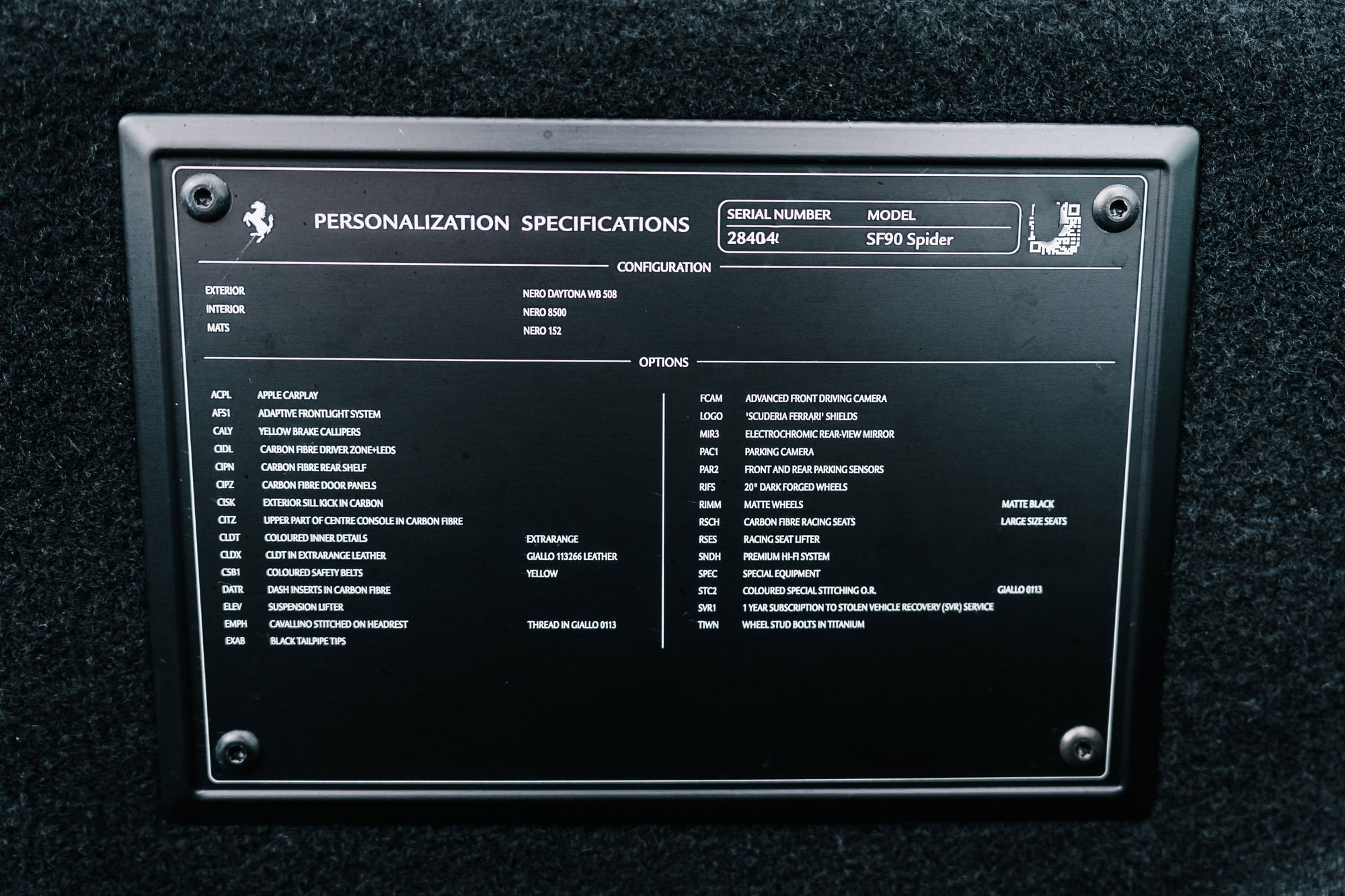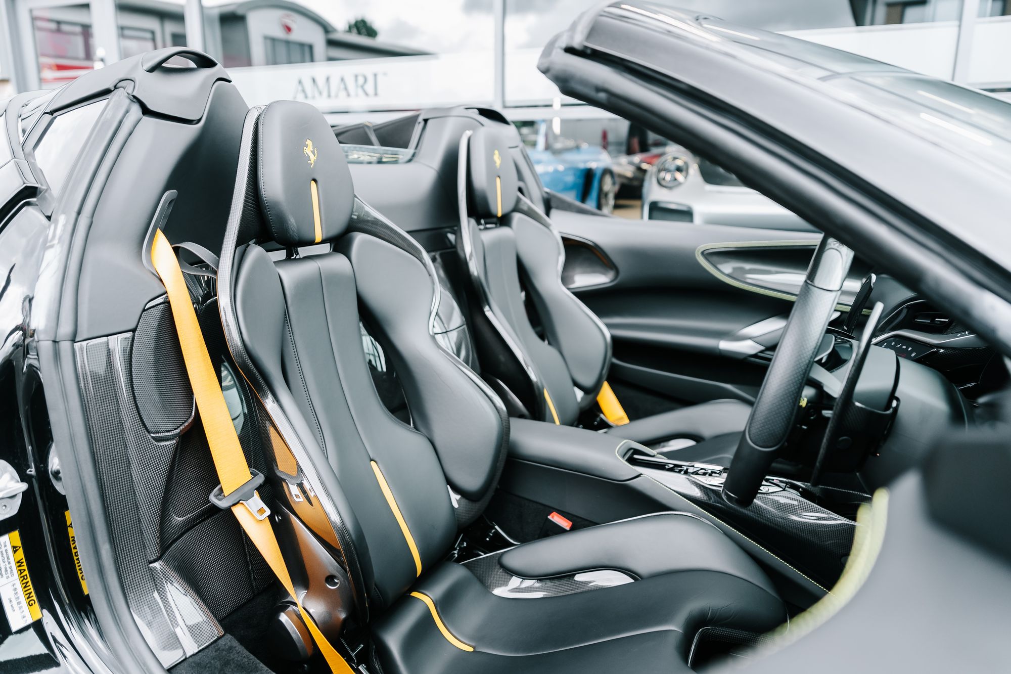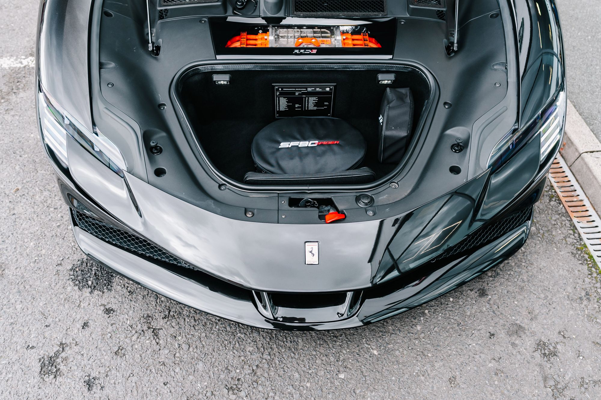 This 2022 Ferrari SF90 Spider in Nero Daytona with a Nero interior is a striking example of Ferrari’s hybrid supercar engineering, combining breathtaking performance with meticulous attention to detail. Registered in October 2022 and covering just over 5,500 miles, this right-hand drive example has been meticulously maintained with full Ferrari main dealer service history, including the most recent service at 5,530 miles in August 2025. Its exterior is protected by full Paint Protection Film and enhanced with carbon fibre details, matte-black 20-inch Dark Forged wheels, black tailpipe tips, Scuderia Ferrari shields, and vibrant yellow brake calipers. Inside, the cabin features carbon fibre racing seats, the Carbon Fibre Driver Zone with LED shift lights, and luxurious Giallo yellow stitching and accents on the seats, belts, and headrests, creating a striking contrast that perfectly balances sportiness and sophistication. Modern conveniences such as Apple CarPlay, a premium hi-fi system, an electrochromic rear-view mirror, parking sensors, a rear camera, an Adaptive Frontlight System, and a suspension lifter ensure that this supercar is as refined and usable as it is exhilarating to drive.
