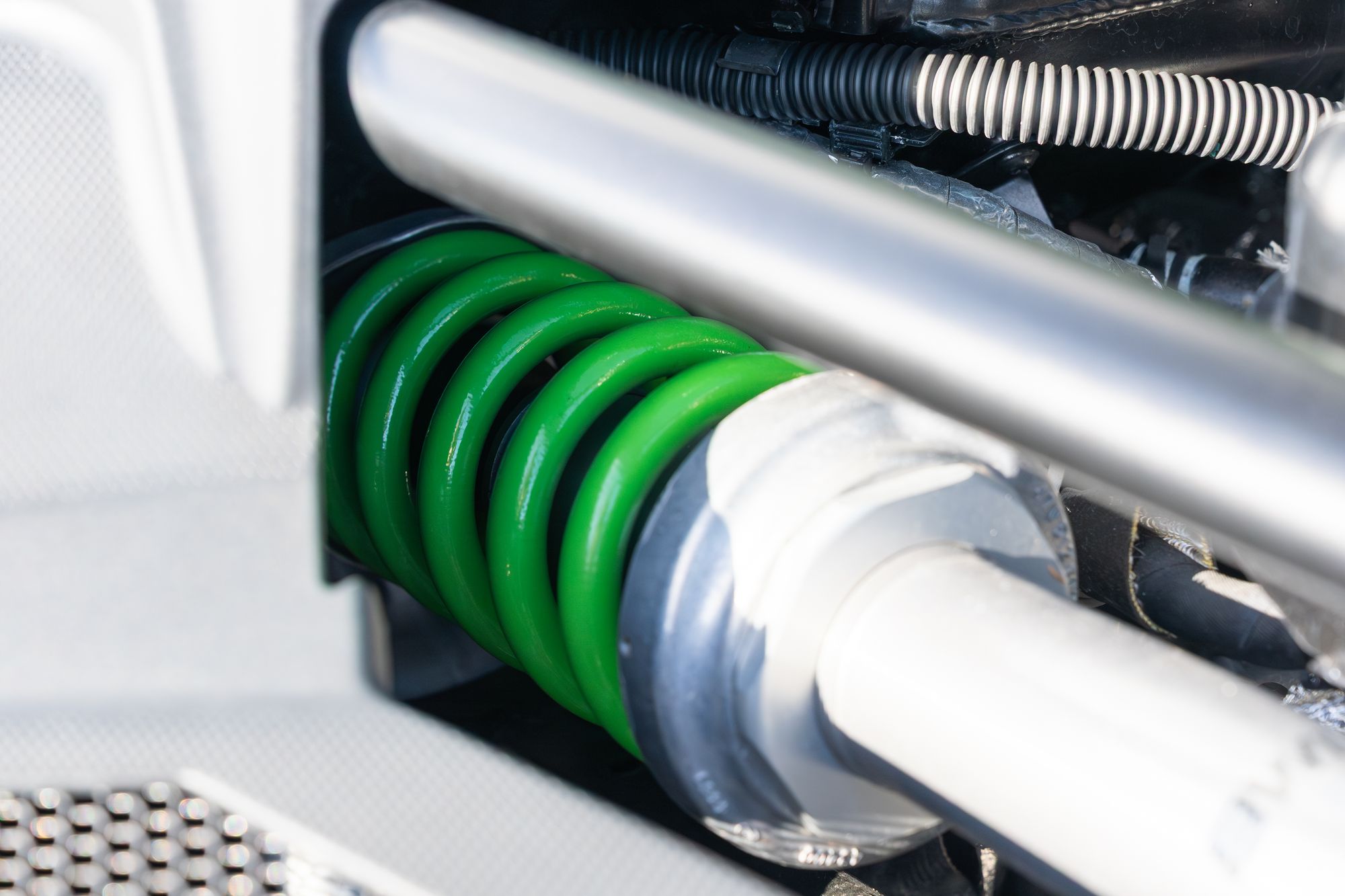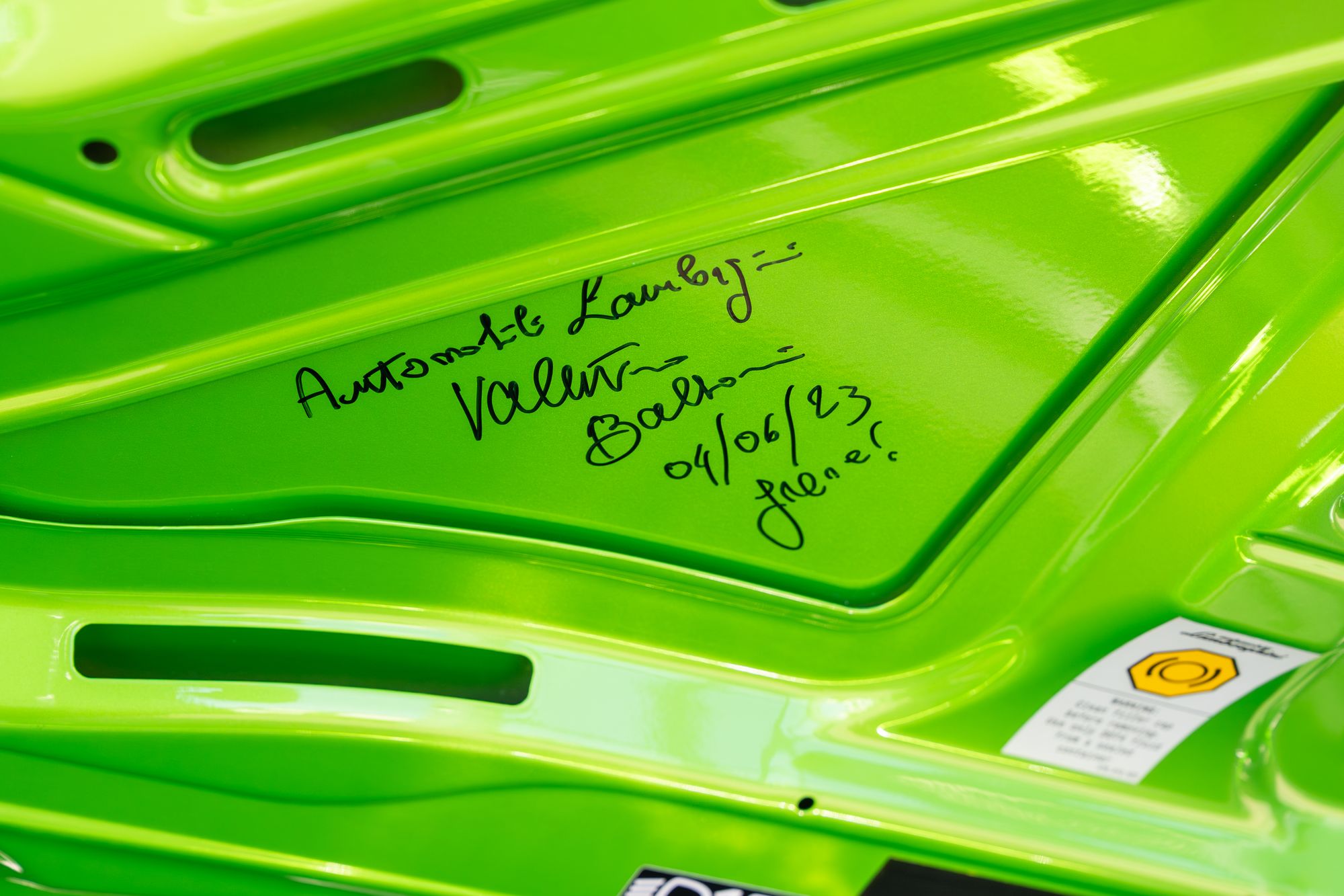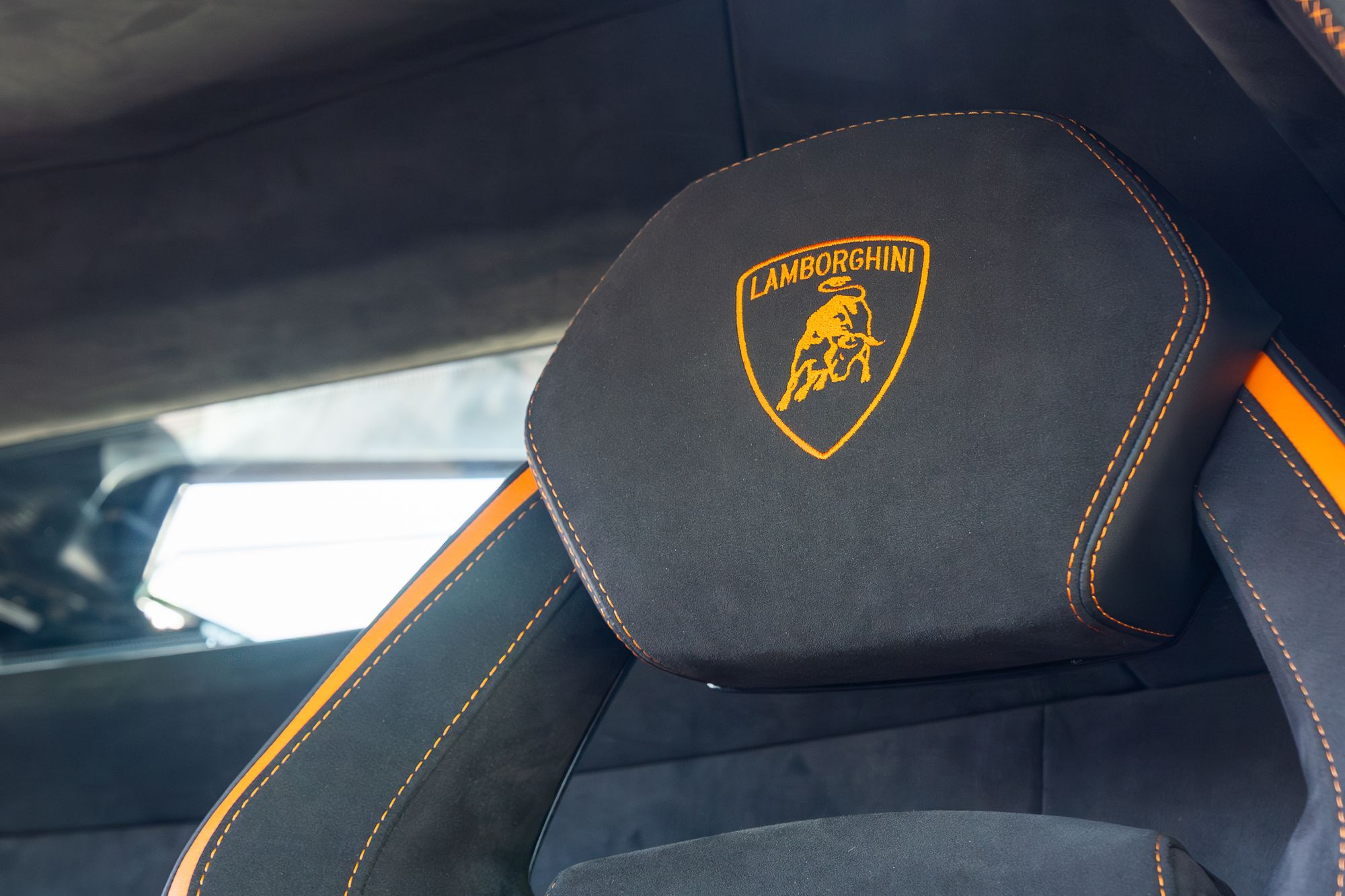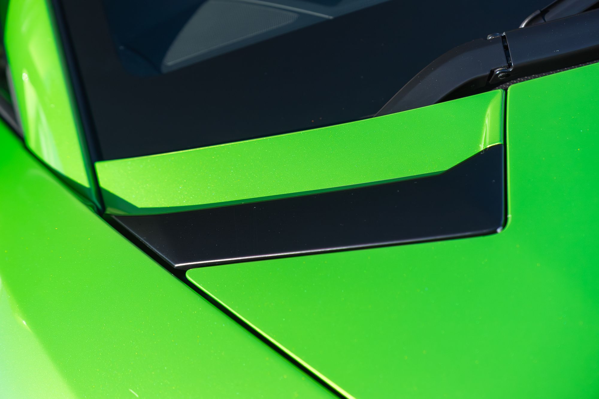 The exterior presents with commanding presence, highlighted by orange brake calipers and the transparent engine bonnet that proudly displays the iconic V12 powerplant. Lamborghini Dynamic Steering and green suspension springs further emphasise the car’s performance-focused engineering.