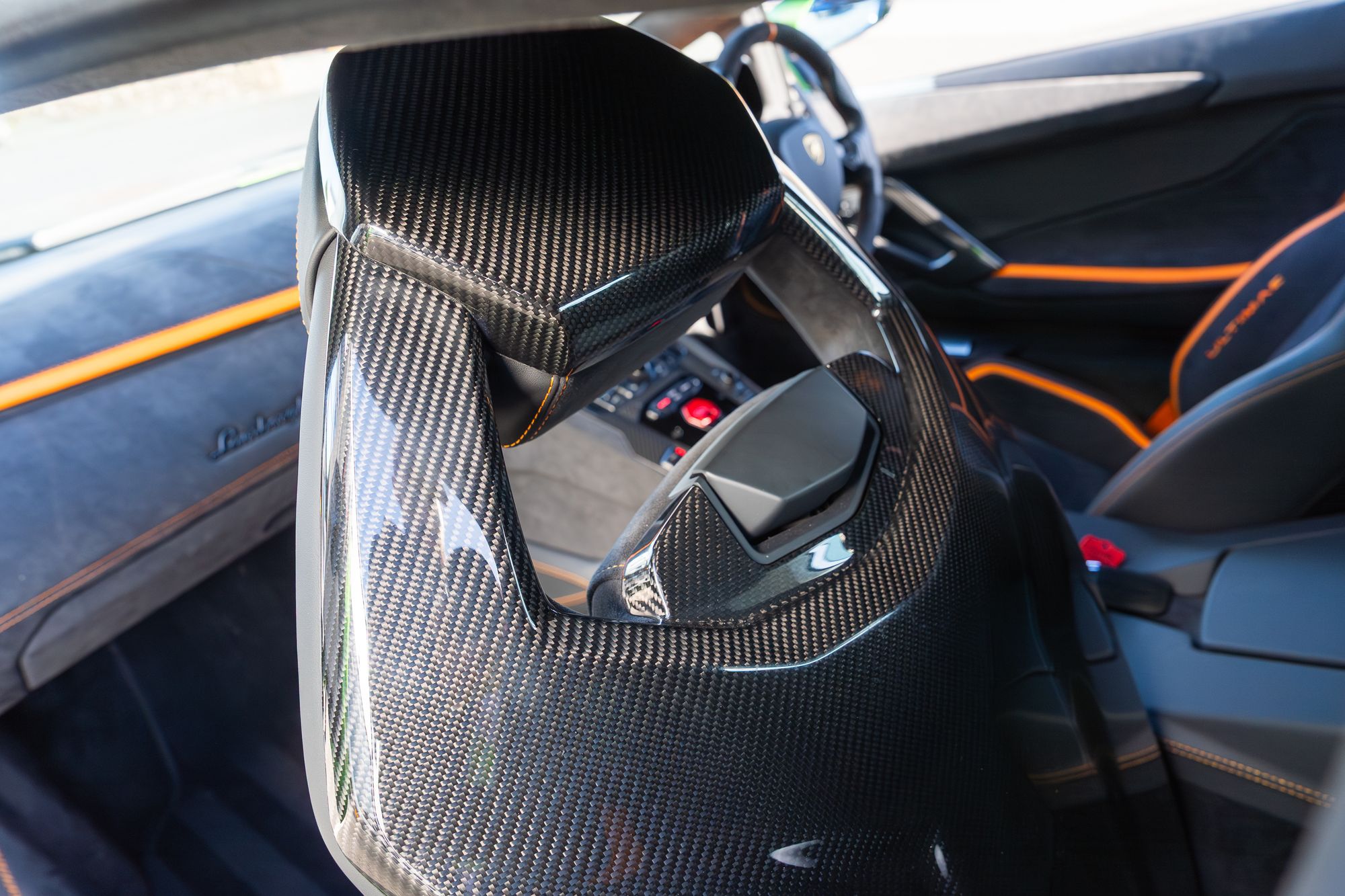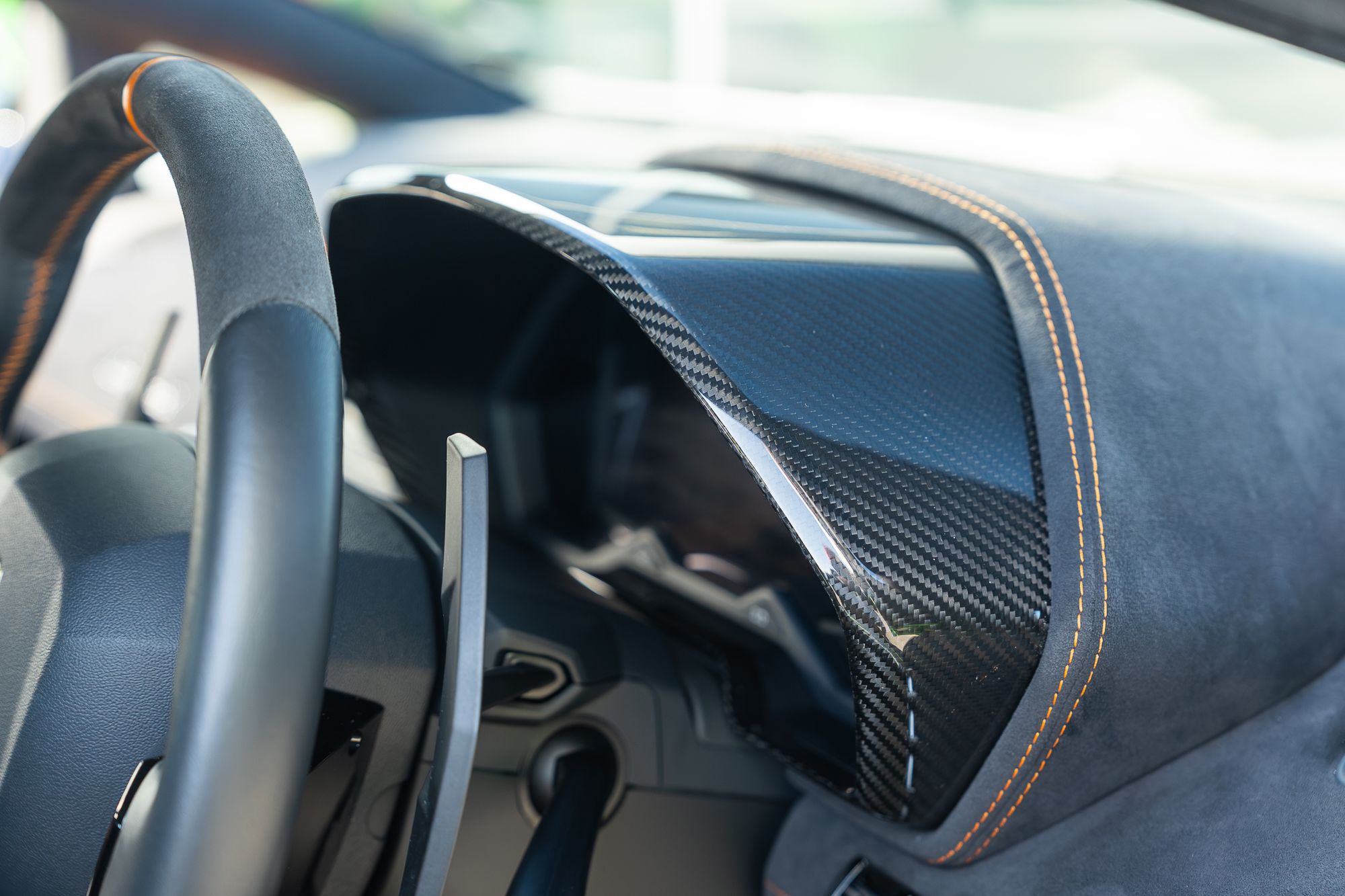 Inside, the cabin features the full interior carbon fibre package, complemented by interior details in shiny black and the Ultimae interior trim. Technology specification includes Lamborghini Telemetry, navigation system, rear view camera and the Visibility and Light Package, ensuring both driver engagement and modern convenience.