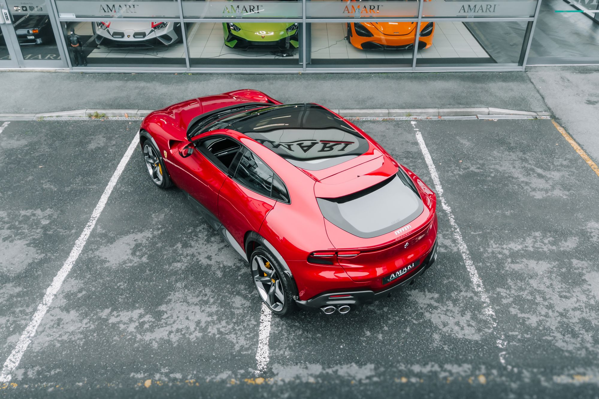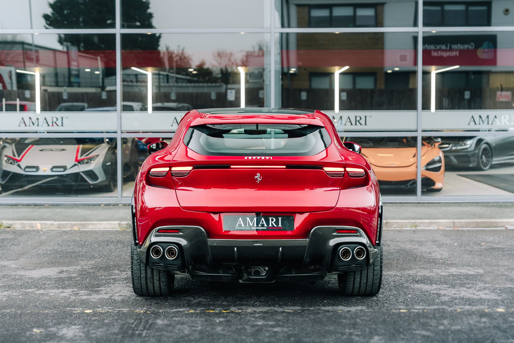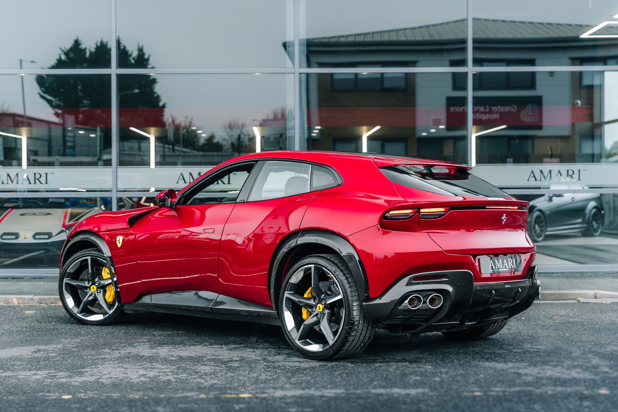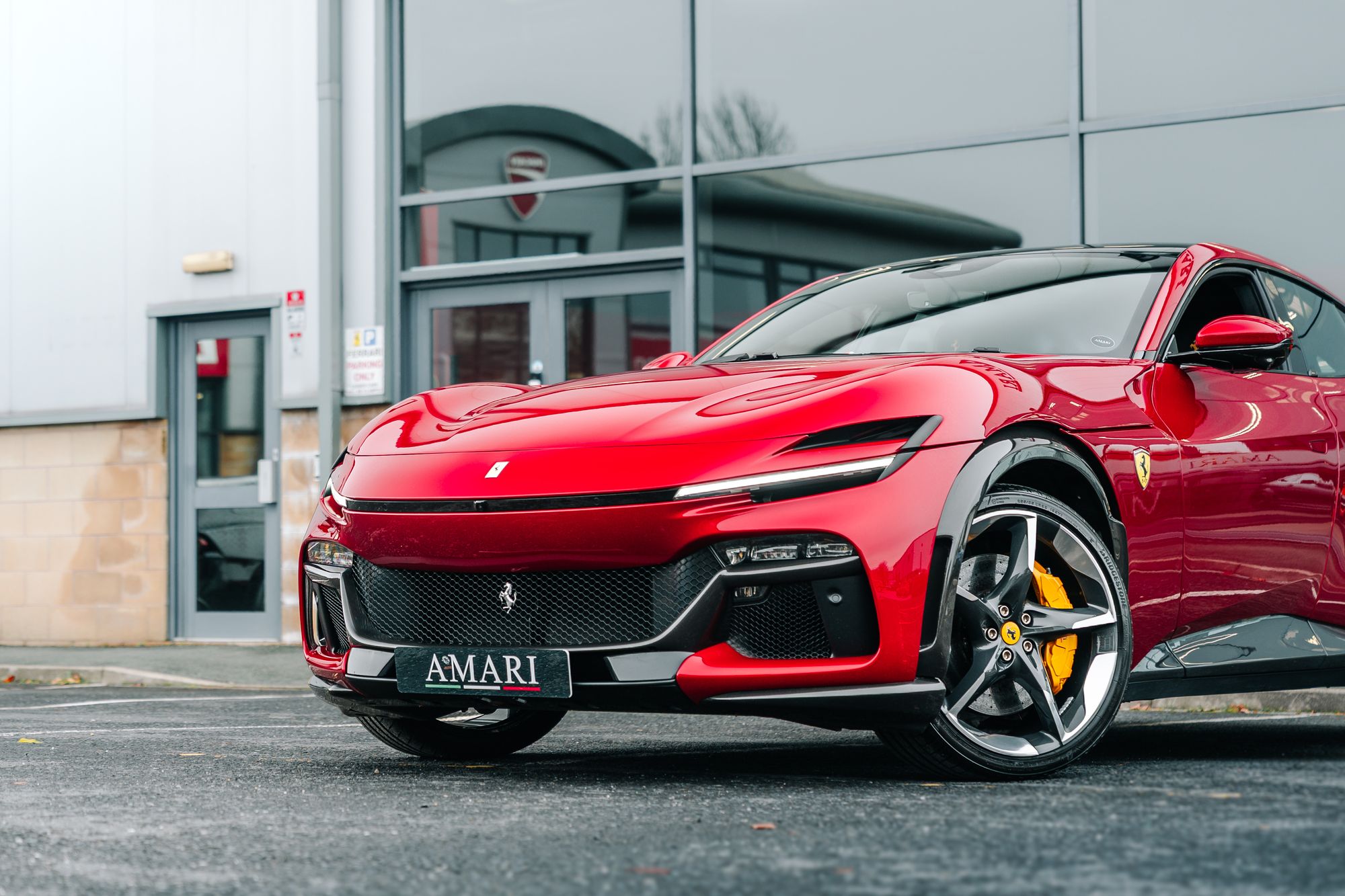 This 2024 Ferrari Purosangue, registered in November 2024 (74 plate) with only 4,074 miles on the clock, showcases an exceptional specification that blends Ferrari performance with SUV practicality. Finished in the stunning Rosso Fuoco special 4-layer exterior colour, the car is complemented by Nero hide and Alcantara interior, adding sophistication and sportiness. The exterior features premium touches such as yellow brake calipers, carbon fibre wheel-arch flares, a carbon fibre rear diffuser, under-door carbon covers, and gloss-forged diamond wheels. Inside, luxury meets function with leather and Alcantara trim, a Carbon Fibre steering wheel with LED shift lights, a yellow rev counter, MyFerrari Connect hardware activated, smartphone interface, wireless charger, panoramic roof, and the full Scuderia Ferrari shields and styling accents. The vehicle comes with two keys, book pack, and the benefit of the remaining balance of Ferrari’s 4-year factory warranty and 7-year Genuine Maintenance Programme.