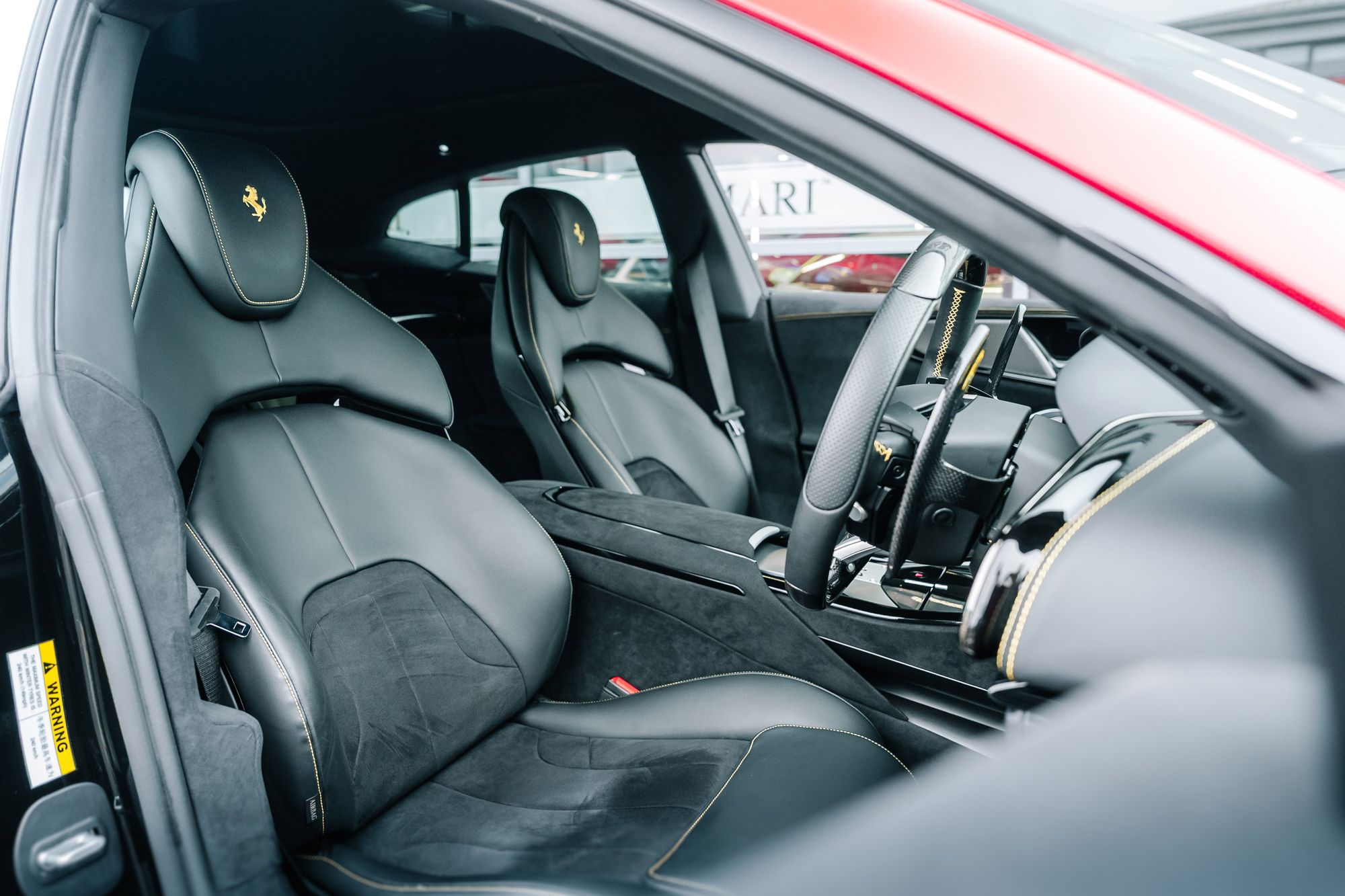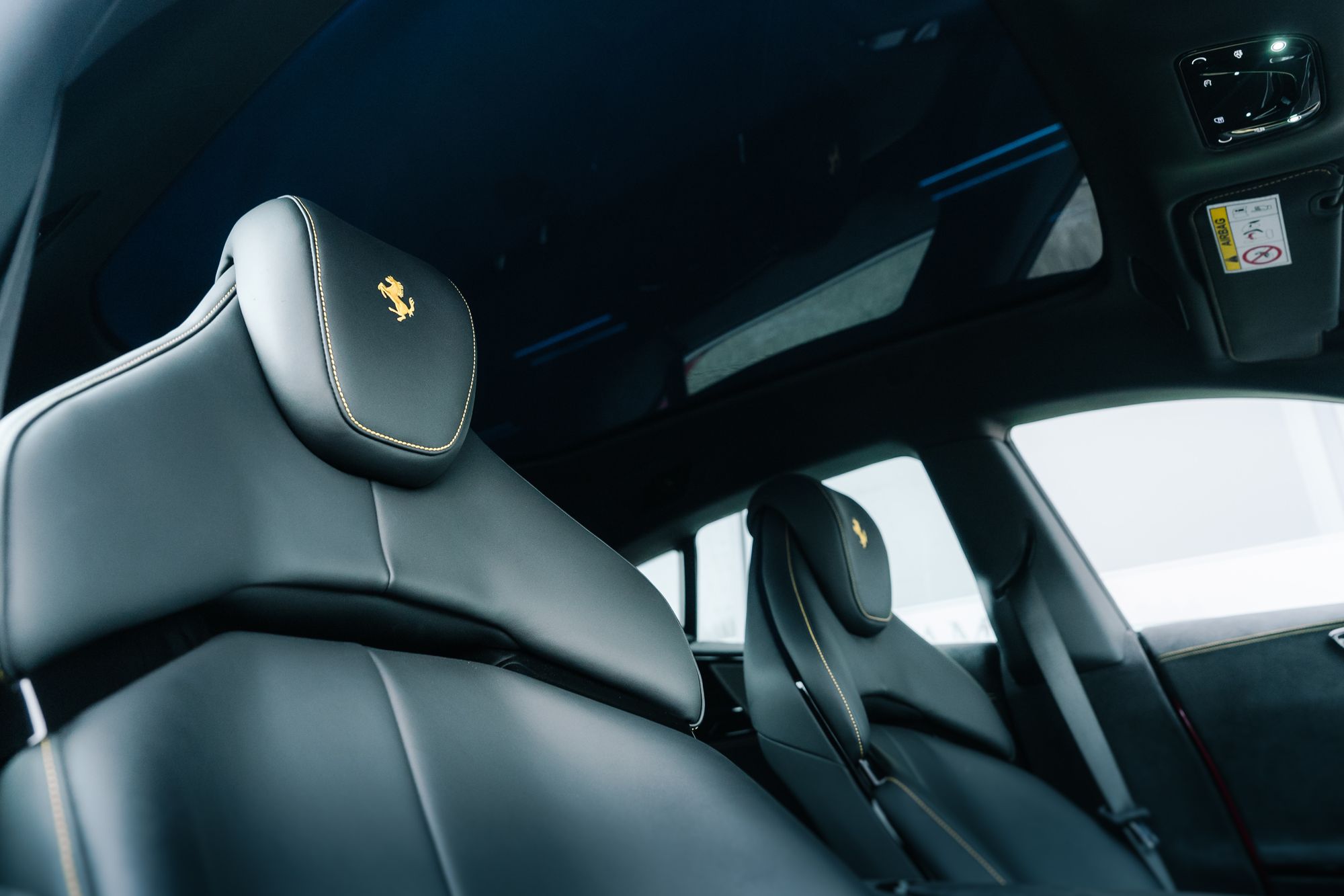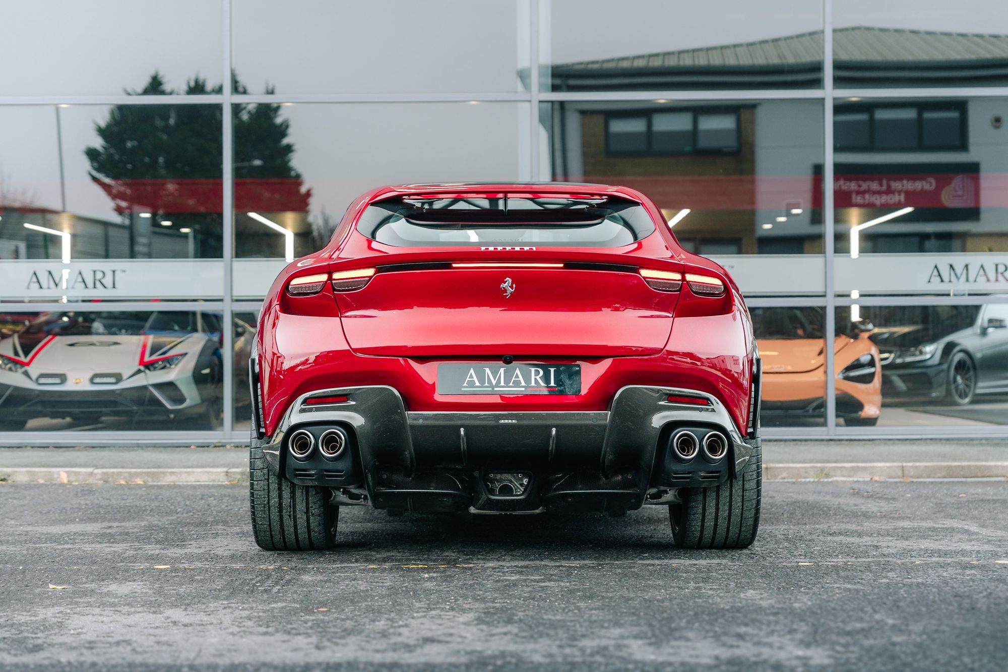 This 2024 Ferrari Purosangue, registered in November 2024 (74 plate) with only 4,074 miles on the clock, showcases an exceptional specification that blends Ferrari performance with SUV practicality. Finished in the stunning Rosso Fuoco special 4-layer exterior colour, the car is complemented by Nero hide and Alcantara interior, adding sophistication and sportiness. The exterior features premium touches such as yellow brake calipers, carbon fibre wheel-arch flares, a carbon fibre rear diffuser, under-door carbon covers, and gloss-forged diamond wheels. Inside, luxury meets function with leather and Alcantara trim, a Carbon Fibre steering wheel with LED shift lights, a yellow rev counter, MyFerrari Connect hardware activated, smartphone interface, wireless charger, panoramic roof, and the full Scuderia Ferrari shields and styling accents. The vehicle comes with two keys, book pack, and the benefit of the remaining balance of Ferrari’s 4-year factory warranty and 7-year Genuine Maintenance Programme.