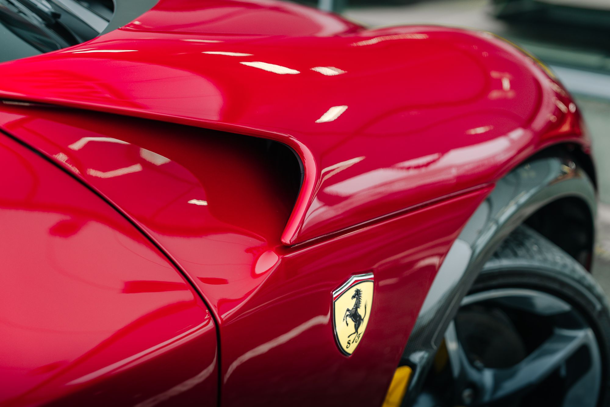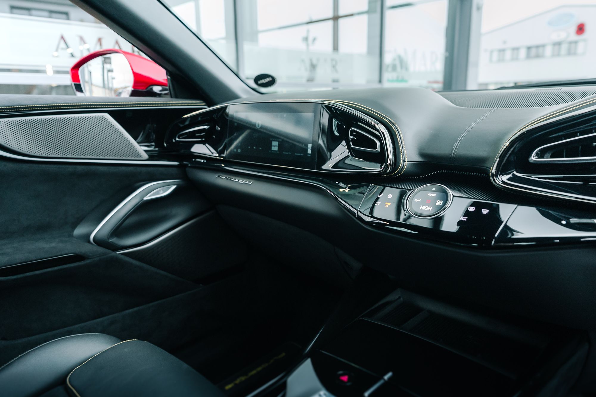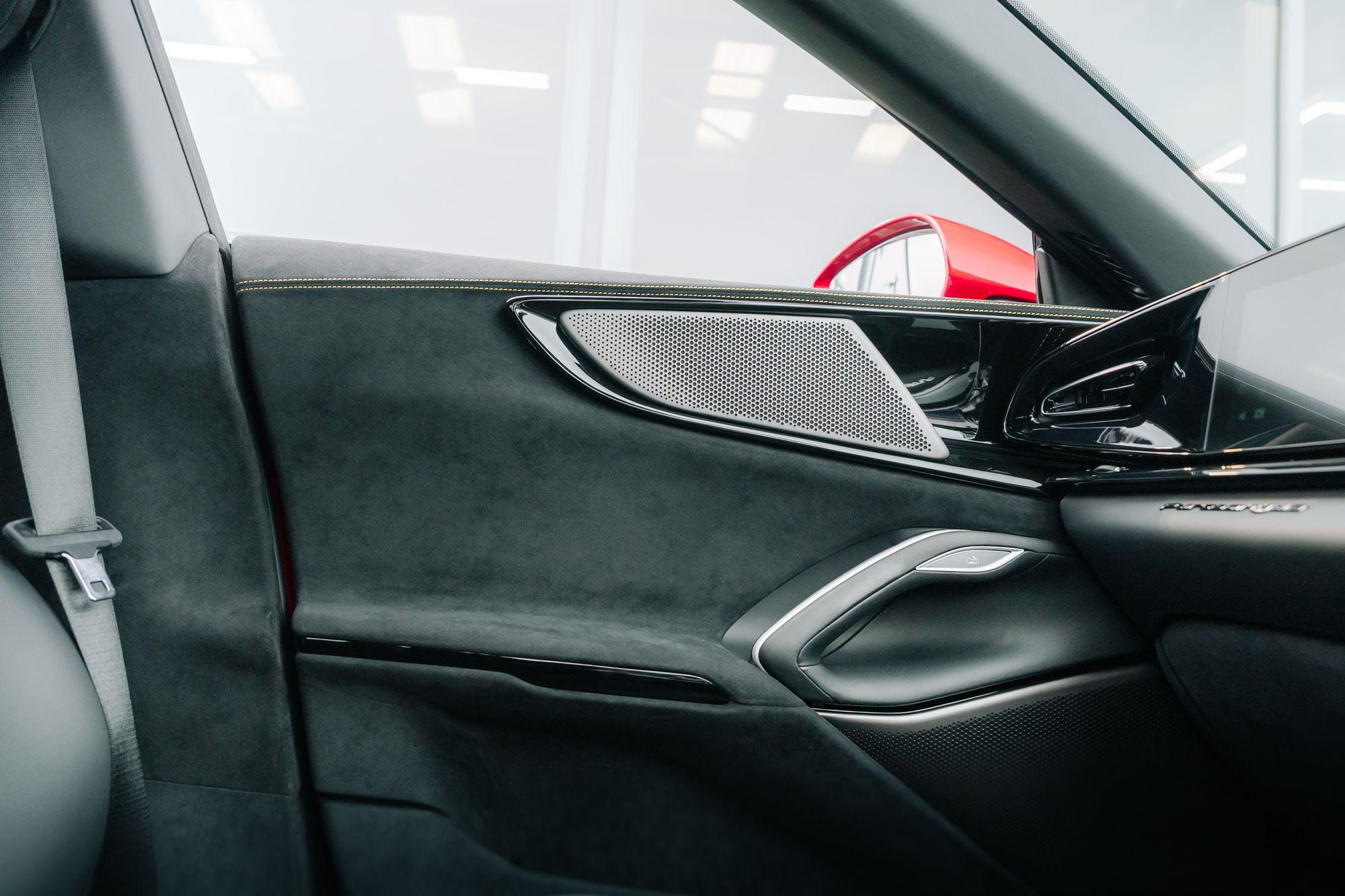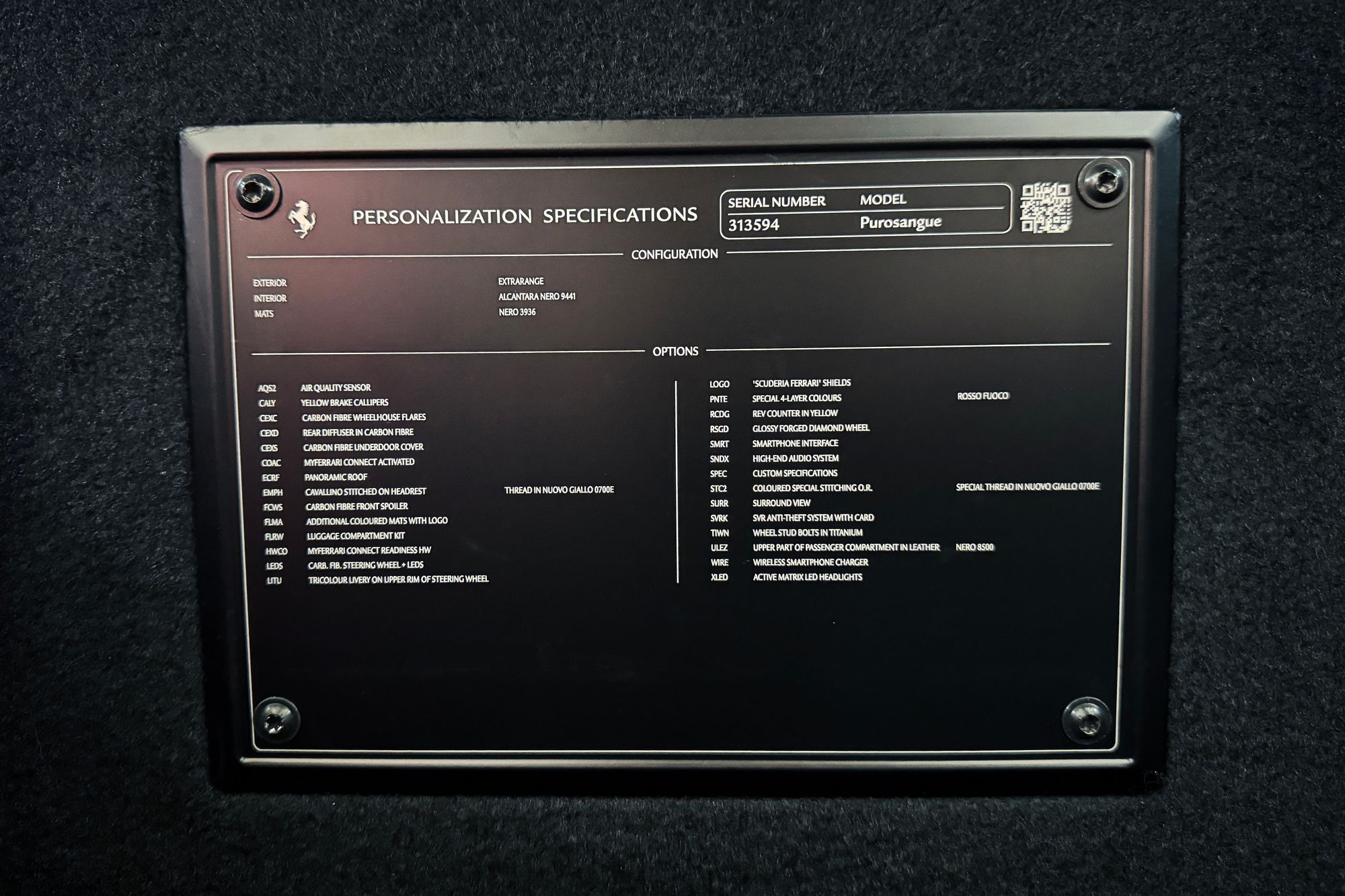 This 2024 Ferrari Purosangue, registered in November 2024 (74 plate) with only 4,074 miles on the clock, showcases an exceptional specification that blends Ferrari performance with SUV practicality. Finished in the stunning Rosso Fuoco special 4-layer exterior colour, the car is complemented by Nero hide and Alcantara interior, adding sophistication and sportiness. The exterior features premium touches such as yellow brake calipers, carbon fibre wheel-arch flares, a carbon fibre rear diffuser, under-door carbon covers, and gloss-forged diamond wheels. Inside, luxury meets function with leather and Alcantara trim, a Carbon Fibre steering wheel with LED shift lights, a yellow rev counter, MyFerrari Connect hardware activated, smartphone interface, wireless charger, panoramic roof, and the full Scuderia Ferrari shields and styling accents. The vehicle comes with two keys, book pack, and the benefit of the remaining balance of Ferrari’s 4-year factory warranty and 7-year Genuine Maintenance Programme.