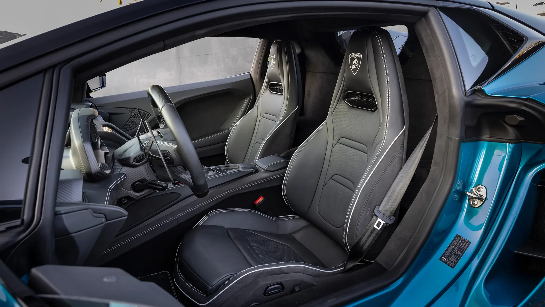 Digital displays, a central touchscreen interface, and a reworked control layout create a cockpit that feels intuitive without losing the theatre Lamborghini is known for. The driving position is low and purposeful, surrounded by high-quality materials and subtle detailing that elevate the overall experience.