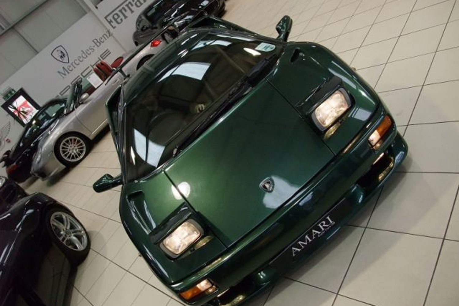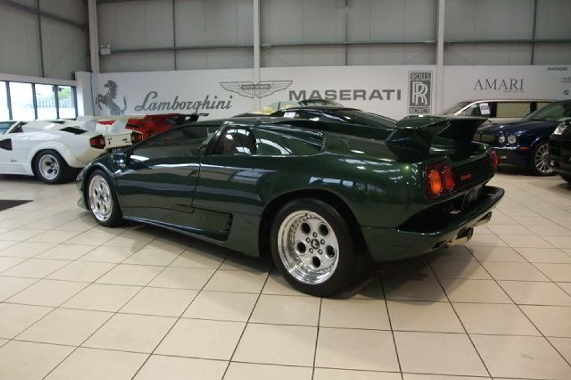 LAMBORGHINI Diablo VT Coupe, 1997 P, Coupe, Petrol. This has to be one of the finest RHD Diablo VT on the market today. With one previous keeper covering a total of 9273klm (5795 miles) and a recent service and new clutch by Lamborghini main dealer costing £8000!! Finish in Verdi Green with Tan hide piped in chocolate and chocolate carpets all round and dash in black with chocolate hide, 17" polished split rims, rear wing, sports exhaust, Alpine upgraded sound system. The 1995 Diablo came with lighter power clutch, power steering, gear change and deeper front air dam, the interior had slight modification such as deep seats and a lower dash binnacle. Less well visible changes included the engine, on the Diablo VT it became surrounded by a carbon fiber case placed in the engine compartment, also the entire appearance of the engine was made neater with a nice cover over the manifolds. The timing system was improved to reduce the noise and the engine was kept cooler by redesigning the air intakes. The brakes on the VT were also upgraded, to four piston Brembo units instead of the earlier two-piston units. The Diablo VT was easier to handle, the �normal� Diablo suffered from oversteer when cornering at its limit, but on the VT the steering became much more neutral, less demanding. This has to be one of the best Diablo�s on the markey today with all books keys, MOT�s and invoices.