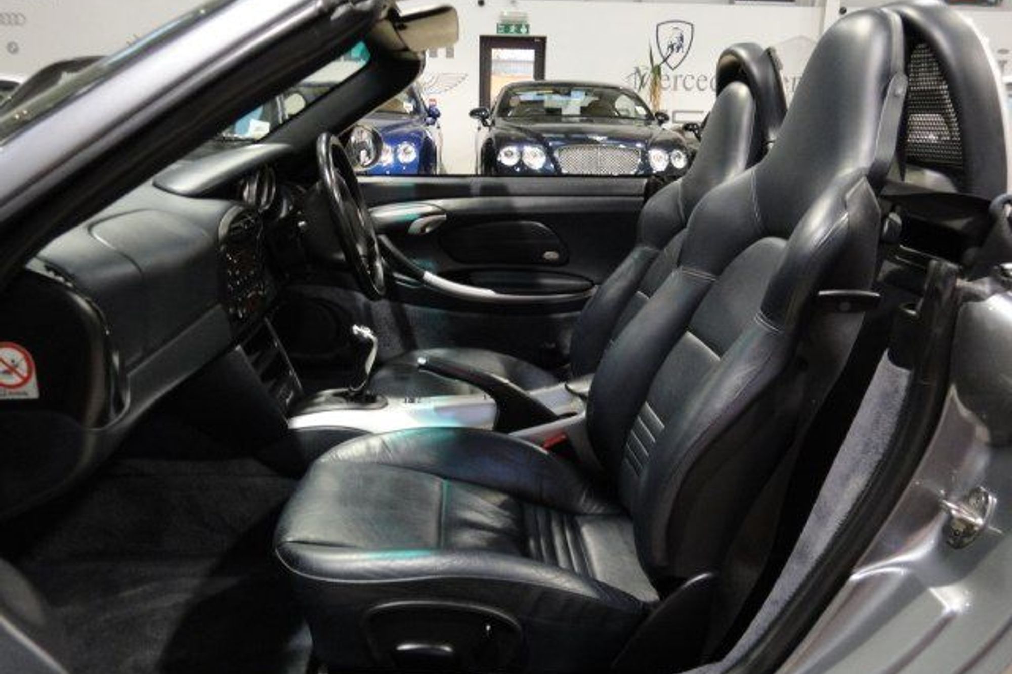 Finished in Seal Grey with Metropole blue hide & dark Navy hood this lovely only 2 previous keepers. Boxster S was ordered with the following spec: Sports seats, Half electric seats, 18" split rims, red calipers, new tyres fitted 1000 miles ago. small ally pack( door handles, dials, gear leaver, air con, ally centre tunnell, xenons lights, electric roof, Hpi Clear, FSH by main dealer and specialist, due a service now which will be done by Service Amari our New Servicing Centre. 3 previous mots with current MOT expireing in August 2011. Tax ending 31 feb 2011