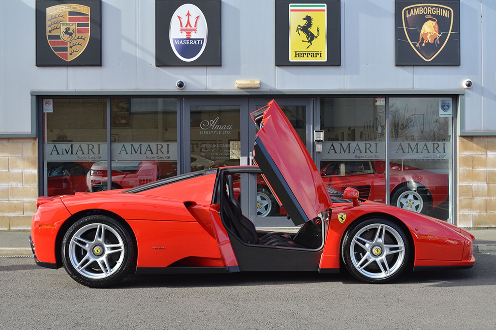 This stunning Ferrari Enzo in Rosso Scuderia, has just has arrived to our showroom with only 1,606 Km on the odometer by only 2 keepers from new.