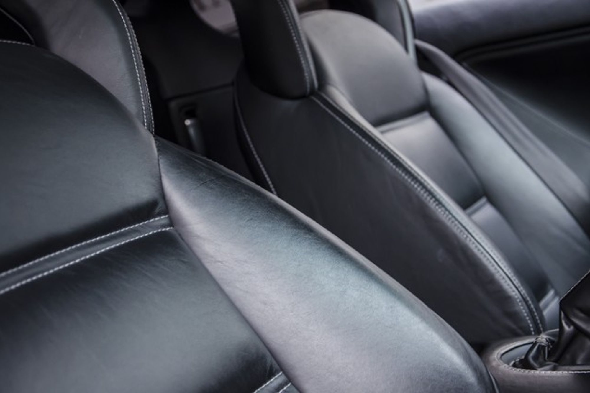 The interior is Nero hide with Bianco stitching and Nero carpets and dash, with rare Alcantara steering wheel and headlining. The seats are full electric and heated.