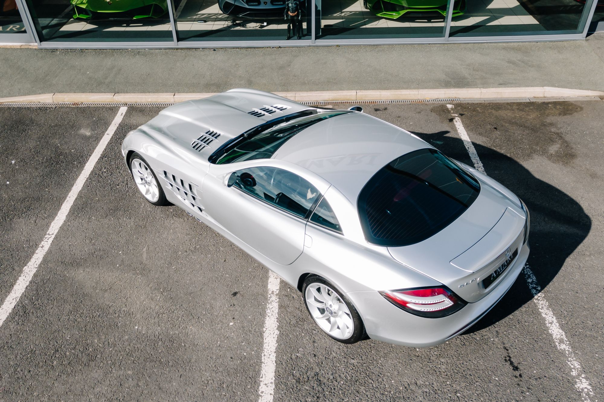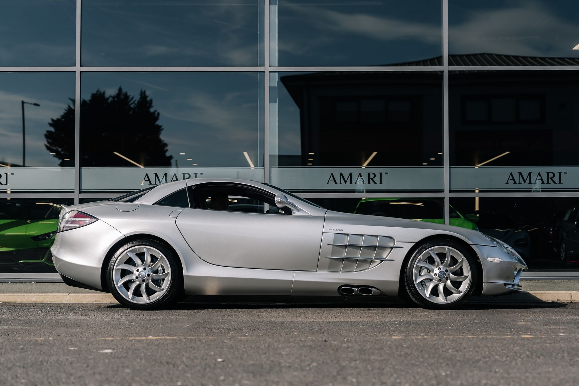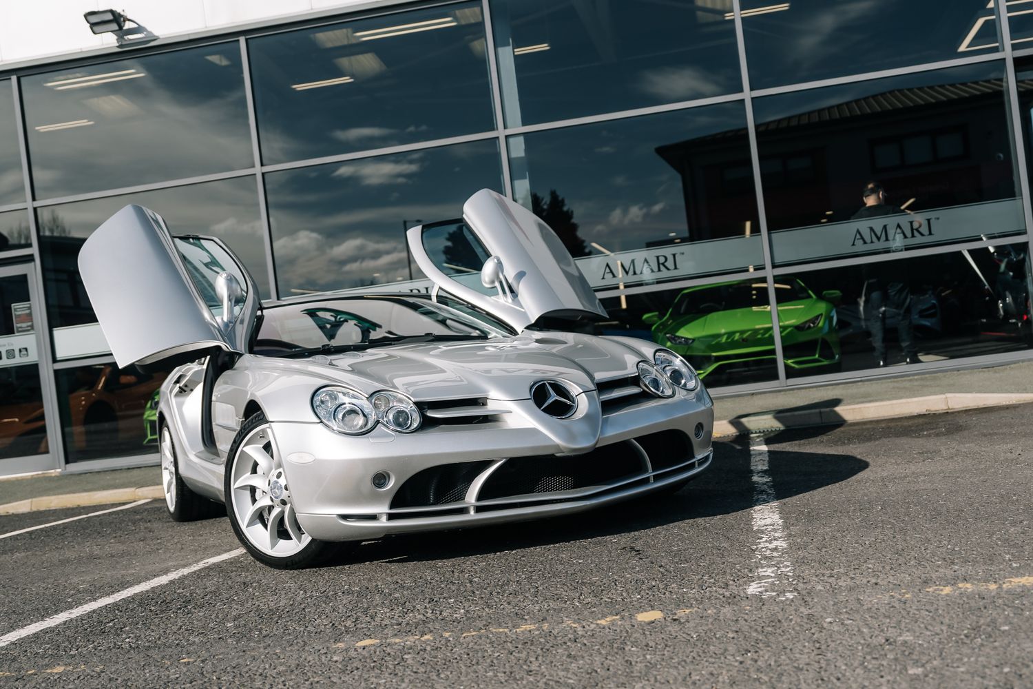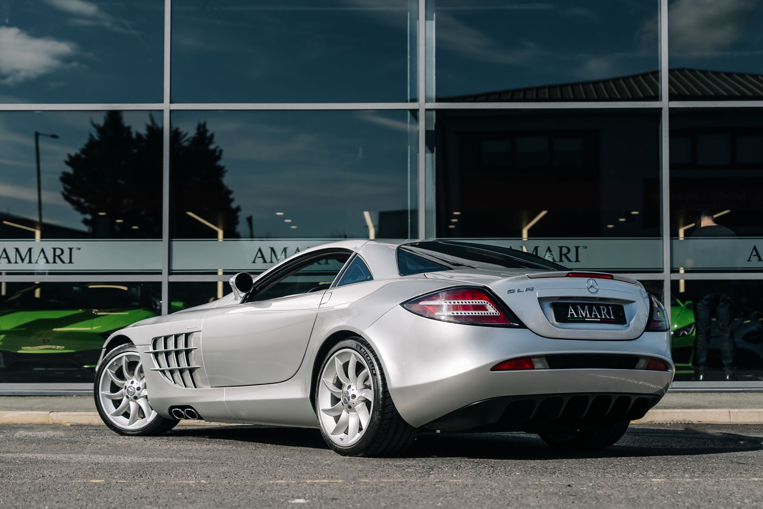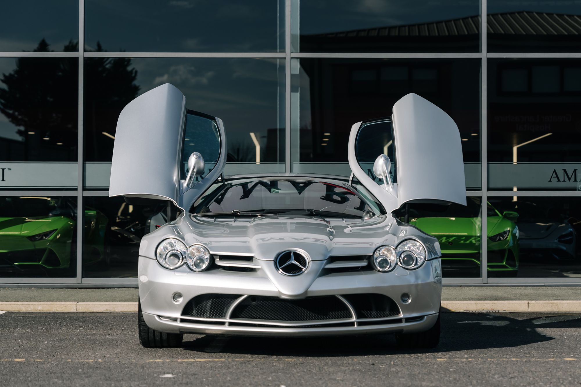 For sale is an exquisite Mercedes-Benz SLR McLaren, a true masterpiece manufactured in December 2004 and registered in the UK in July 2015. Adorning the striking Crystal Laurite Silver exterior, this left-hand drive beauty exudes elegance. The interior boasts Red Premium Leather, providing a luxurious and sporty ambiance. The Turbine Sportwheels complement the sleek design, while the distinctive Gullwing Doors add a touch of automotive sophistication.