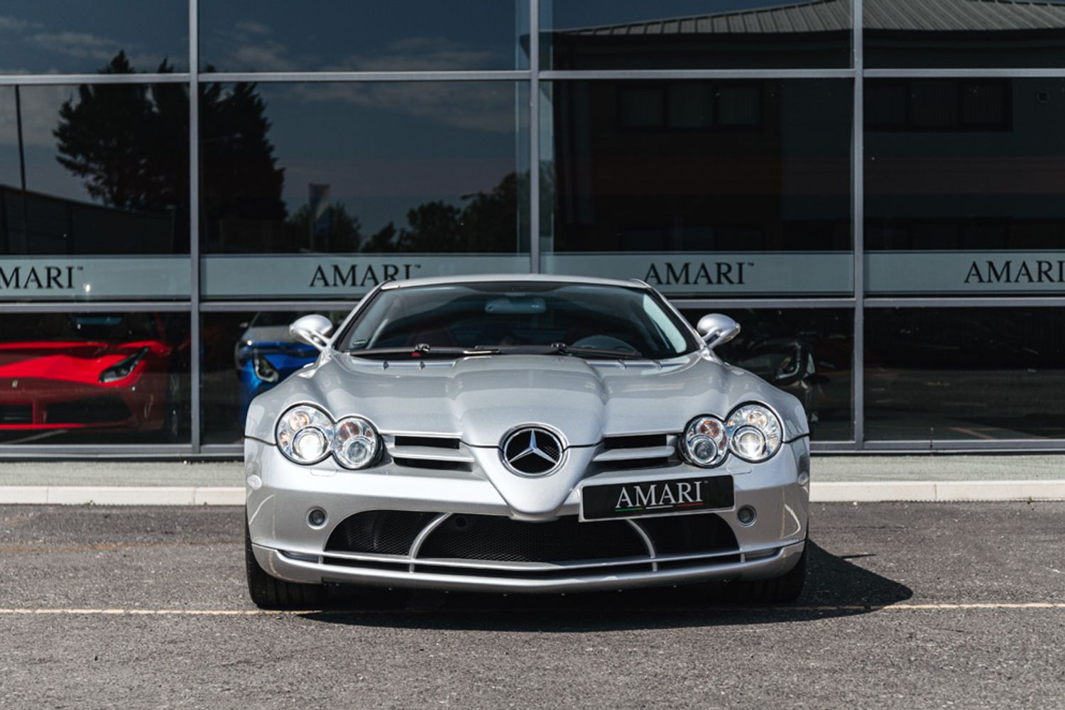 This particular example presented to you in Crystal Laurit Silver. The interior is upholstered in Red hides, which like the exterior is unmarked. The specification of the car is extensive making it one of the finest examples ever delivered. This example unlike most has a documented and comprehensive service history. The last service in February this year was carried out by Mercedes Benz Brooklands, the history is outlined below,