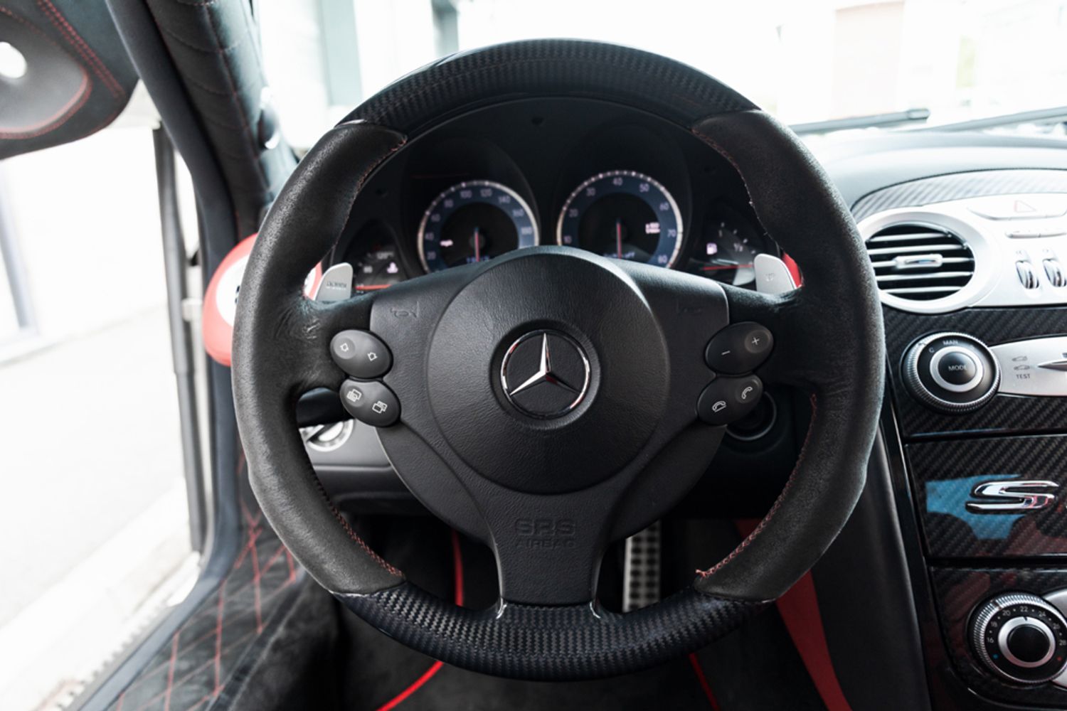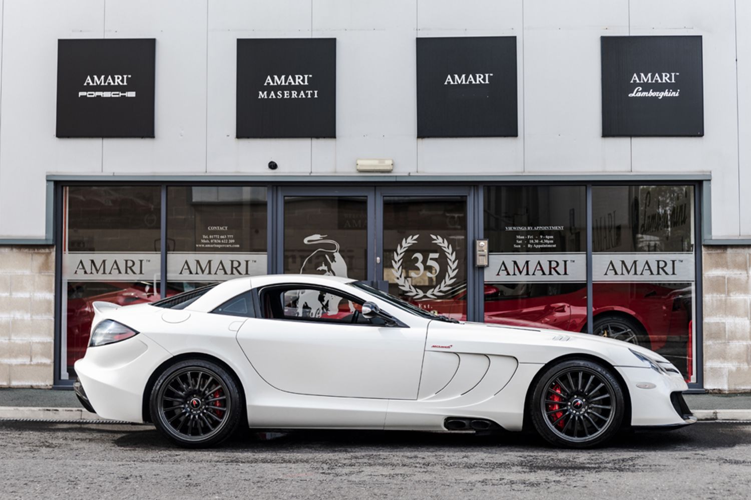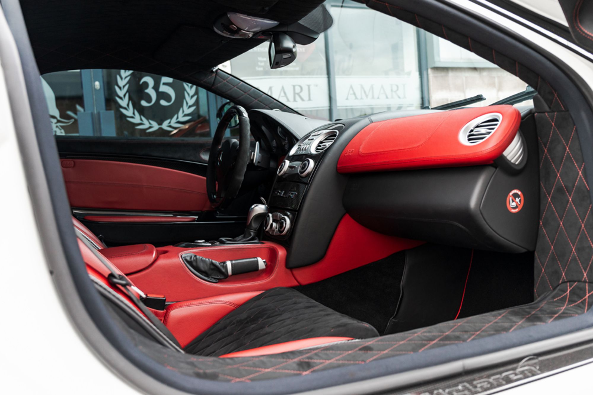 This particular car was supplied new in January 2006 before being imported back into the U.K in January 2007. Originally finished in Mercedes Silver with Red Leather like so many other SLR. In 2011 the decision was taken by the then owner to Commission McLaren Special Operations to carry out the conversion to the McLaren Edition, this car was the third of the 25 cars to be connected by MSO and features a number of options on top of the standard McLaren Edition these included an interior retrim with diamond quilting, Carbon Fibre interior upgrade, Entertainment System upgrade and the addition of a reversing camera.
