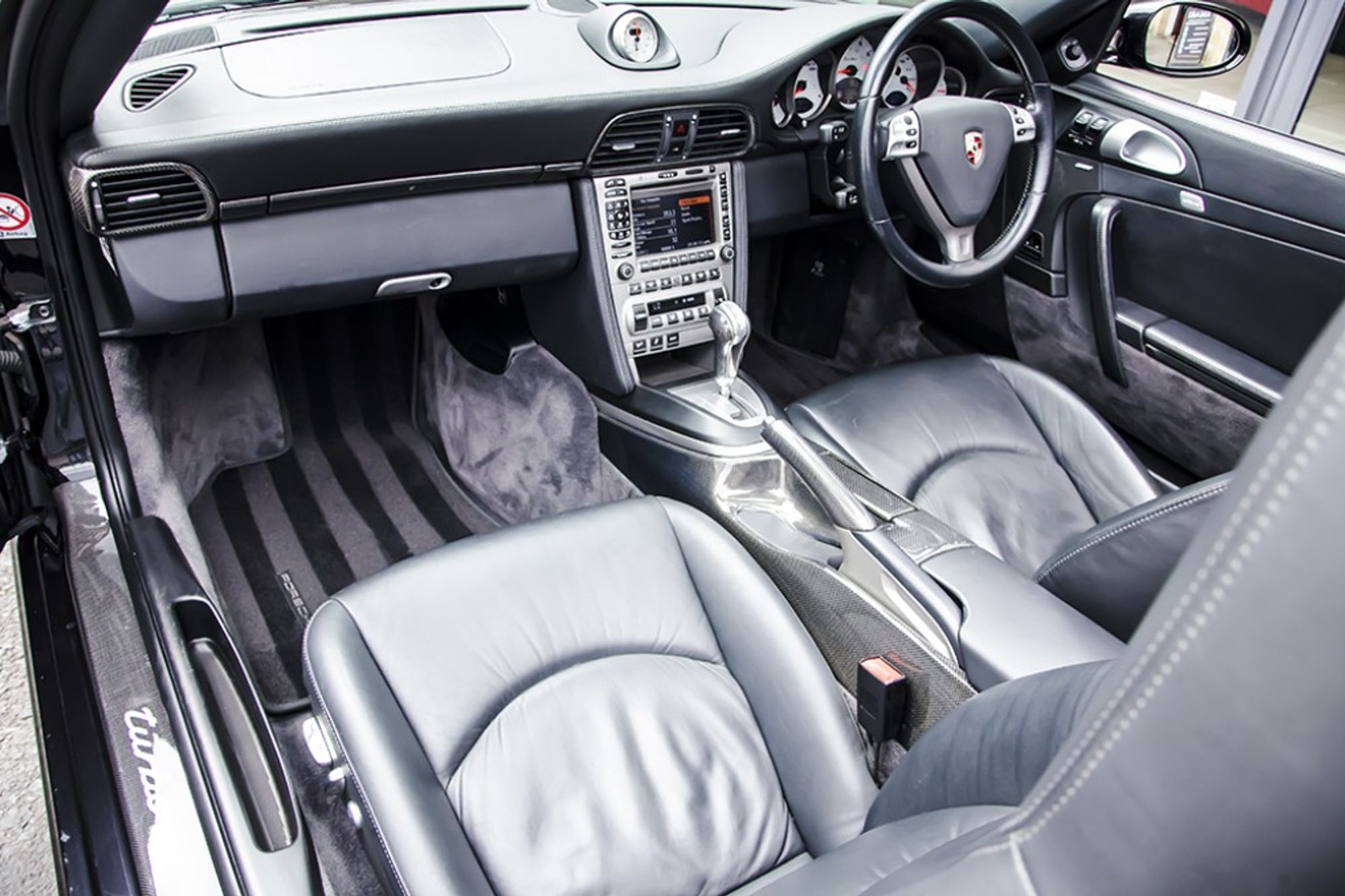 It is a fantastic looking car finished in Black with a black leather interior with grey stitching. The wheels are 19" Turbo wheels, polished faces with gunmetal grey inserts.
