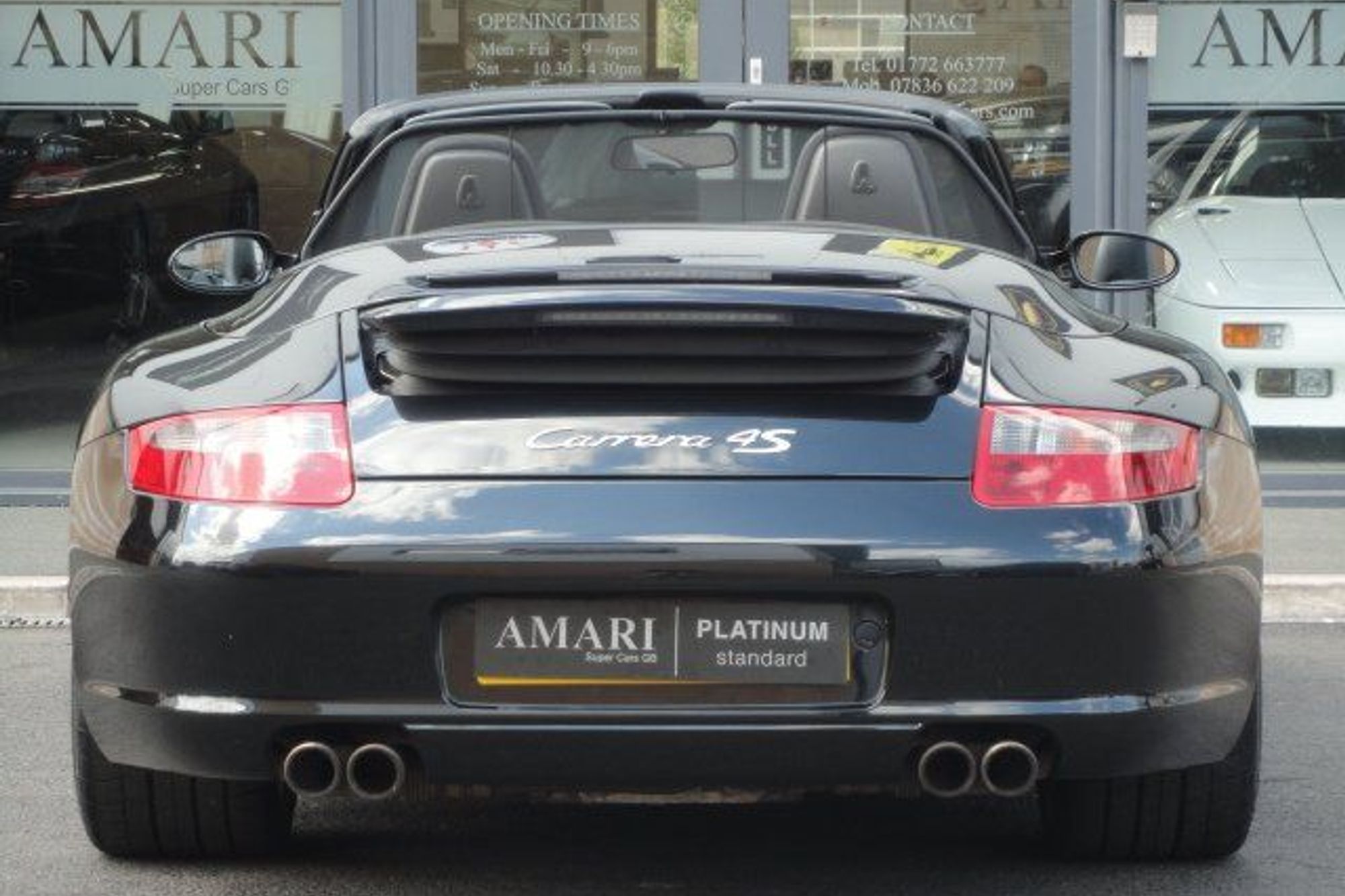The spec on this car is as follows Adjustable steering column/wheel, Air conditioning,19" Turbo Alloy wheels, Red Porsche claipers,Computer, Driver airbag, Electric mirrors, Electric windows, Electric Roof, Foglights, adjustable seats, Leather Sports seats, Lumbar support, Immobiliser, Navigation system, Bluetooth,Passenger airbag, Power assisted steering, Remote locking, Side airbags, Radio/CD,PSM,Wind Deflector,2 Keys,FPSH.