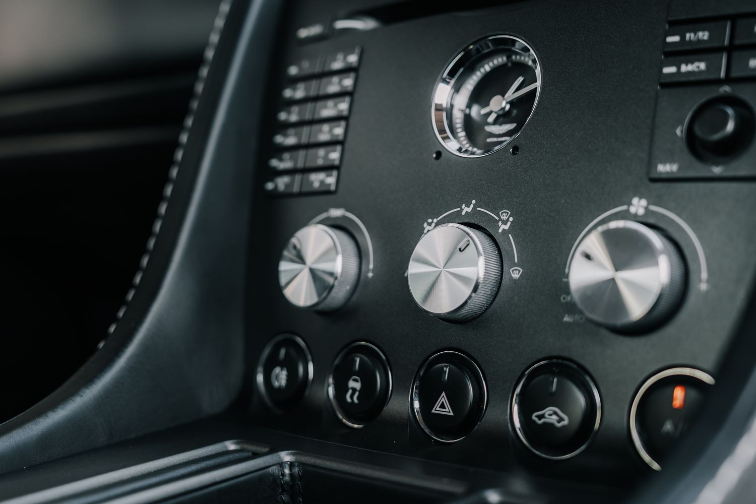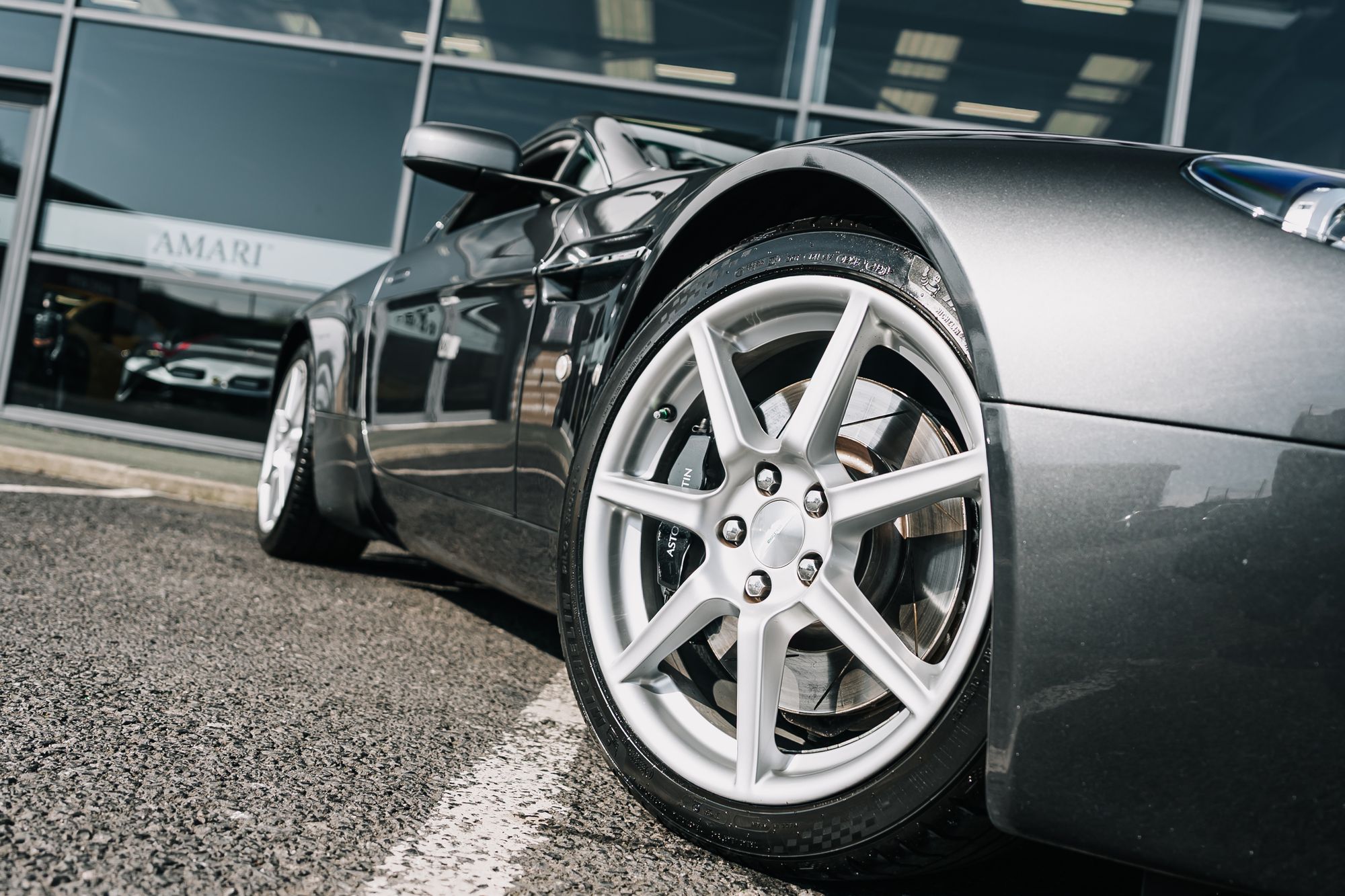 This 2008 Aston Martin V8 Vantage, finished in Meteorite Silver, is a timeless British sports car, blending elegant design with thrilling performance. The interior is upholstered in Obsidian Black leather, complemented by Silver stitching and a Phantom Grey seat inner colour. It sits on 19-inch 7-spoke wheels and features black brake calipers, a Gun Metal fascia, Aston Martin Premium Audio, satellite navigation, and heated seats.