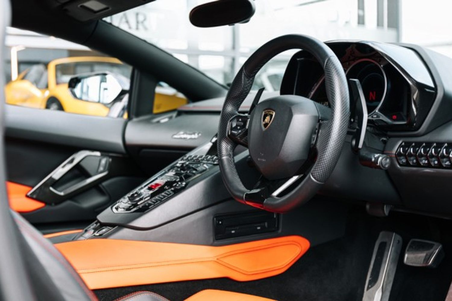 Our car is a 2013 / 62 Registered Example of the Lamborghini Aventador in the sought after colour combination Nero Pegaso with Nero Ade and Arancio interior. Having covered only 22,130 Miles by 9 Owners from New.