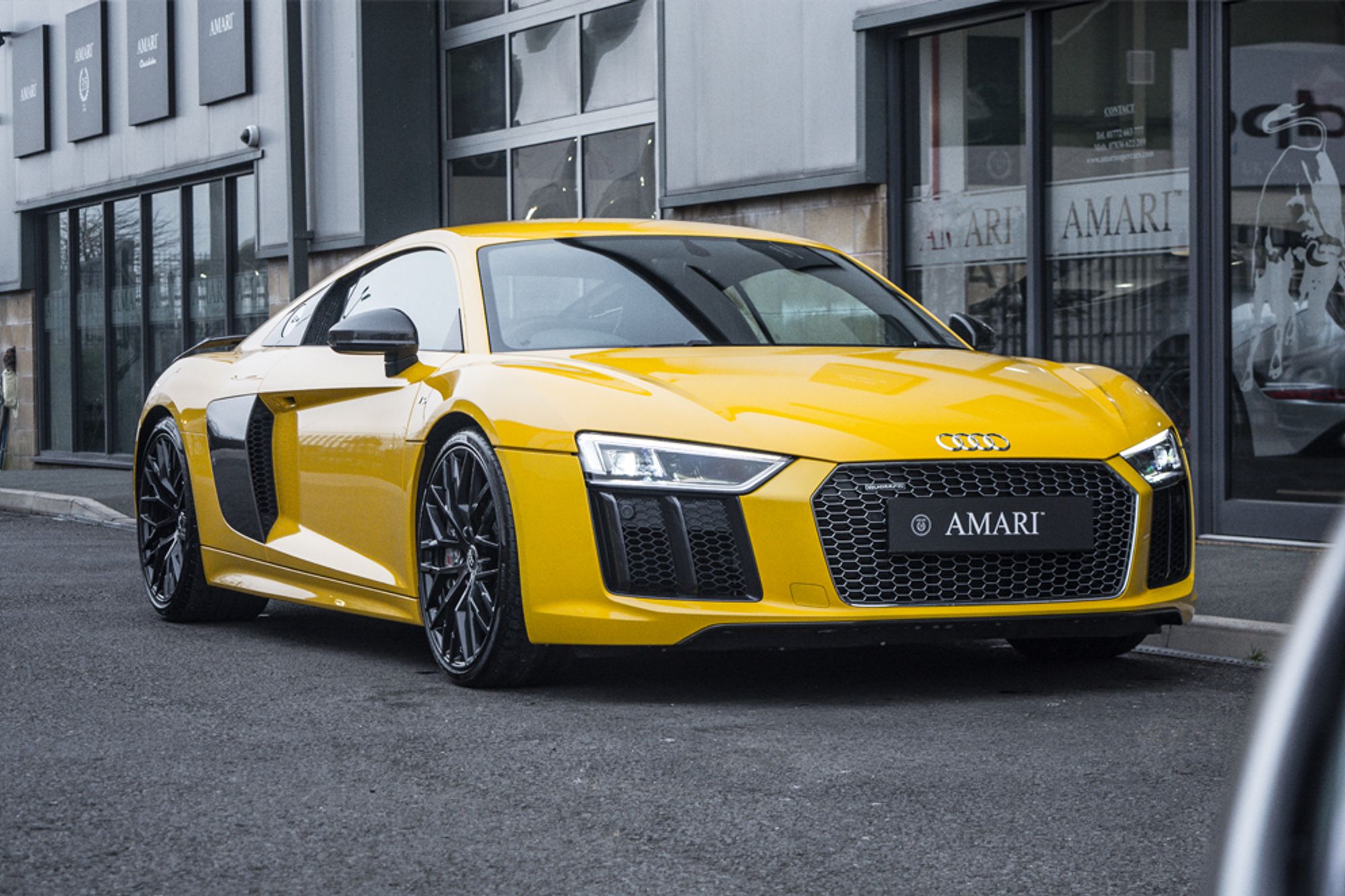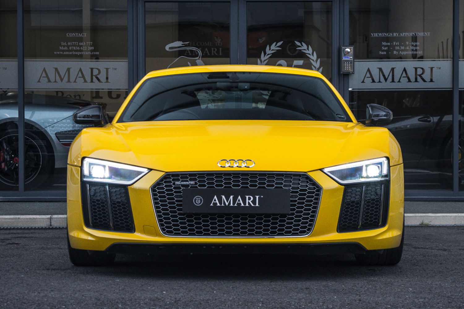 The exterior is presented to you in the gleaming Vegas Yellow, which truly suits the Audi R8 V10, featuring contrasting Alloy Wheels in Black. In an immaculate and umbleamished condition all around.
