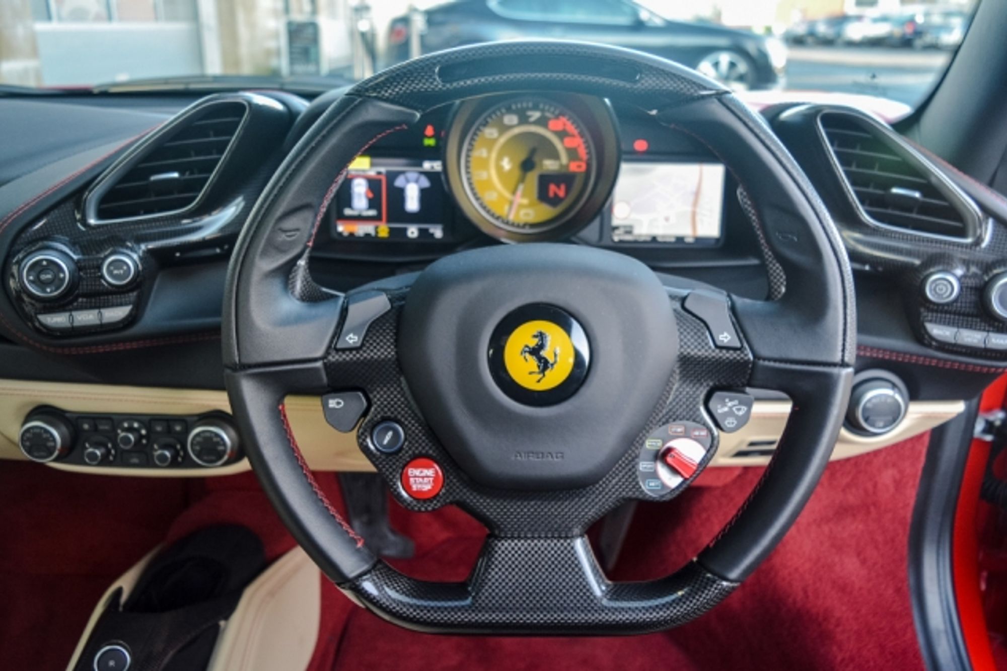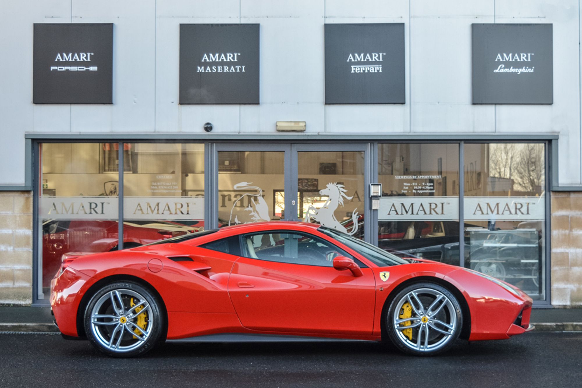 Ours is a 2016 / 16 Ferrari 488 GTB, in Rosso Corsa with Crema Leather Interior and has covered only 5,933 Miles by 2 Owners.