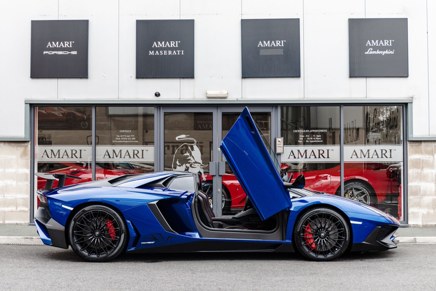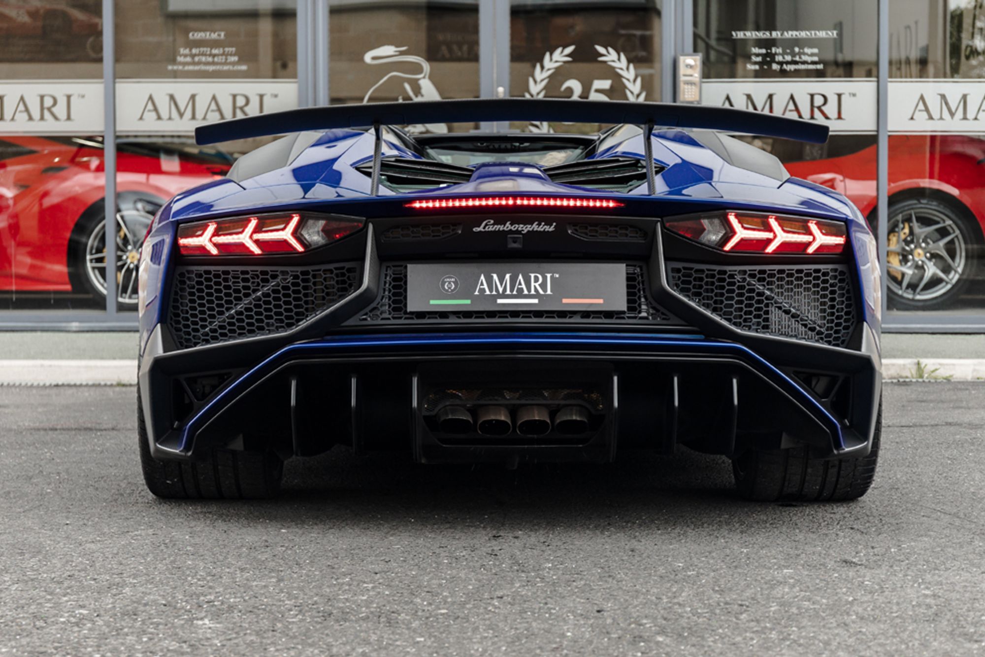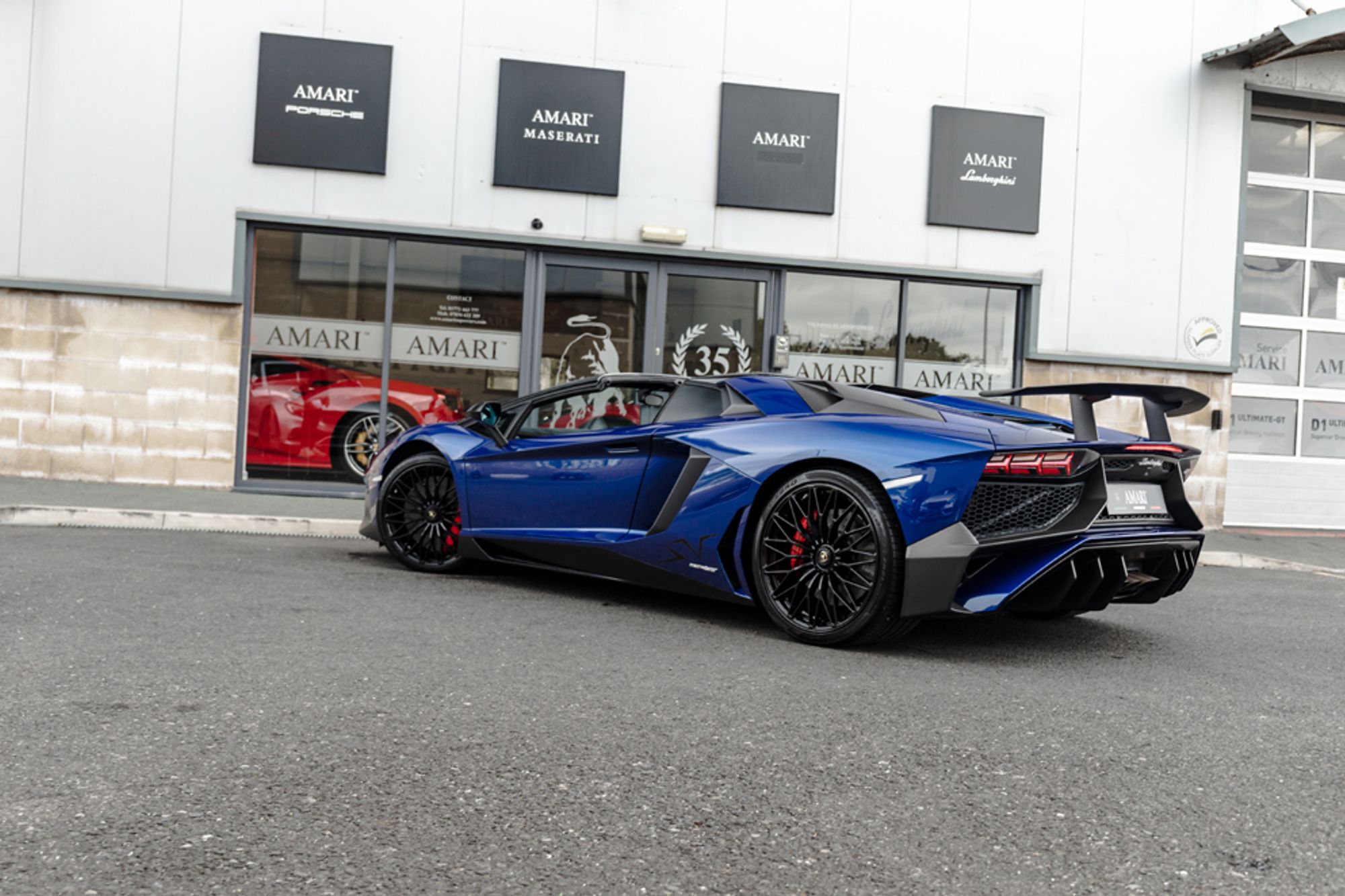This particular Lamborghini SV was supplied new to the UK in April 2016 (16 Registered). Finished in the stunning Blu Sideris (Special Metallic), featuring Paint Protection Film. To the rear the 6.5 litre beating heart of this fantastic machine is clear for all to see thanks to the addition of a transparent engine bay under which sits carbon fibre T-Shape and X-Frame. Finishing off the exterior also boasts Carbon Fibre Fixed Rear Air Intakes and a Carbon Fibre Removable Hard Top. The SV interior is upholstered in Black Alcantara, also features SV Interior Stitching in Rosso, an Ad Personam Colour, which also rivals the Rosso Brake Callipers. This vehicle has covered a Mere 8,575 Miles by 3 Owners from New. The extensive specification is outlined below: