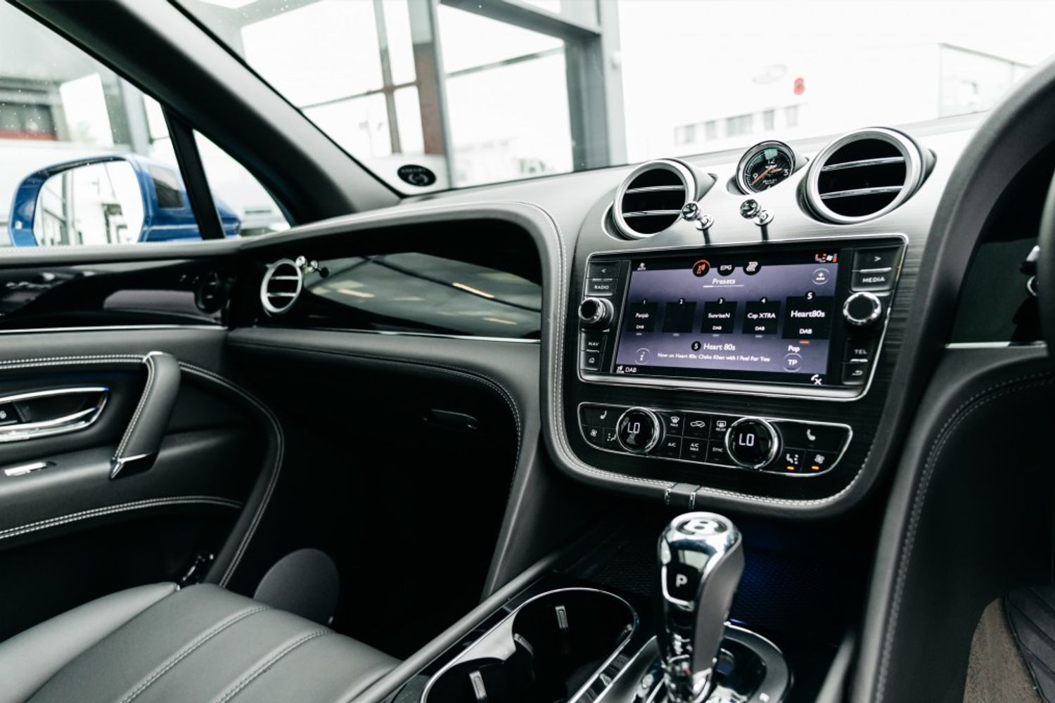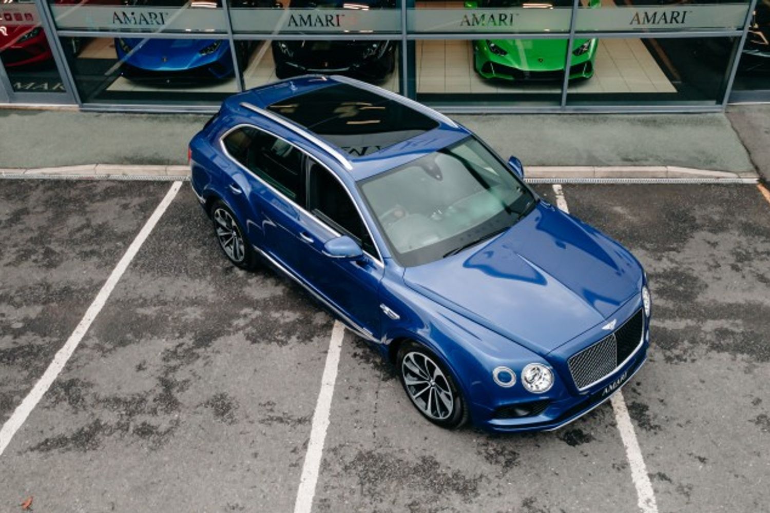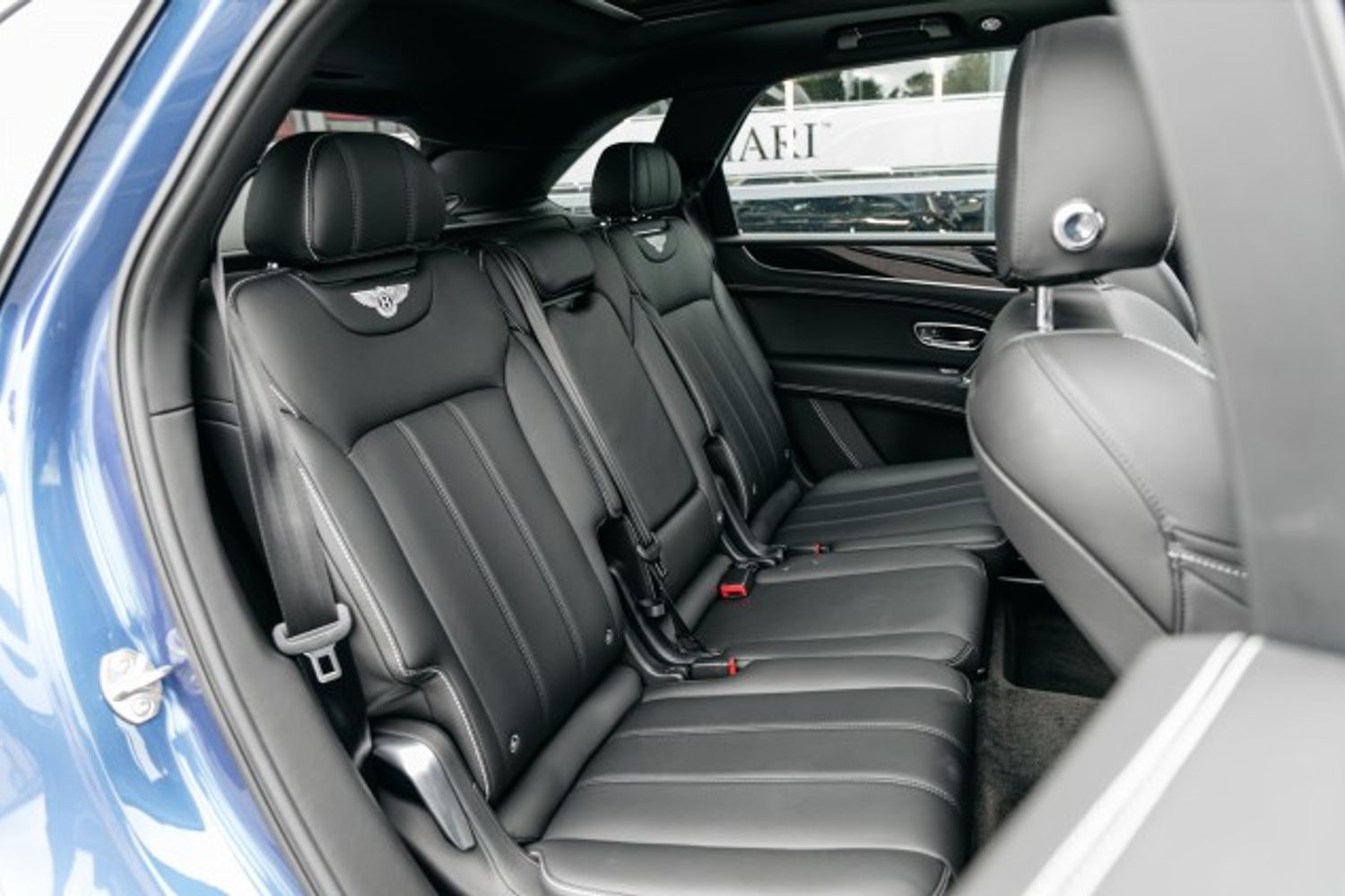 Finished Moroccan Blue with beluga black hide with 7 seats with 1 owner from new covering 7982 miles , optional extras are Piano Black Vaneer, Extended range Solid Black, Touring Specification, Colour specification for 7 seat spec, Battery charger UK Adaptor, dynamic ride system, 7 seat specification , body coloured lower body, mood lighting, hand free tailgate, 21" 5 twin spoke alloys painted black diamond finished. contrasting stitching, embroidered Bentley emblems, hand stitching on steering wheel in contrasting colour.