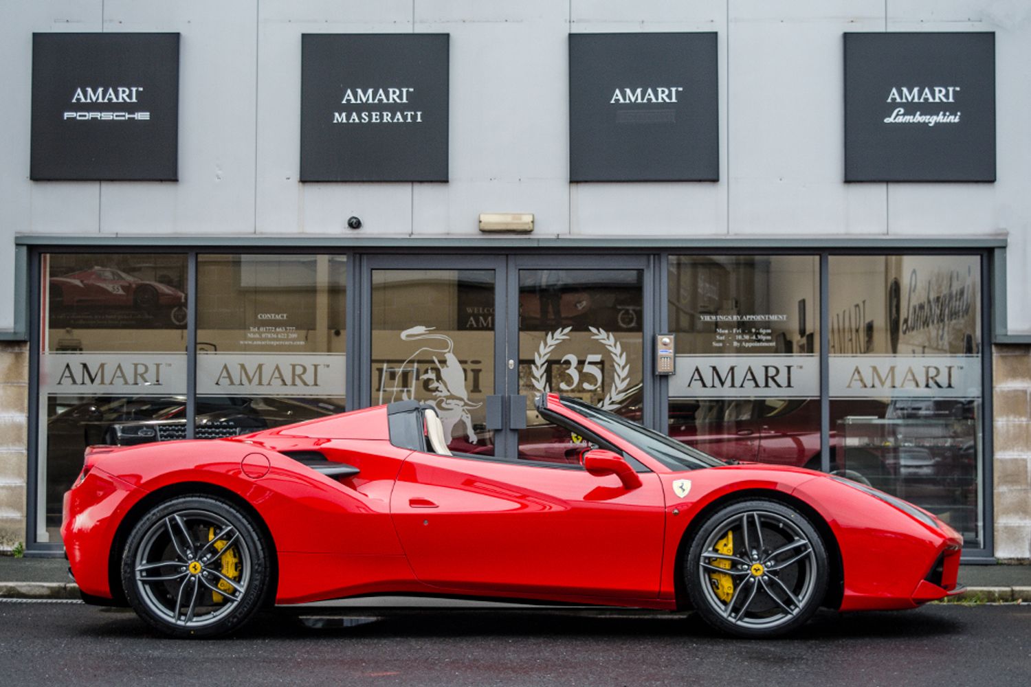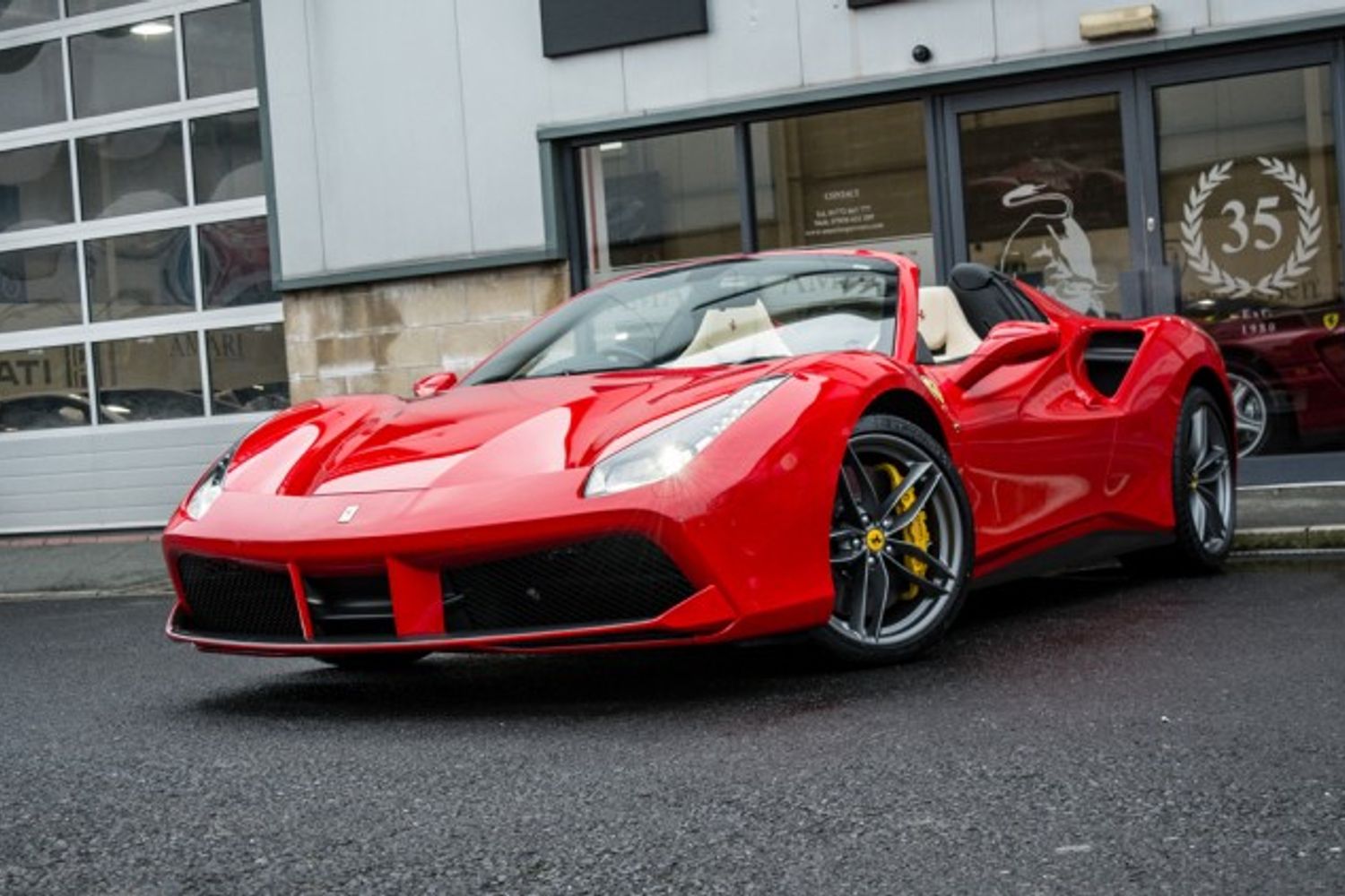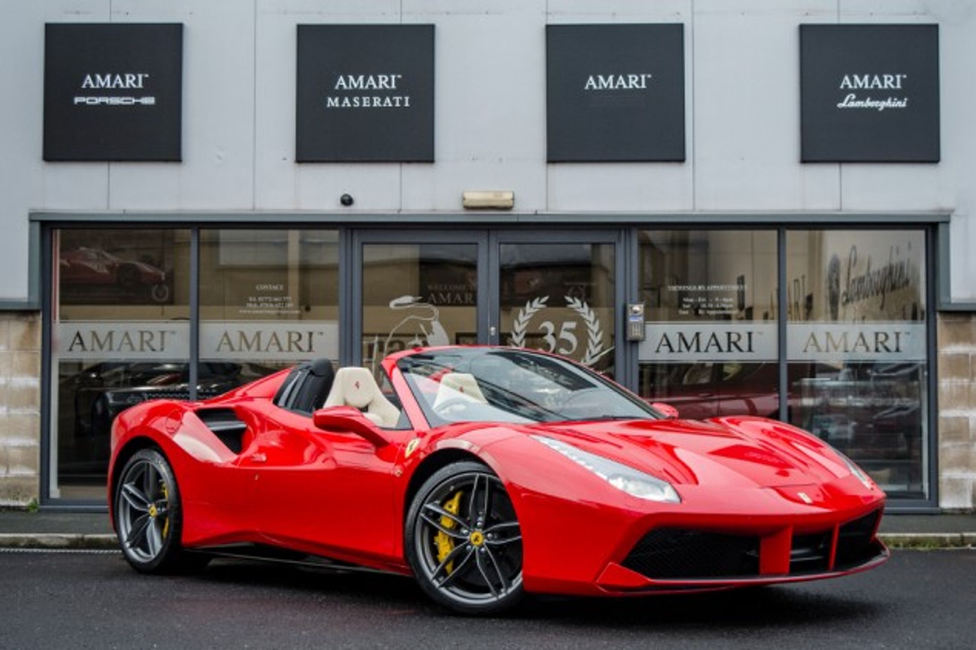 AMARI is delighted to offer the chance to beat the queues, with this extremely low mileage, yet another great example of the Ferrari 488 Spider which is as new, being a 2017 / 17 Registered example, in Rosso with Crema Hide interior which is the perfect Ferrari colour combination, having covered only 500 Miles by only 1 Registered Owner.