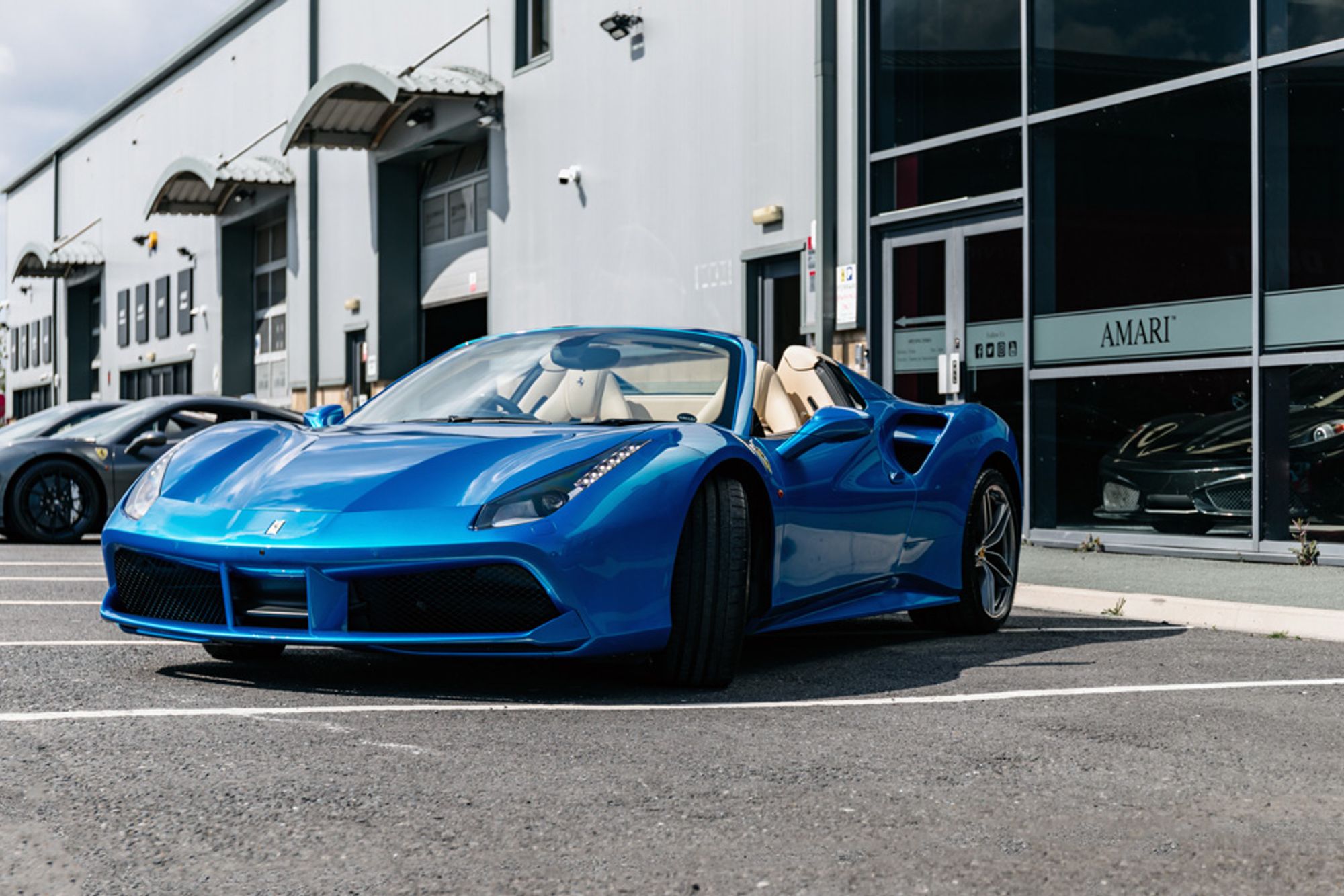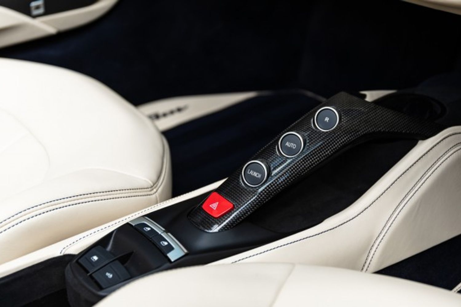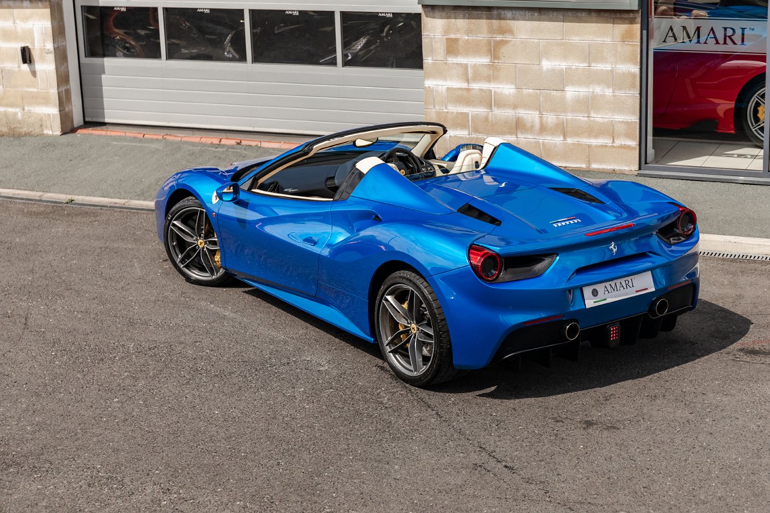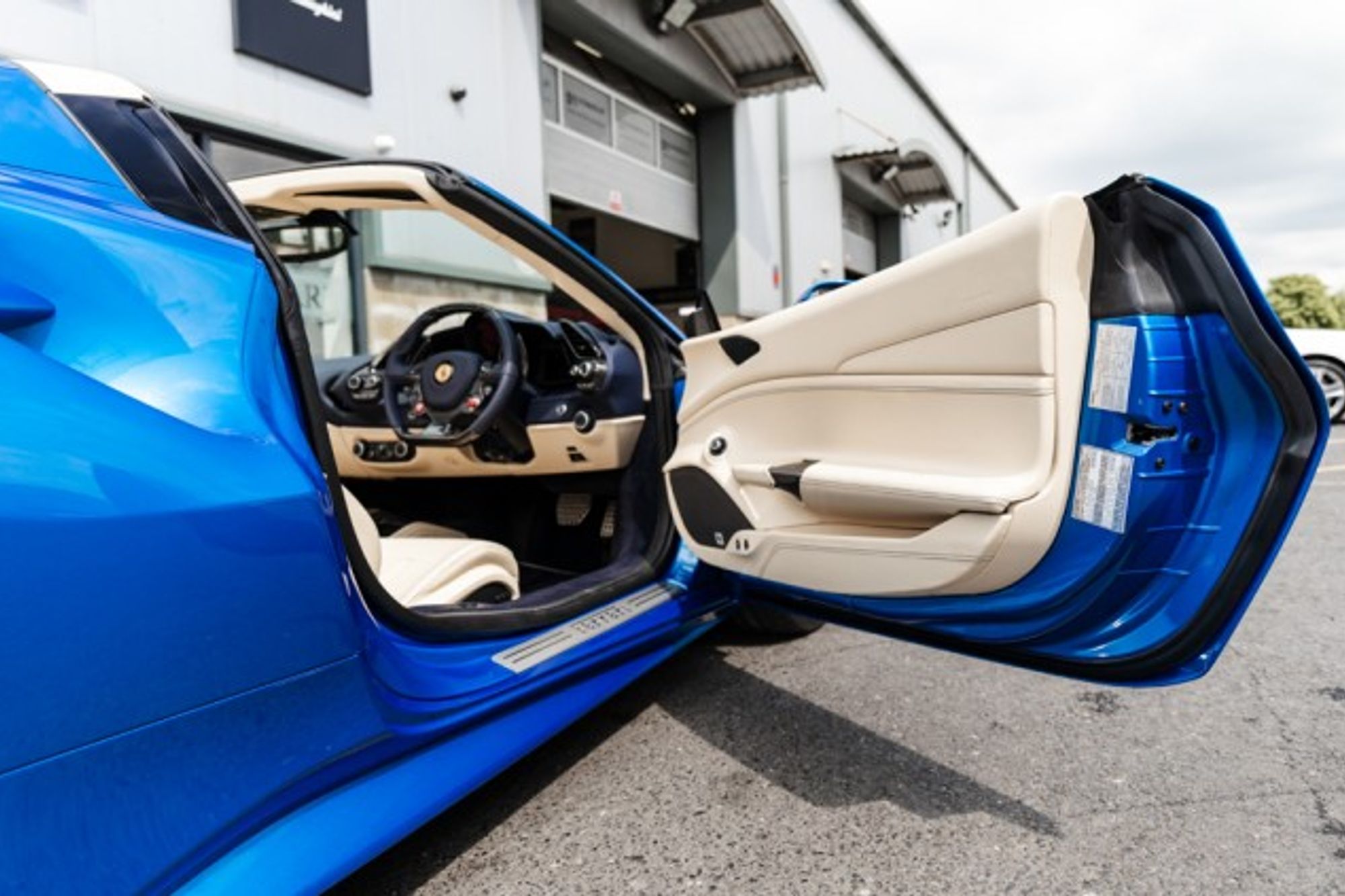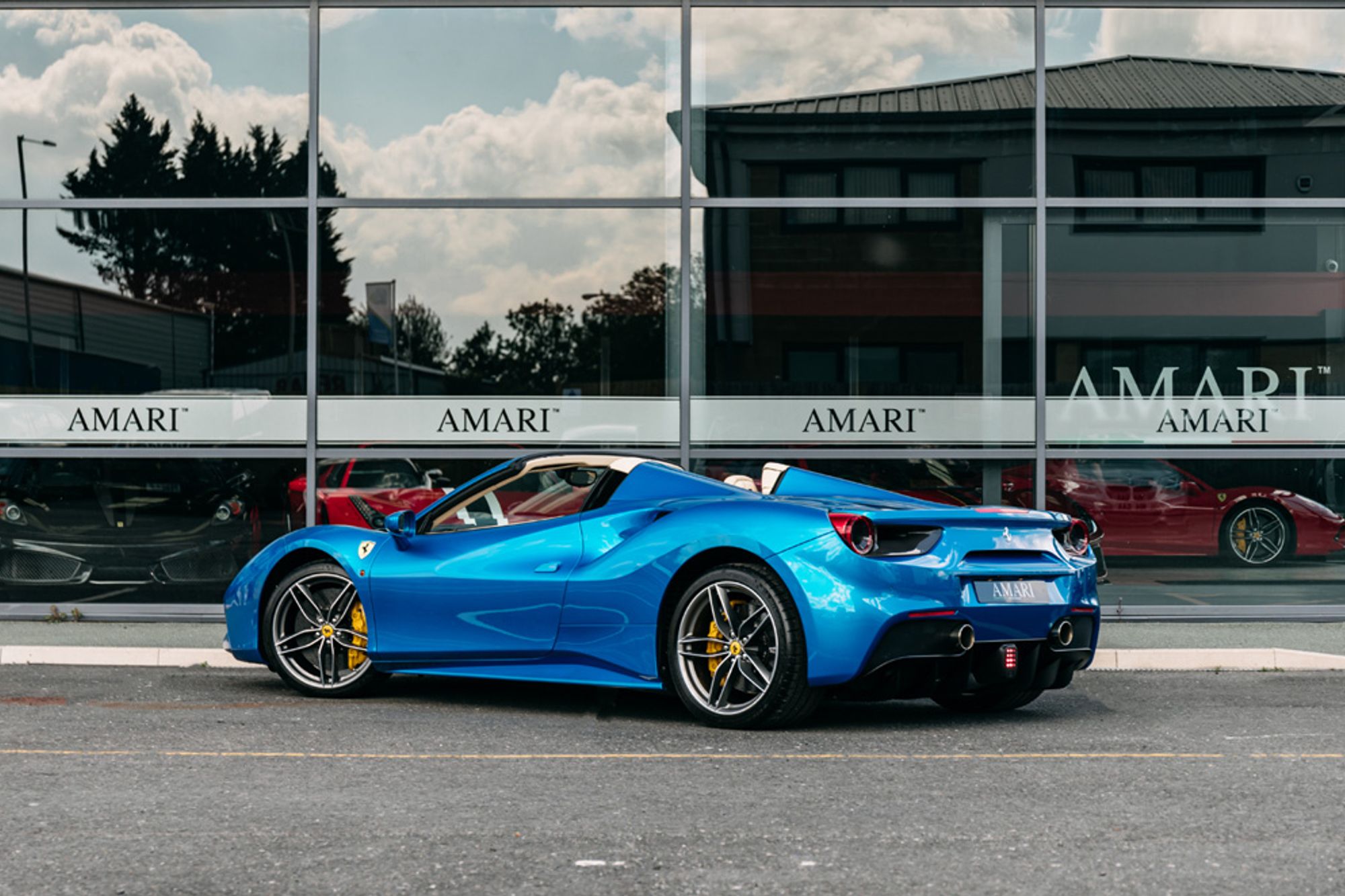 This particular, imposing example of the Ferrari 488 Spyder was supplied new in September 2017 (67 Registered). Finished in the gleaming Extra Range Exterior Paint, Blu Corsa featuring vibrant Giallo Brake Calipers, this truly is a stunning colour for the 488 Spyder. The interior is upholstered in a contrasting Crema Hide with Coloured Stitching in Blu also Blu Floor Mats. This vehicle has covered a mere 2,534 Miles by 1 Owner from New. The extensive specification is outlined below: