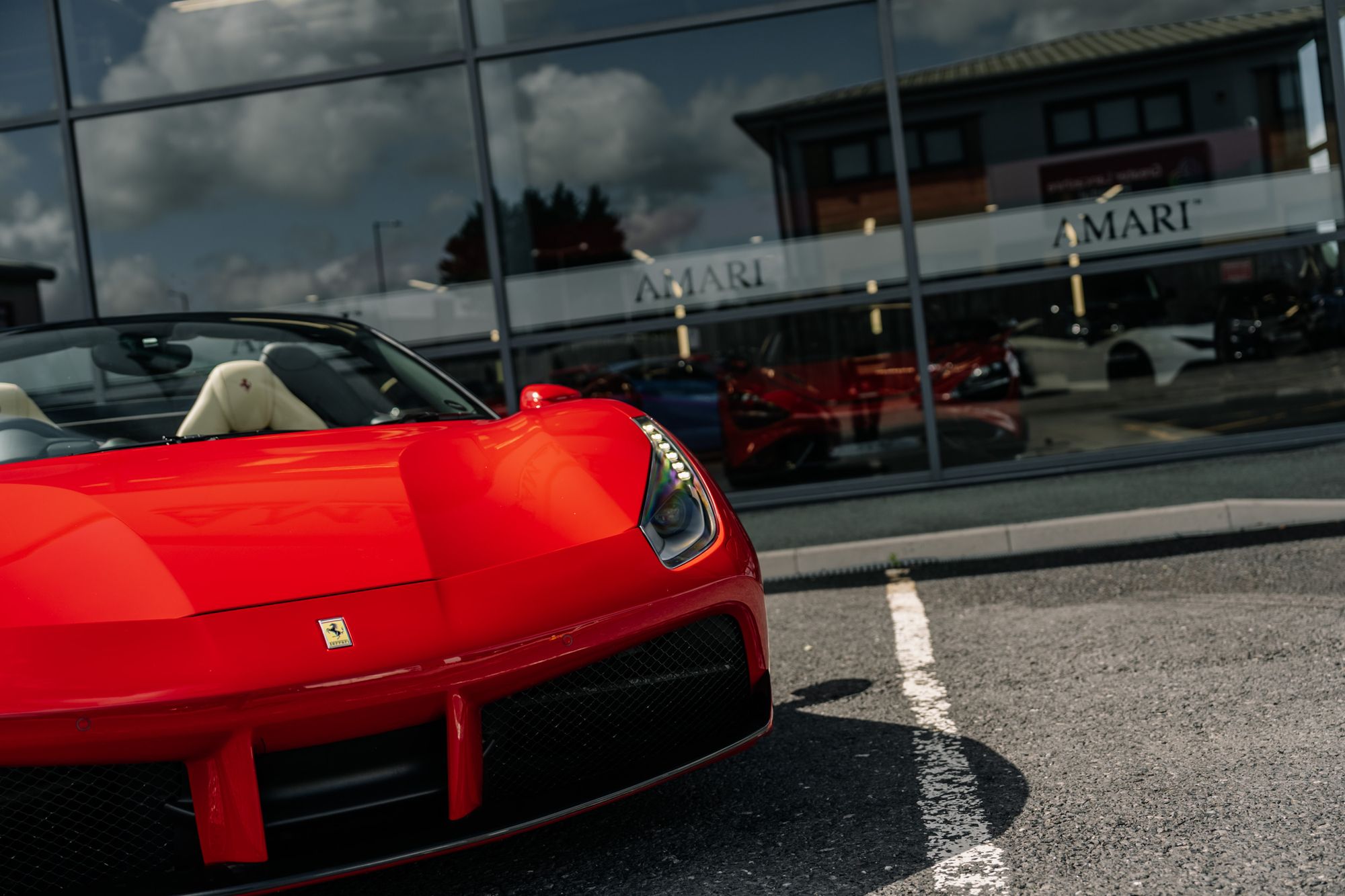 Introducing the stunning 2017 Ferrari 488 Spider, available at Amari Supercars. This exquisite supercar boasts an exterior finished in the classic Rosso Corsa, exuding a timeless elegance that commands attention wherever it goes. The luxurious interior is adorned with Crema Hide, creating a harmonious blend of comfort and style. The Nero mats provide a touch of contrast, enhancing the overall aesthetic.