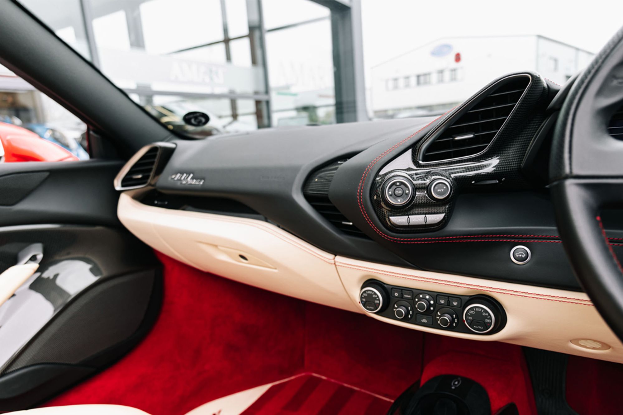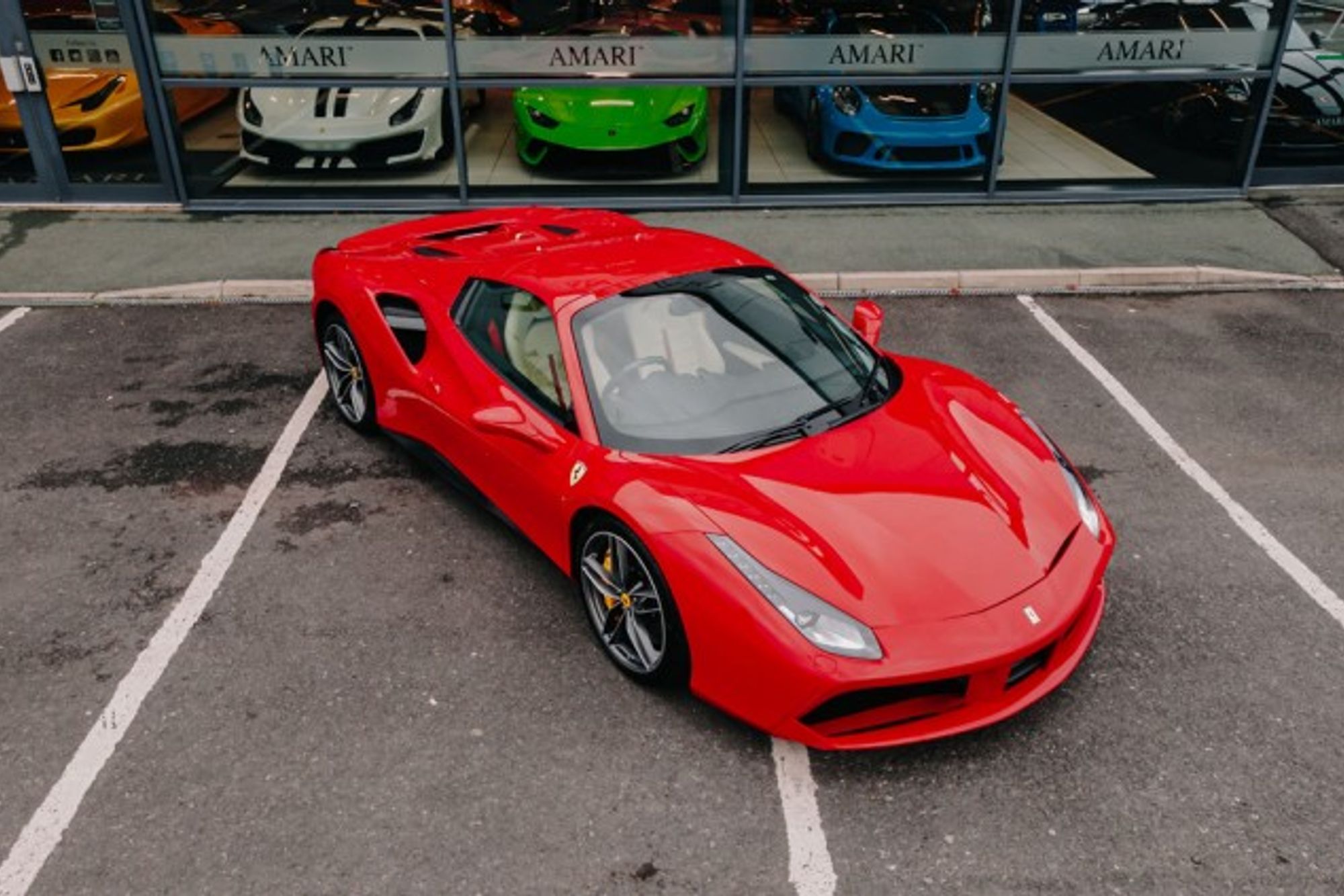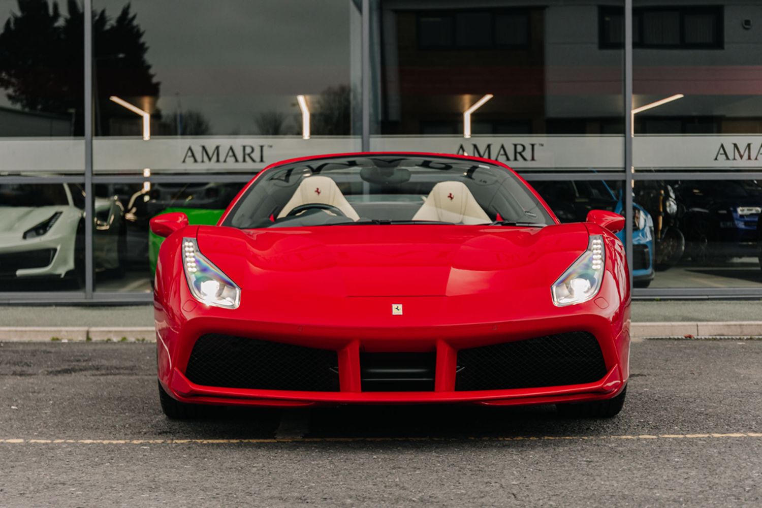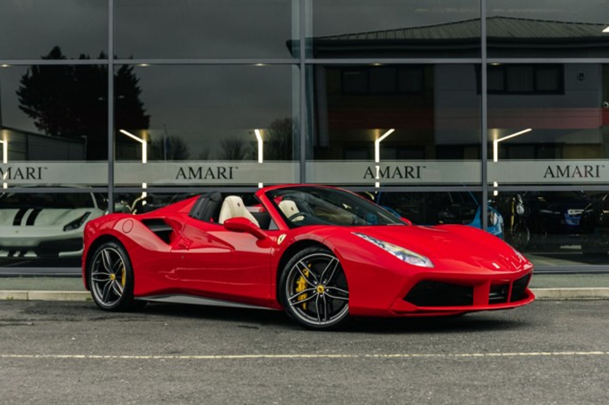 This particular example of the Ferrari 488 Spider was supplied new in May 2018, 18 Registered. Presented to you in Rosso Corsa, featuring 20" Forged Diamond Alloy Wheels. The interior is upholstered Crema Hide, with Rosso Central Stripe throughout the Daytona Style Seats, with Rosso Special Stitching in Rosso. This vehicle has covered a mere 4,295 Miles by 2 Owners from New. The full specification is outlined below: