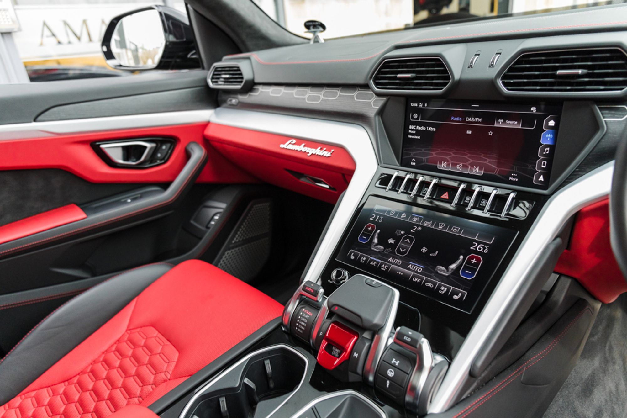 This particular example of the Lamborghini Urus was supplied new to the UK in November 2018, Registered on a 68 Plate. This car is finished in Nero Helene Metallic, sitting on 23" Taigete Diamond Cut Alloy Wheels. The interior is upholstered in Bicolour Sportivo Leather Nero with Rosso Alala, with contrasting Q-Citura Stitching. This vehicle has covered 14,880 Miles by 4 Owners. The full specification is outlined below: