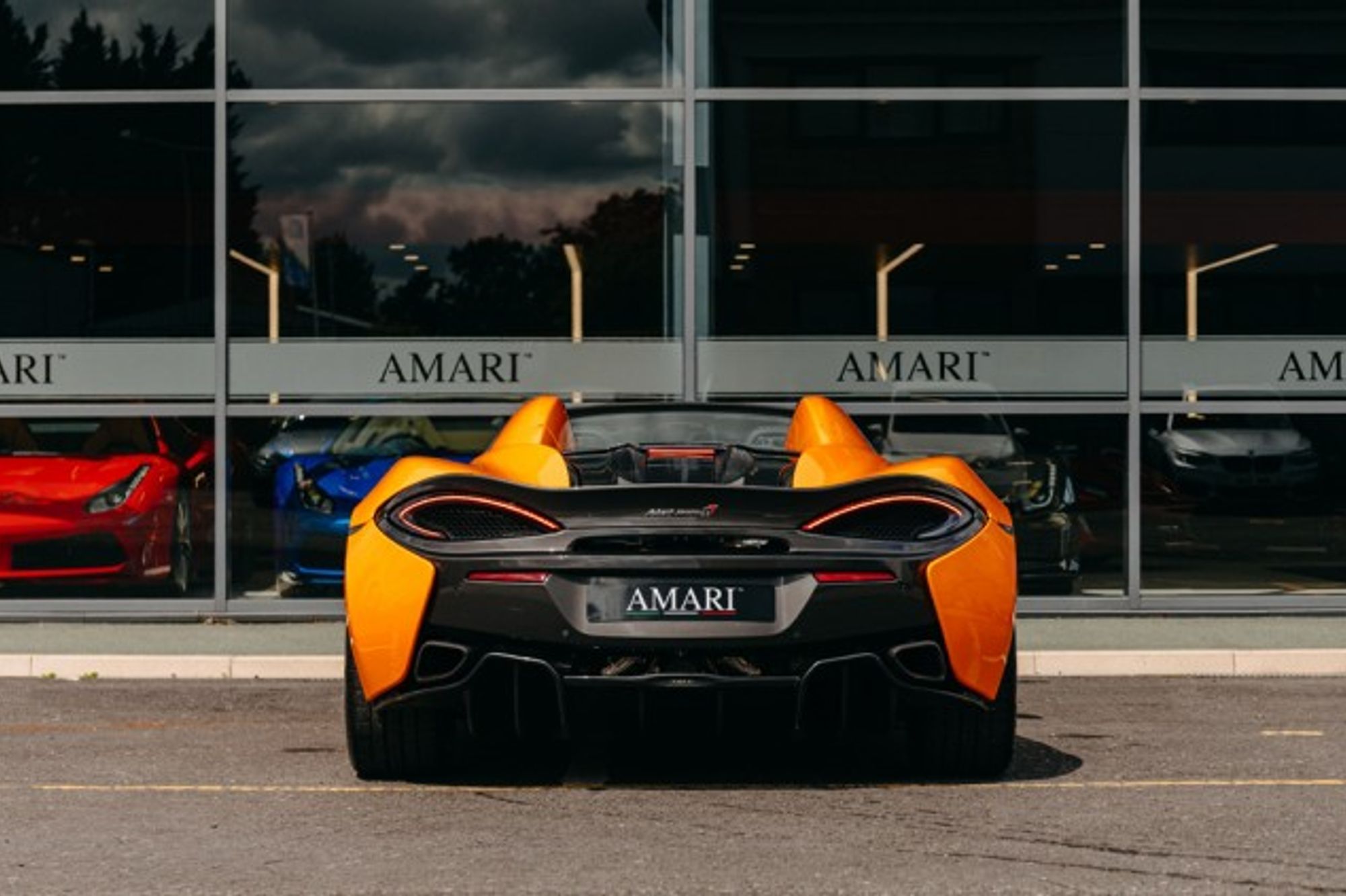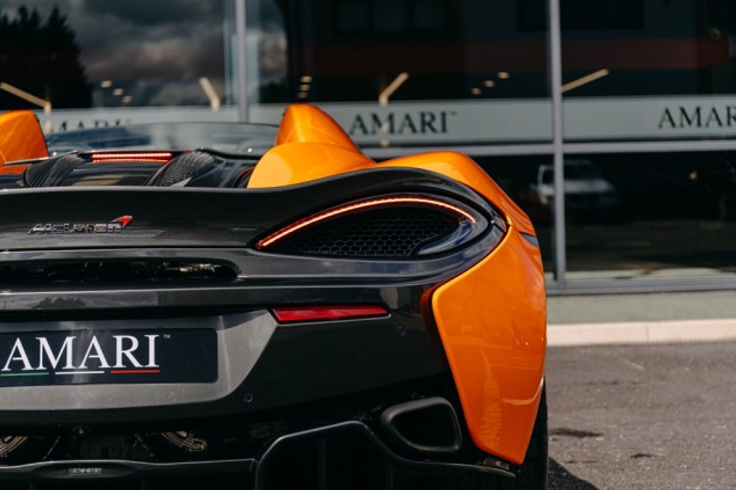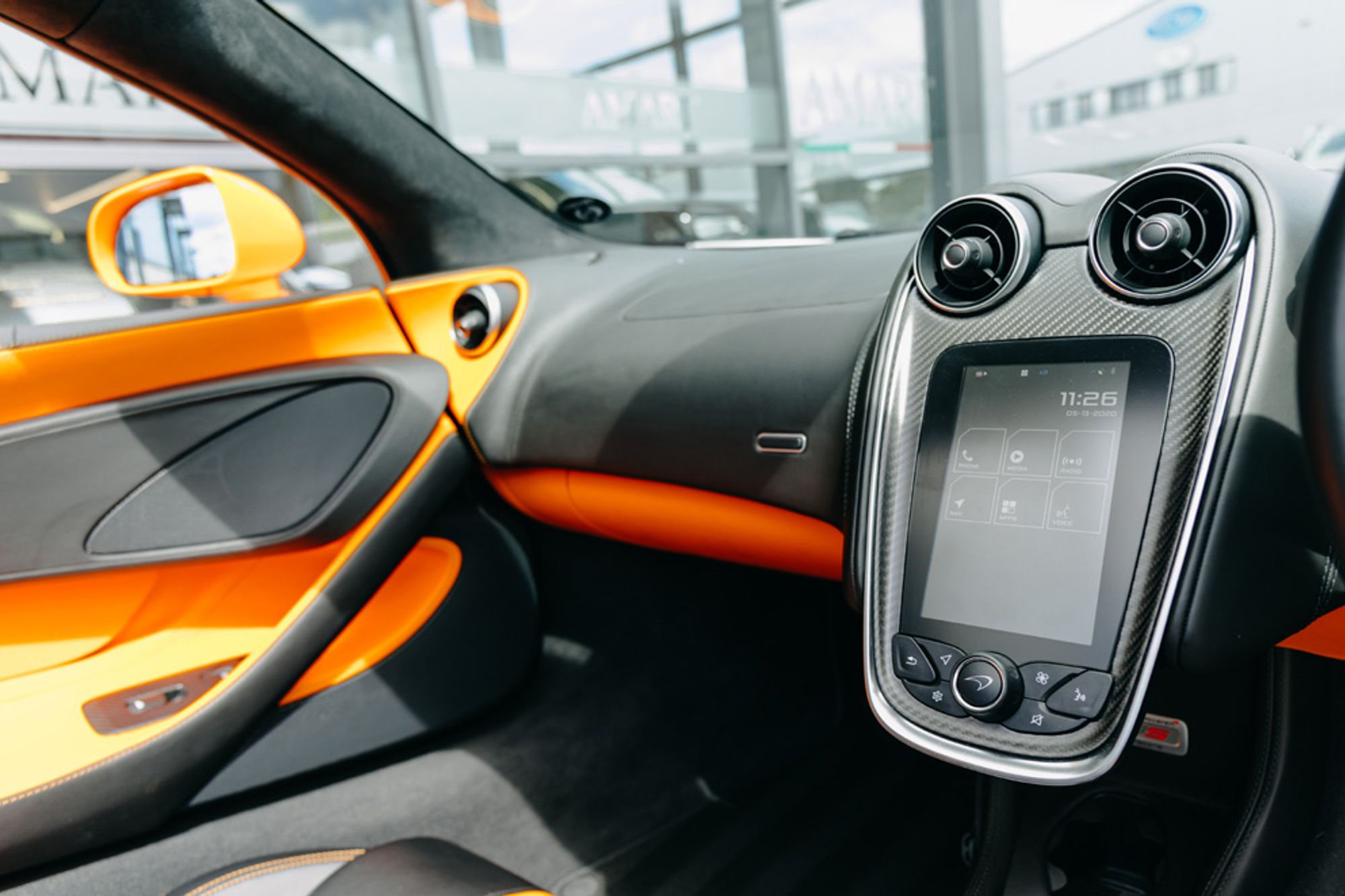 This stunning McLaren 570 S spider V8 SSG is finished in McLaren orange one very lucky owner covering only 7,789 miles with full McLaren service history maintained regardless of cost Mclaren come to the following cost options above standard specification.