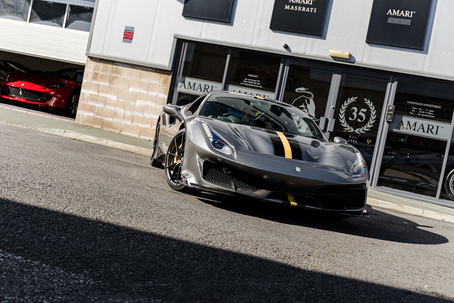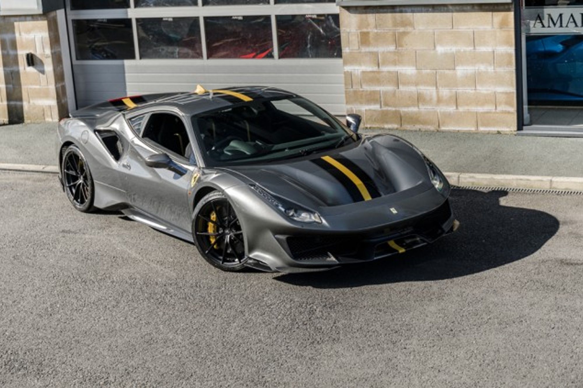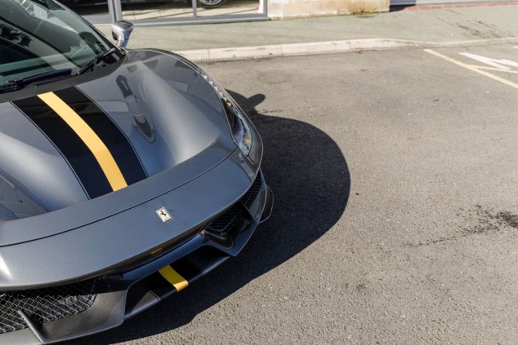 This particular example of the Ferrari 488 Pista is a UK Supplied Example and is physically available in our showroom. Finished in the Ferrari Historical Colours, Grigio Ferro Metallic, with the Two-Tone Livery in Giallo Modena and Nero Daytona, sitting on 20" Forged Dark Painted Alloy Wheels with vivid Callipers in Giallo, also featuring extensive Carbon Fibre. The interior is upholstered in Alcantara Nero, Giallo Stitching and Details, also extensive amount of Carbon Fibre in a Matte finish. This vehicle has covered a mere 161 Miles, by 1 Owner from New. The full specification list is outlined below: