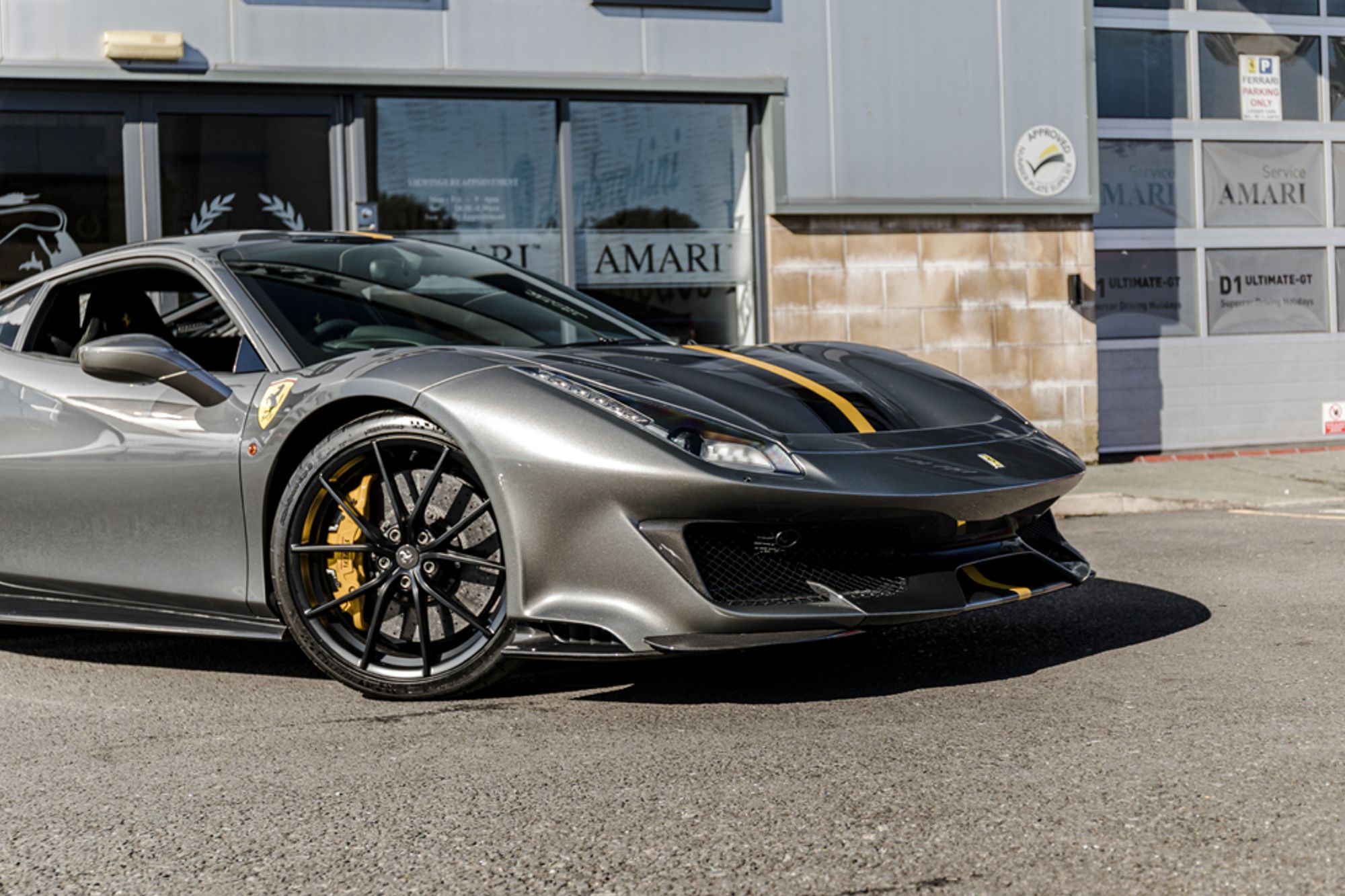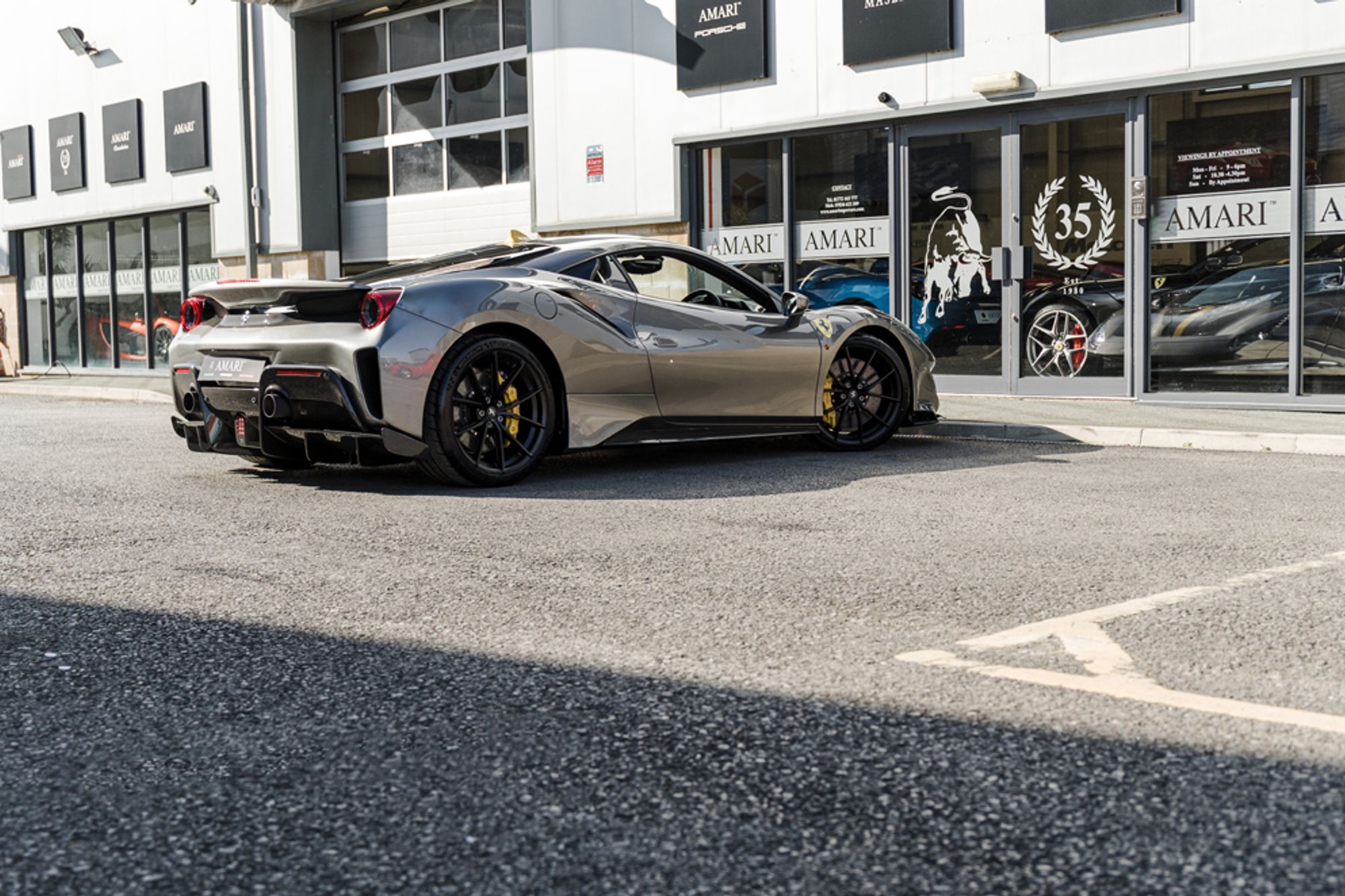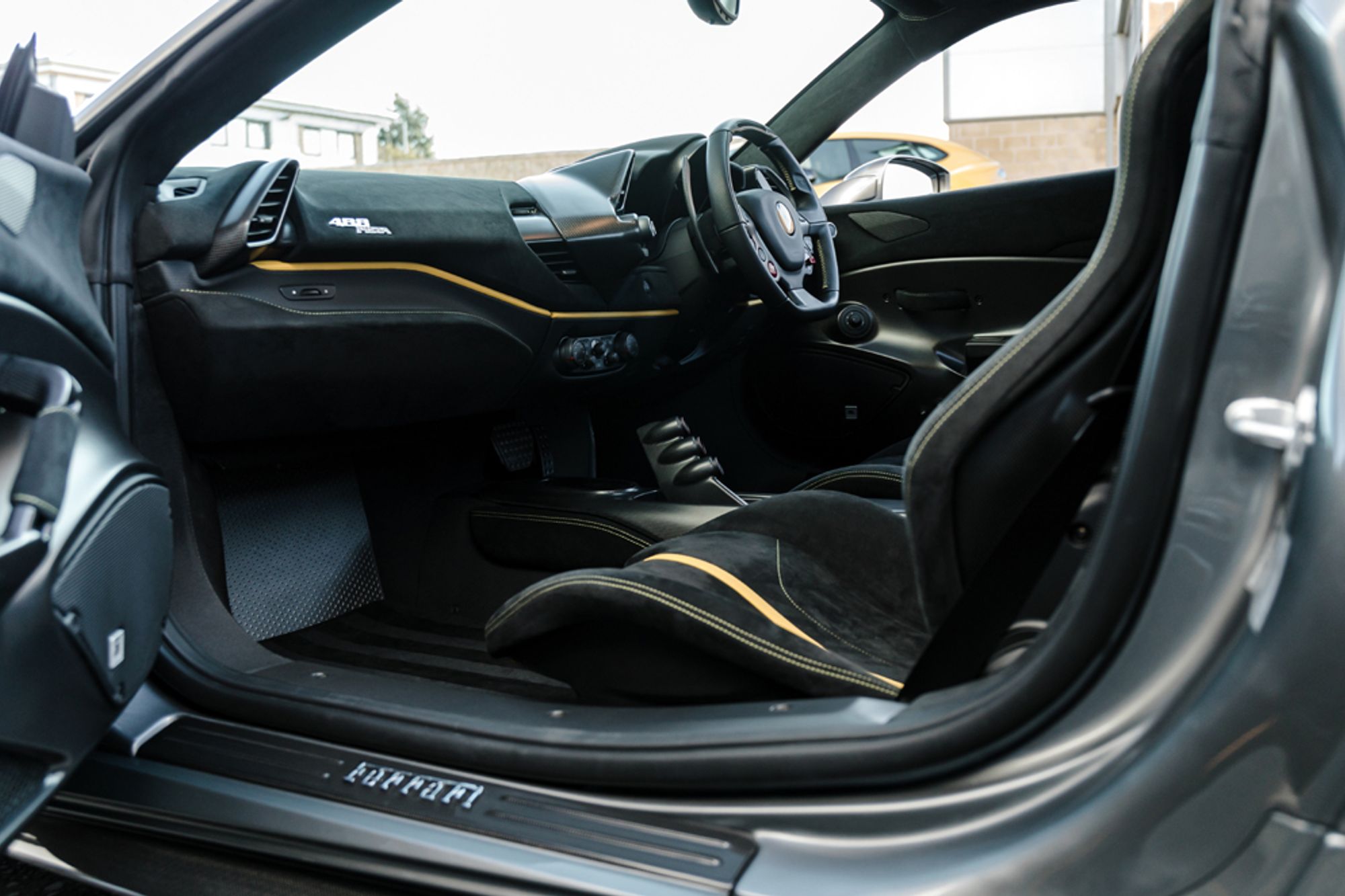 This particular example of the Ferrari 488 Pista is a UK Supplied Example and is physically available in our showroom. Finished in the Ferrari Historical Colours, Grigio Ferro Metallic, with the Two-Tone Livery in Giallo Modena and Nero Daytona, sitting on 20" Forged Dark Painted Alloy Wheels with vivid Callipers in Giallo, also featuring extensive Carbon Fibre. The interior is upholstered in Alcantara Nero, Giallo Stitching and Details, also extensive amount of Carbon Fibre in a Matte finish. This vehicle has covered a mere 161 Miles, by 1 Owner from New. The full specification list is outlined below: