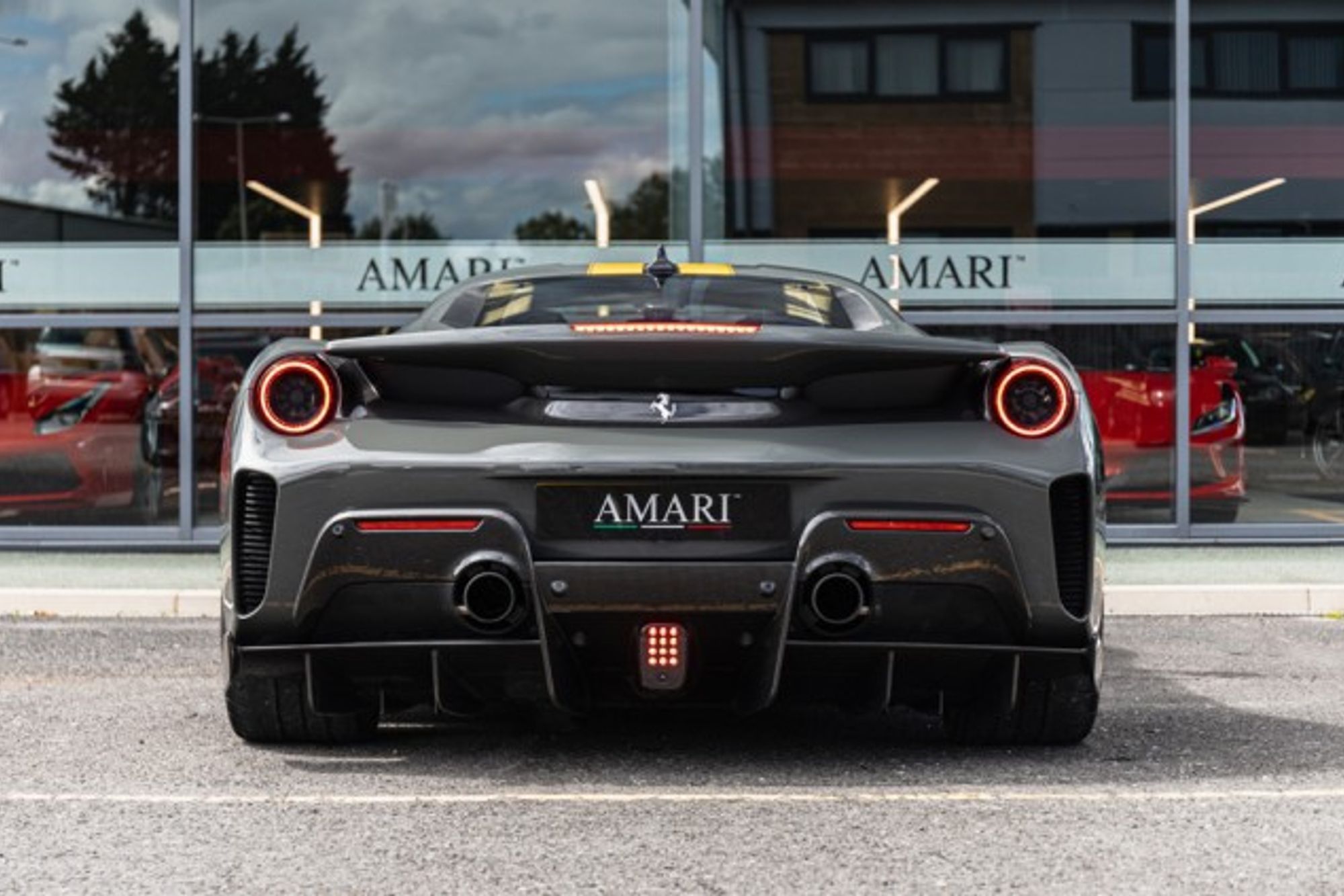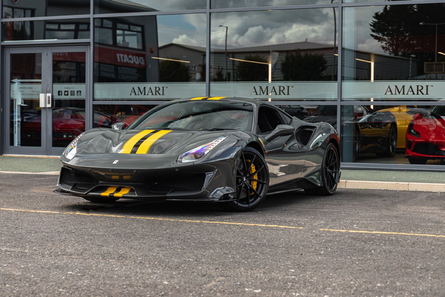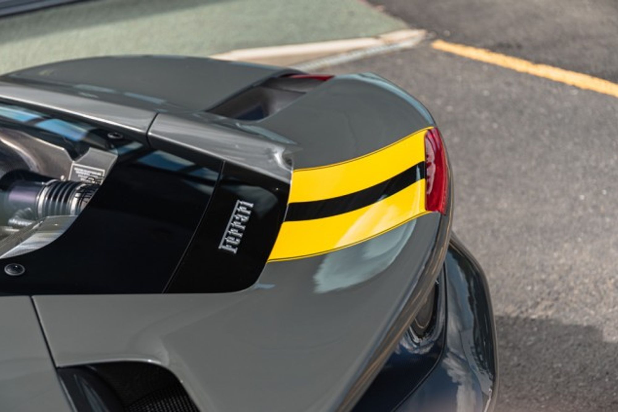 This particular example of the Ferrari 488 Pista (Atelier Car), was Registered in June 2019 (19 Plate). Finished in the Ferrari Historical Colour, Grigio Scuro, the Racing Stripe is in Glossy Giallo Modena, also featuring an extensive amount of Carbon Fibre. The interior is upholstered in Alcantara Nero blending perfectly with the subtle exterior. This vehicle has covered a mere 1,500 Miles by 2 Owners from New. The extensive specification is outlined below: