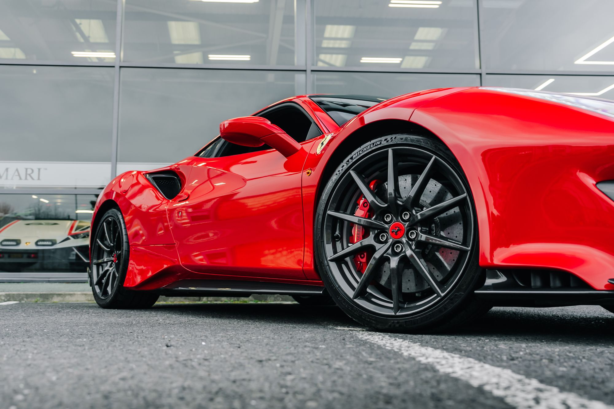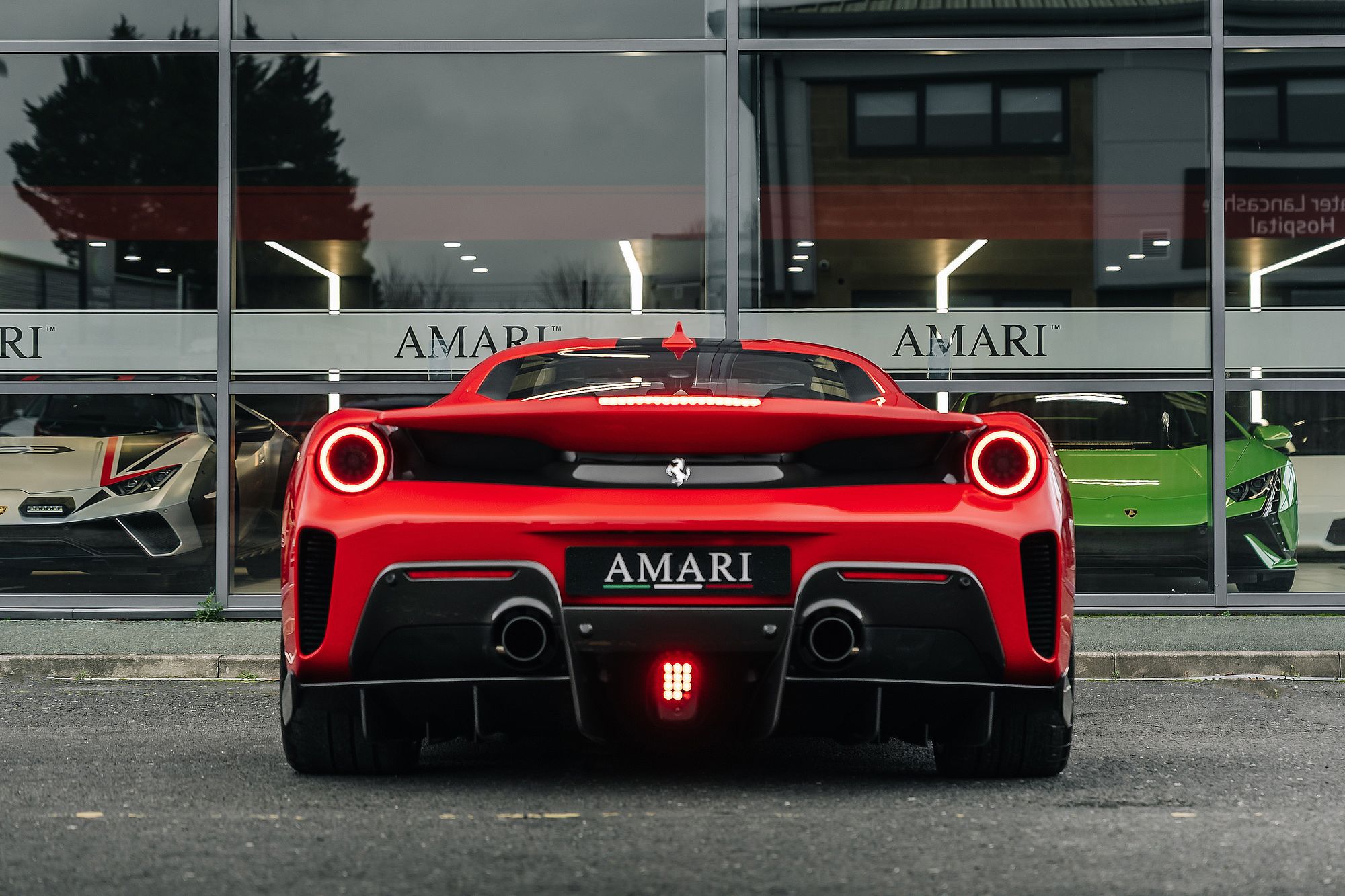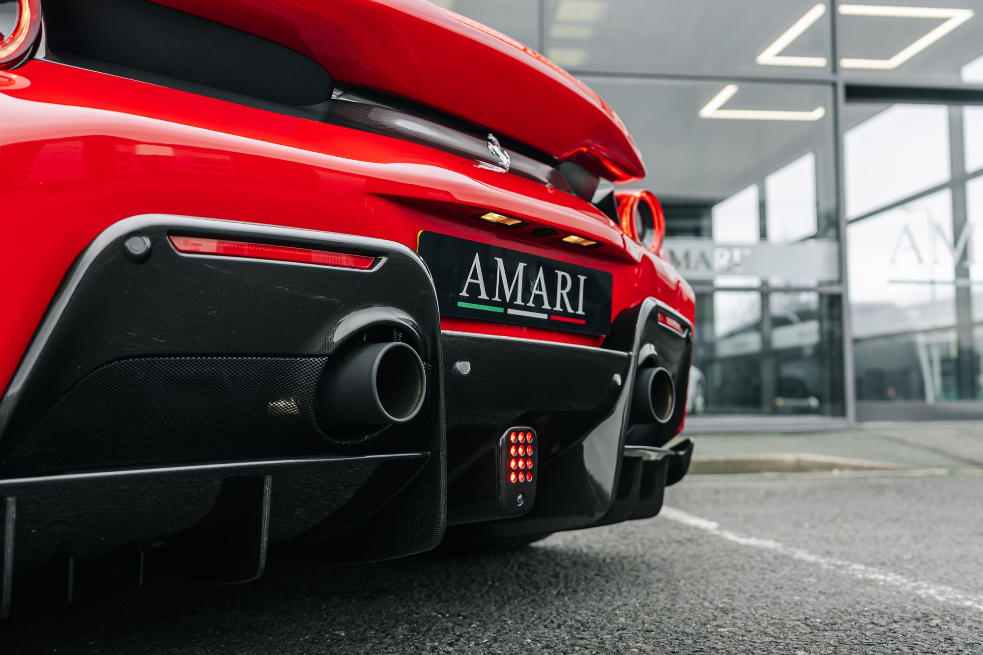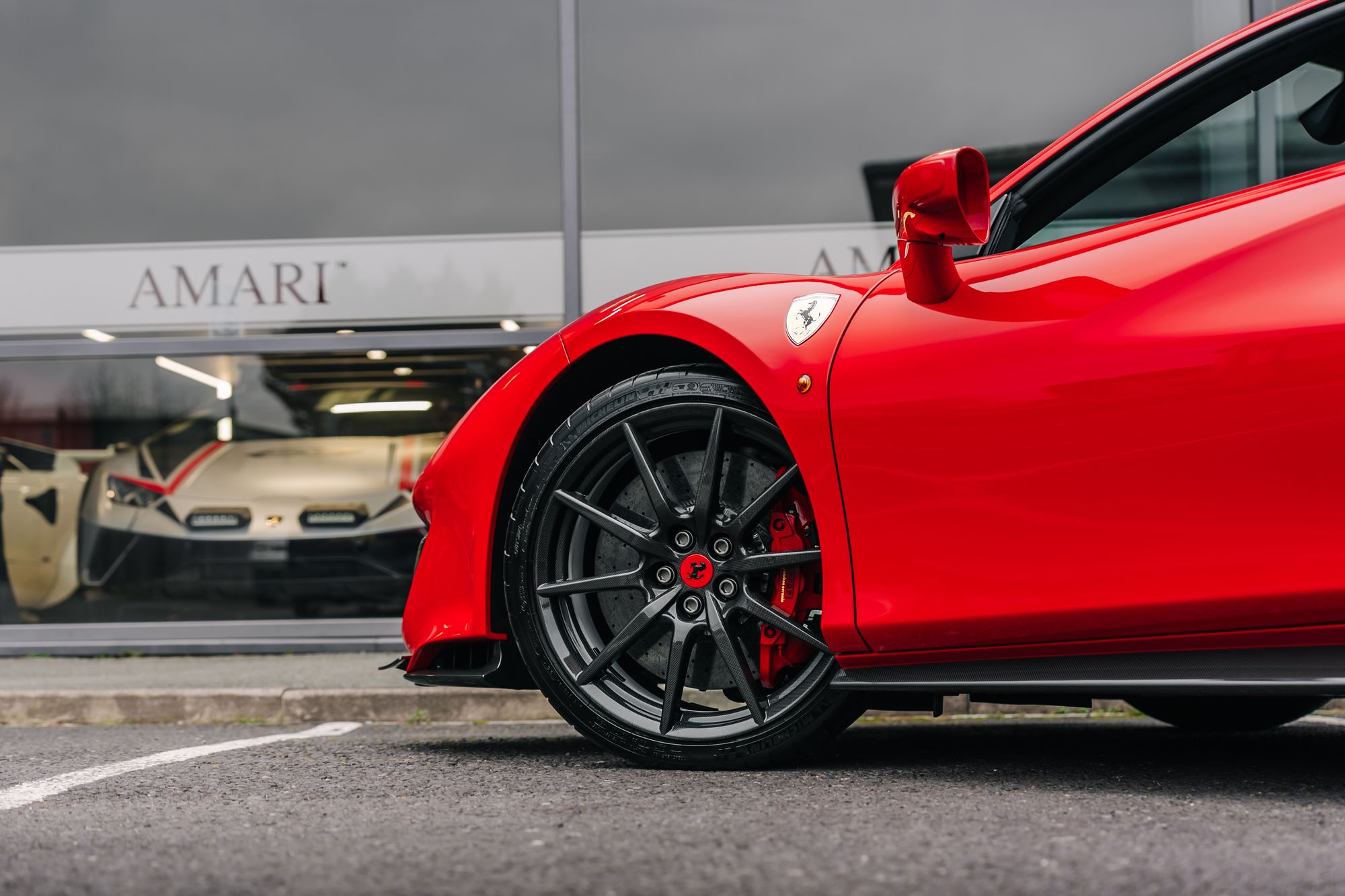 This particular example is an Atelier car, registered June 2019 (19), and represents a truly outstanding specification. Finished in Rosso Corsa with a striking Racing Livery in Glossy Nero Daytona, the exterior is further elevated by an exceptional array of exposed carbon fibre components, including front flaps, side air splitters, engine covers, rear diffuser, front air vents, underdoor covers, inner sill trim, rear moulding and even carbon fibre wheels. Inside, the cabin is trimmed in Alcantara Nero with carbon fibre racing seats (large size), 4-point black safety harnesses, aluminium rev counter, Rosso Ferrari leather inner details and Rosso contrast stitching. The bespoke nature of this car is underlined by multiple dedication plates marked ‘Atelier 17/07/2018’, dreamline detailing in Glossy Rosso Corsa on the steering wheel and F1 paddles, and a vast list of special equipment including suspension lifter, parking camera, carbon ceramic brakes with red calipers, Scuderia Ferrari shields, navigation with Bluetooth, and NavTrak anti-theft system. Offered with a full Ferrari service history.