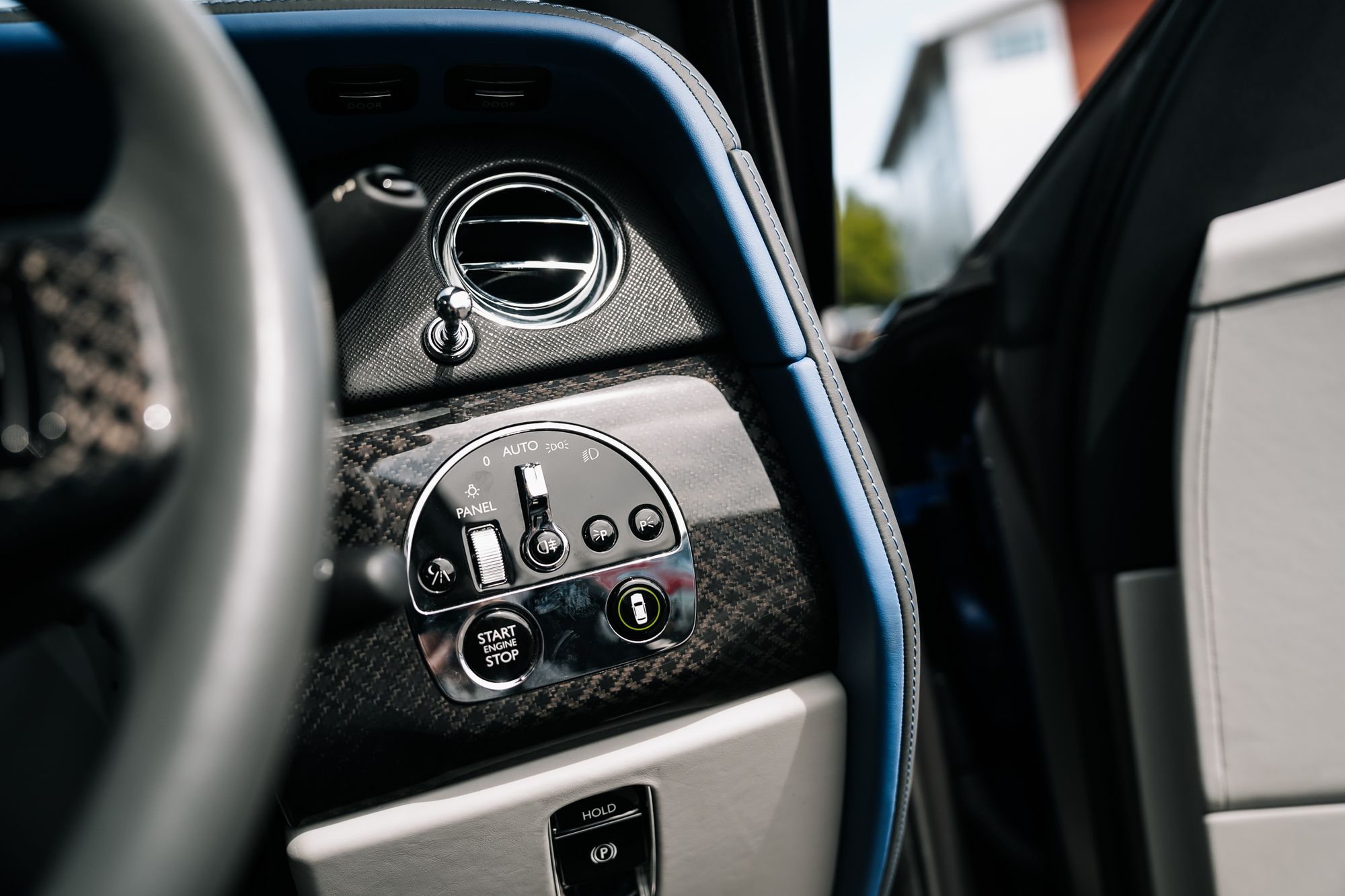 Step inside the opulent cabin, where you'll be enveloped in pure luxury. The interior is a harmonious blend of Selby Grey and Cobalto Blue, exuding an aura of tranquillity and refinement. The extended leather headliner adds an extra layer of sophistication, creating an atmosphere of lavish comfort. The shooting star headliner is a mesmerizing feature, transforming the ceiling into a celestial masterpiece with its sparkling display of stars. The seat belts in Slate provide a subtle contrast, further enhancing the interior's allure.
