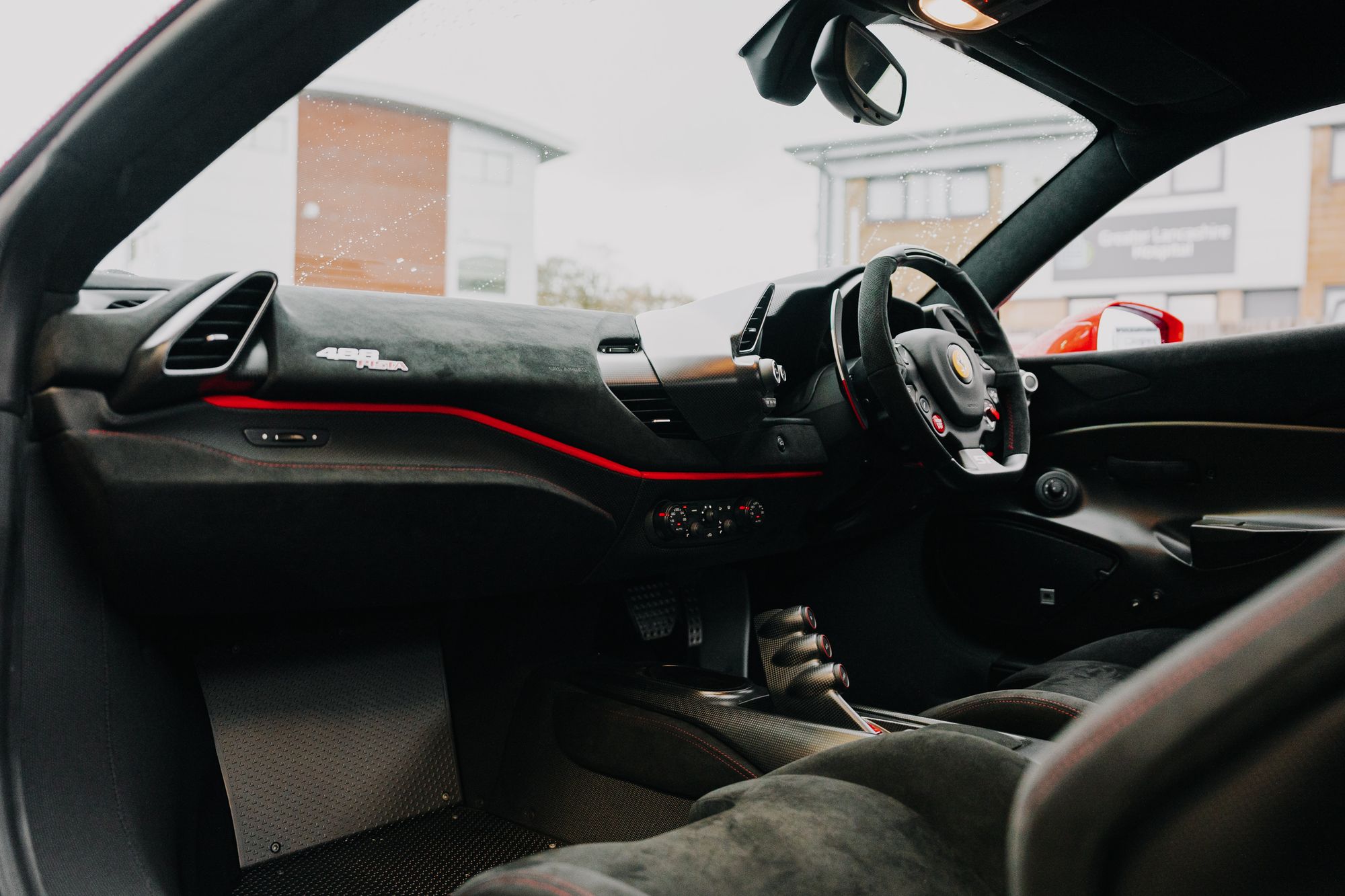 - Details in Red Leather on Dashboard and in Black Alcantara on Door Pocket