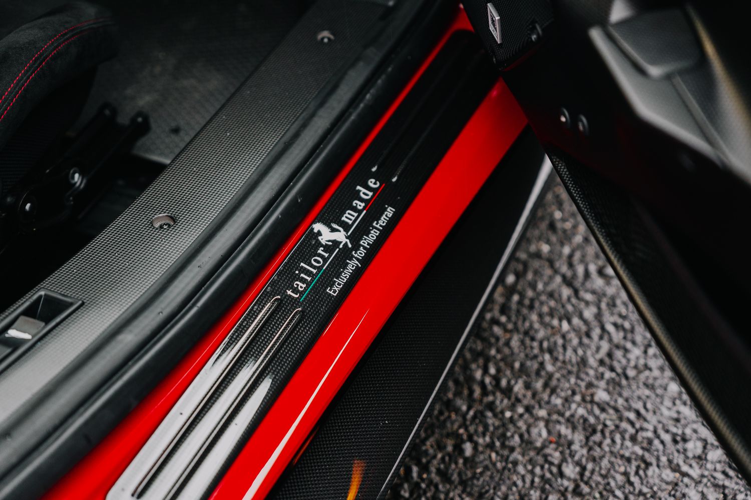 - Kickplate in Gloss Carbon Fibre with Dedication, Tailor Made Logo in Bianco Avus and Tricolour Stripe