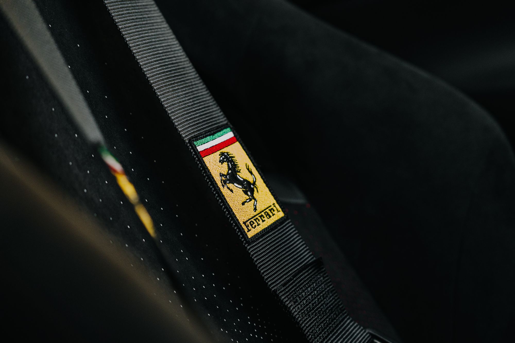 - Additional Black Superfabric Mats with Medium Size Dots and Edge Trim in Black Alcantara, Black Stitching and Insert in Perforated Soft Black Alcantara with Tricolour Base