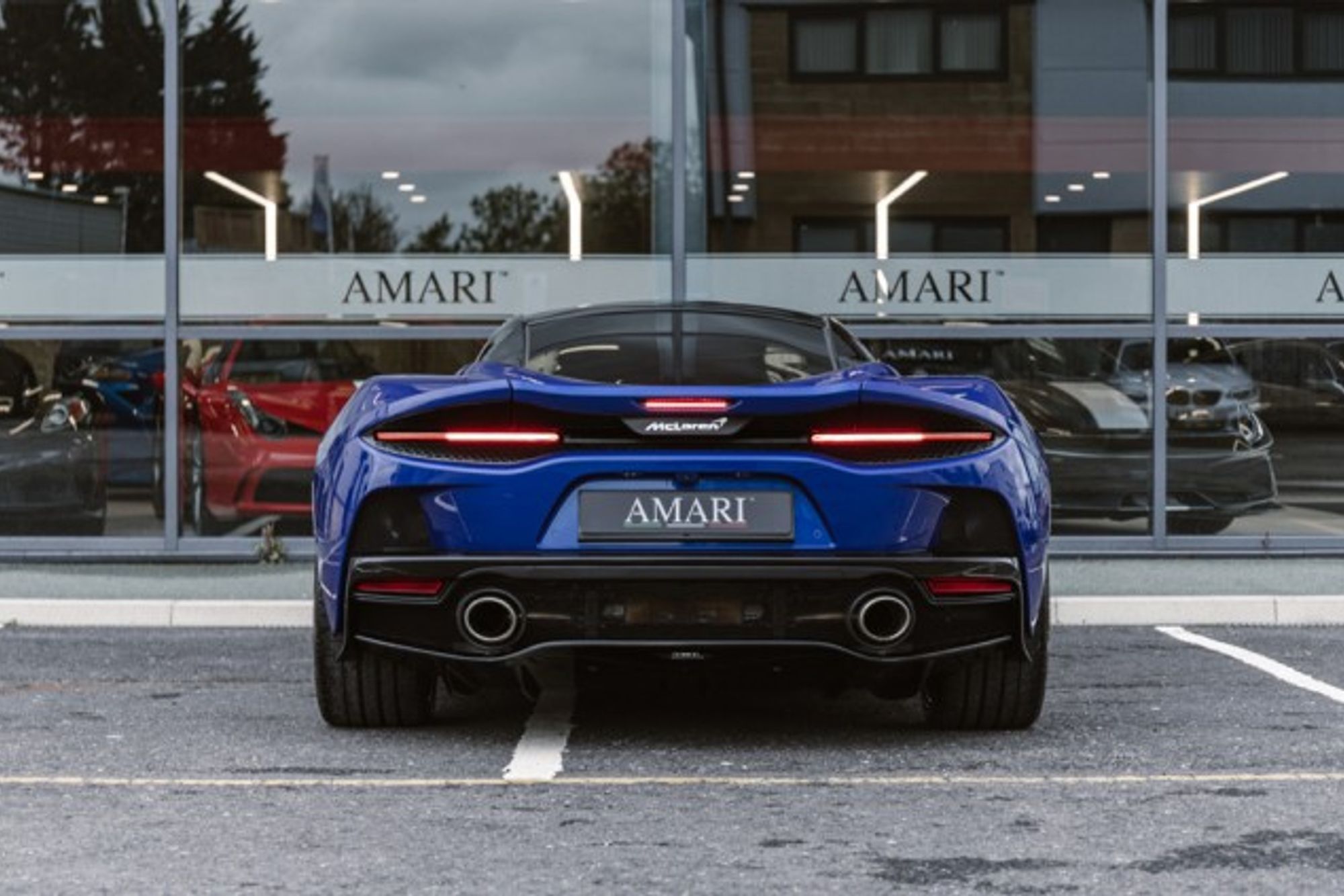 This particular example of the McLaren GT was supplied new in March 2020 (20 Registered and UK Supplied). Presented to you in the vibrant MSO Defined Burton Blue, featuring MSO Bright Pack which adds titanium exhaust surrounds, chrome trim around the windows and metal finished spokes and black accents. The interior is upholstered in Porcelain with contrasting Jet Black Hide throughout, enlighten by the Electrochromic Panoramic Roof. This vehicle has covered a mere 35 Miles by 1 Owner from New. The McLaren GT already boasts an extensive specification, however our vehicle is enhanced by the following options:
