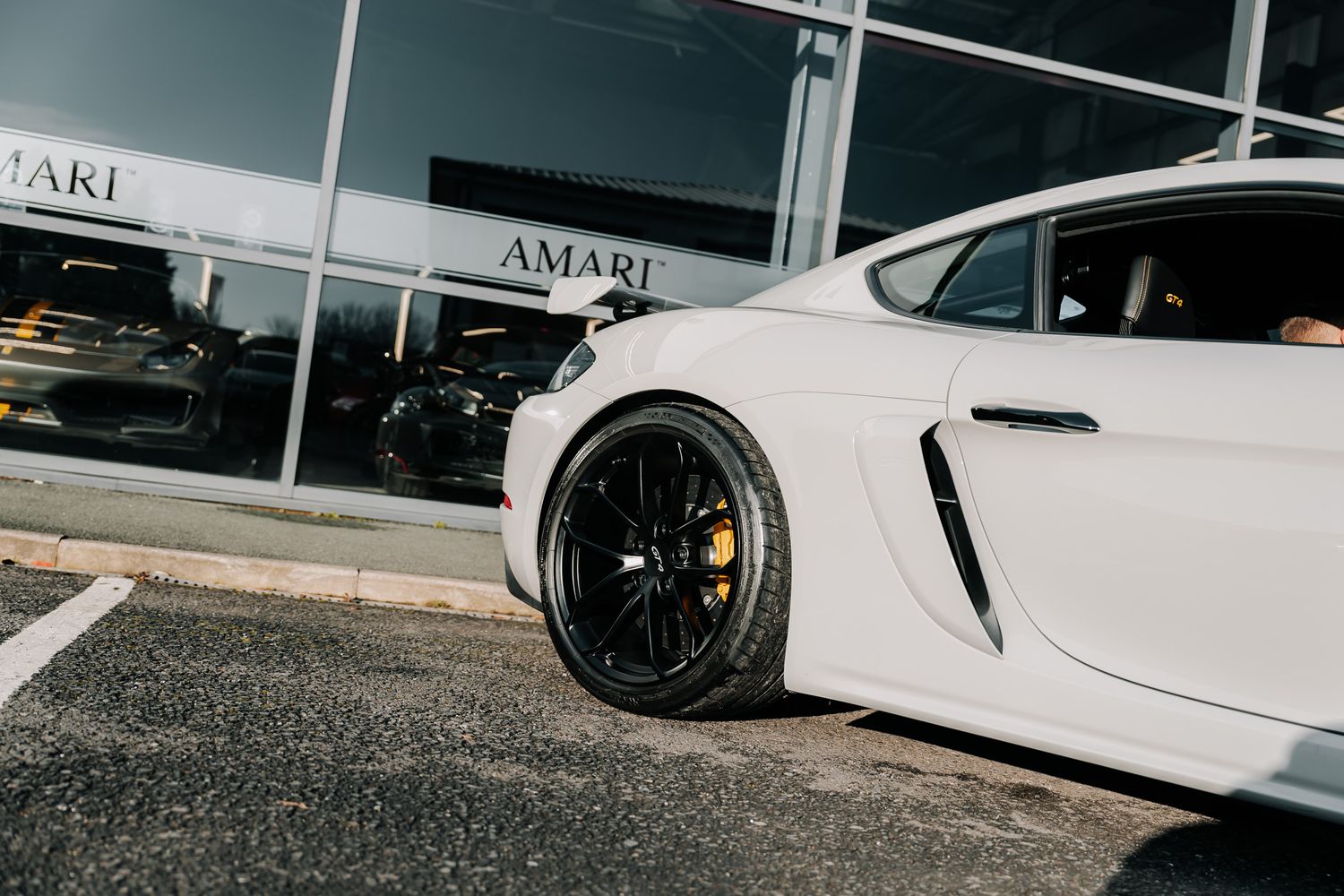 - 20-Inch 718 Cayman GT4 wheels in satin platinum