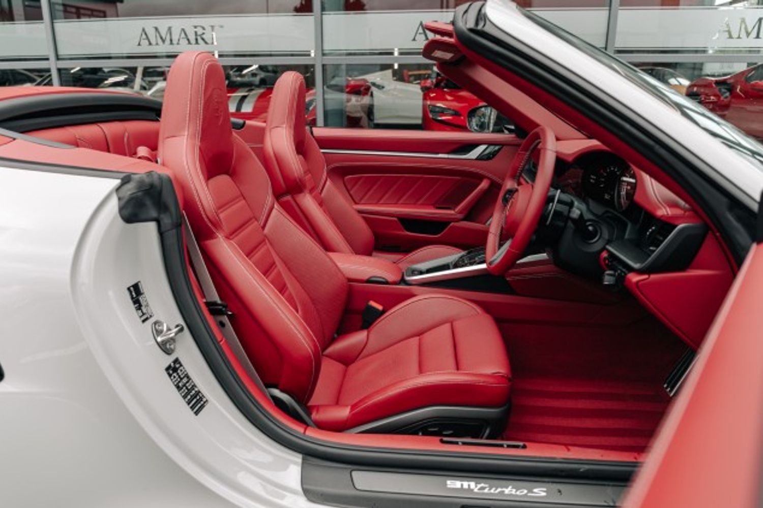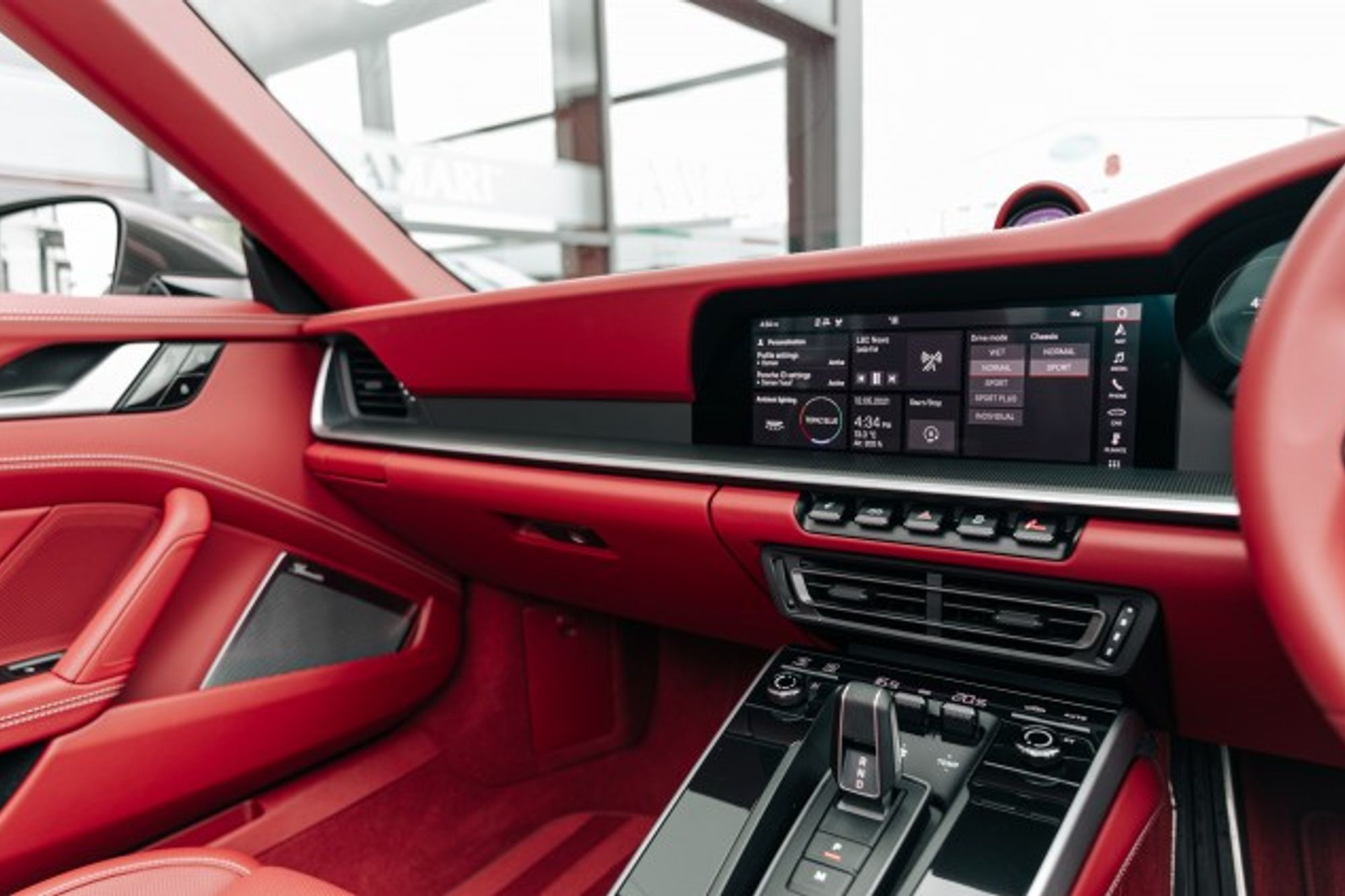 This particular example of the Porsche 911 992 Turbo PDK was supplied new in December 2020, 70 Registered. Presented to you in Crayon with Roof in Red, featuring 20/21-inch 911 Turbo S Exclusive Design Alloy Wheels. The interior is upholstered in Red Leather throughout. This vehicle has covered a mere 6,500 Miles. The specification is outlined below: