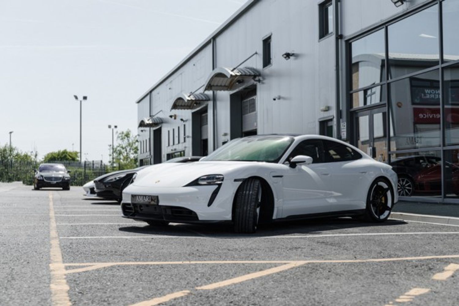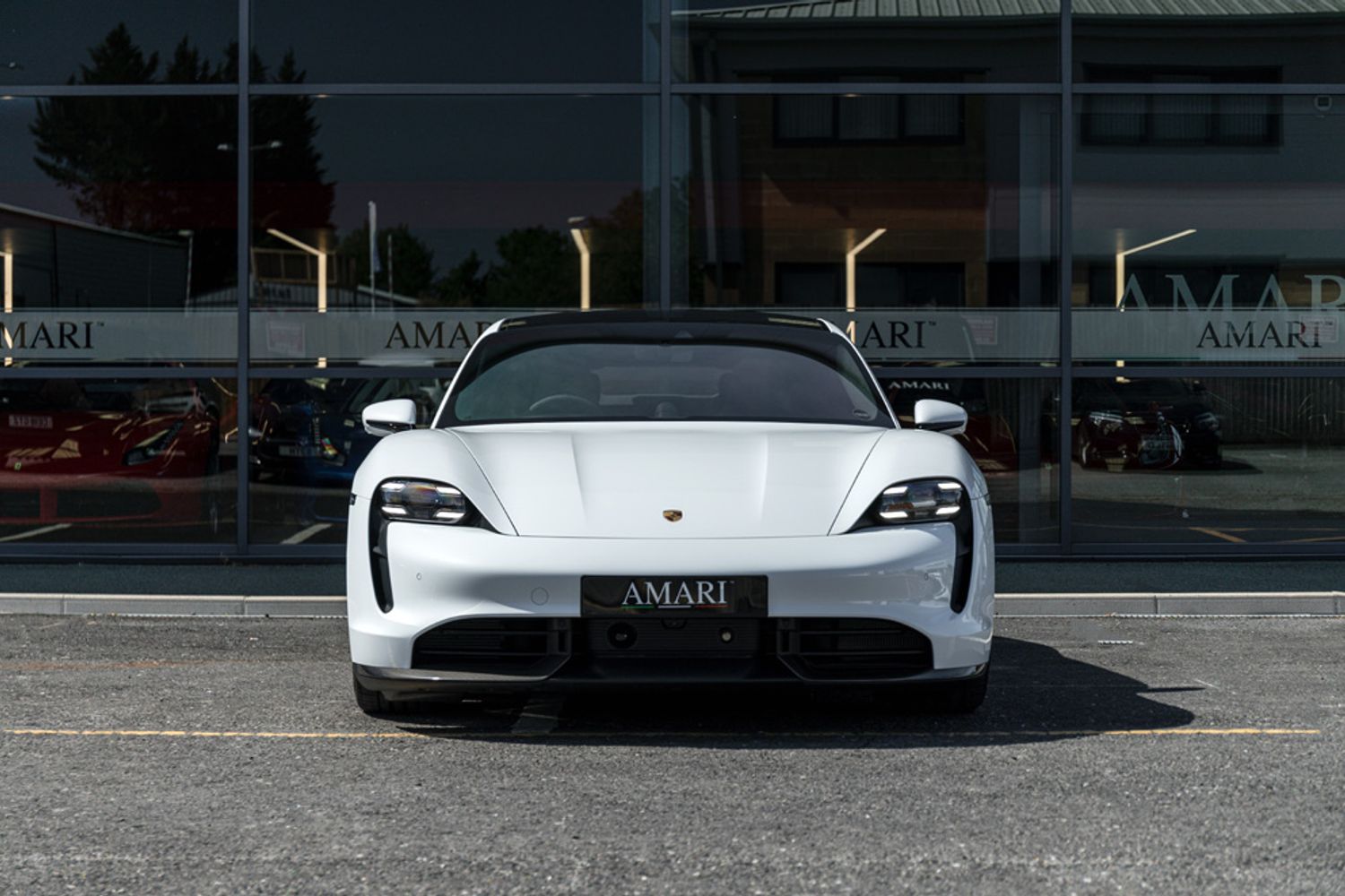 This particular example of the Porsche Taycan Turbo S was supplied new to the UK in May 2020, 20 Registered. Presented to you in Carrara White Metallic, featuring Alloy Wheels painted in Exterior Colour. The interior is upholstered in Black/Slate Grey TWo-Tone Leather-Free Interior, enlightened by the large Panoramic Roof, Fixed Glass. This example has only covered delivery mileage, 190 Miles with 1 Registered Owner. The full specification is outlined below: