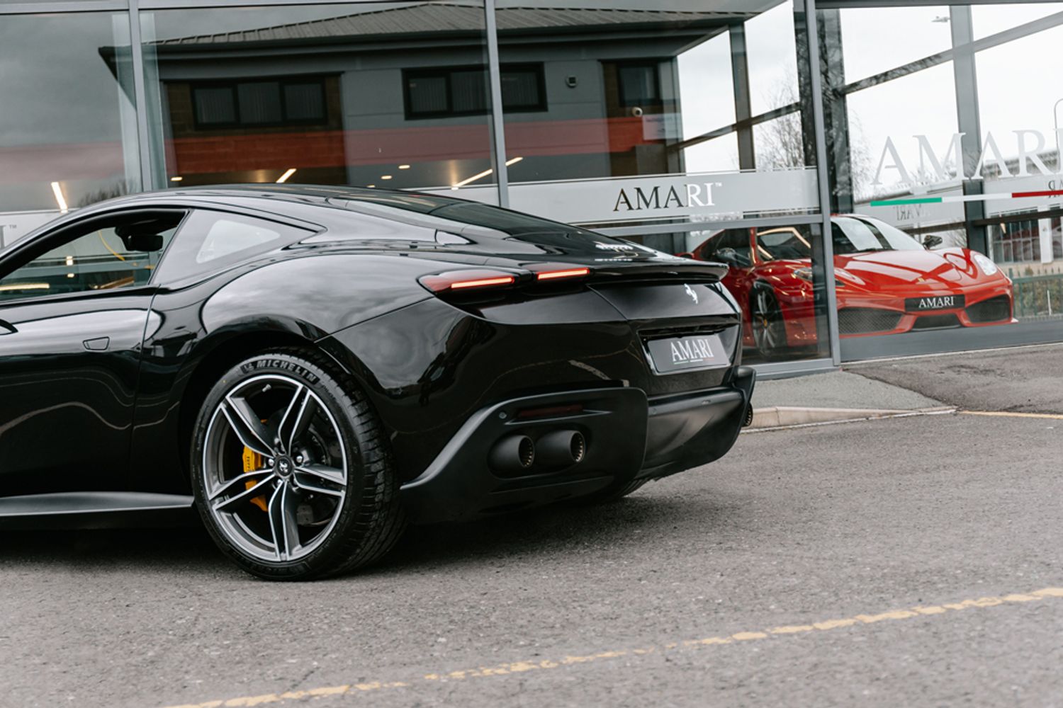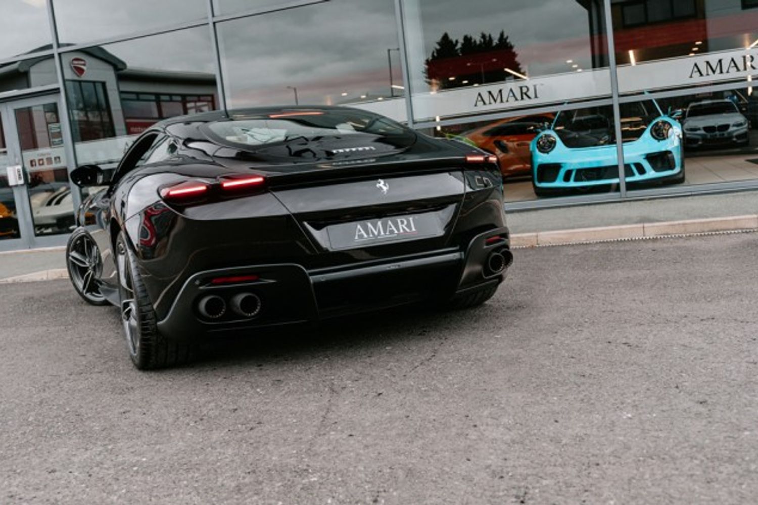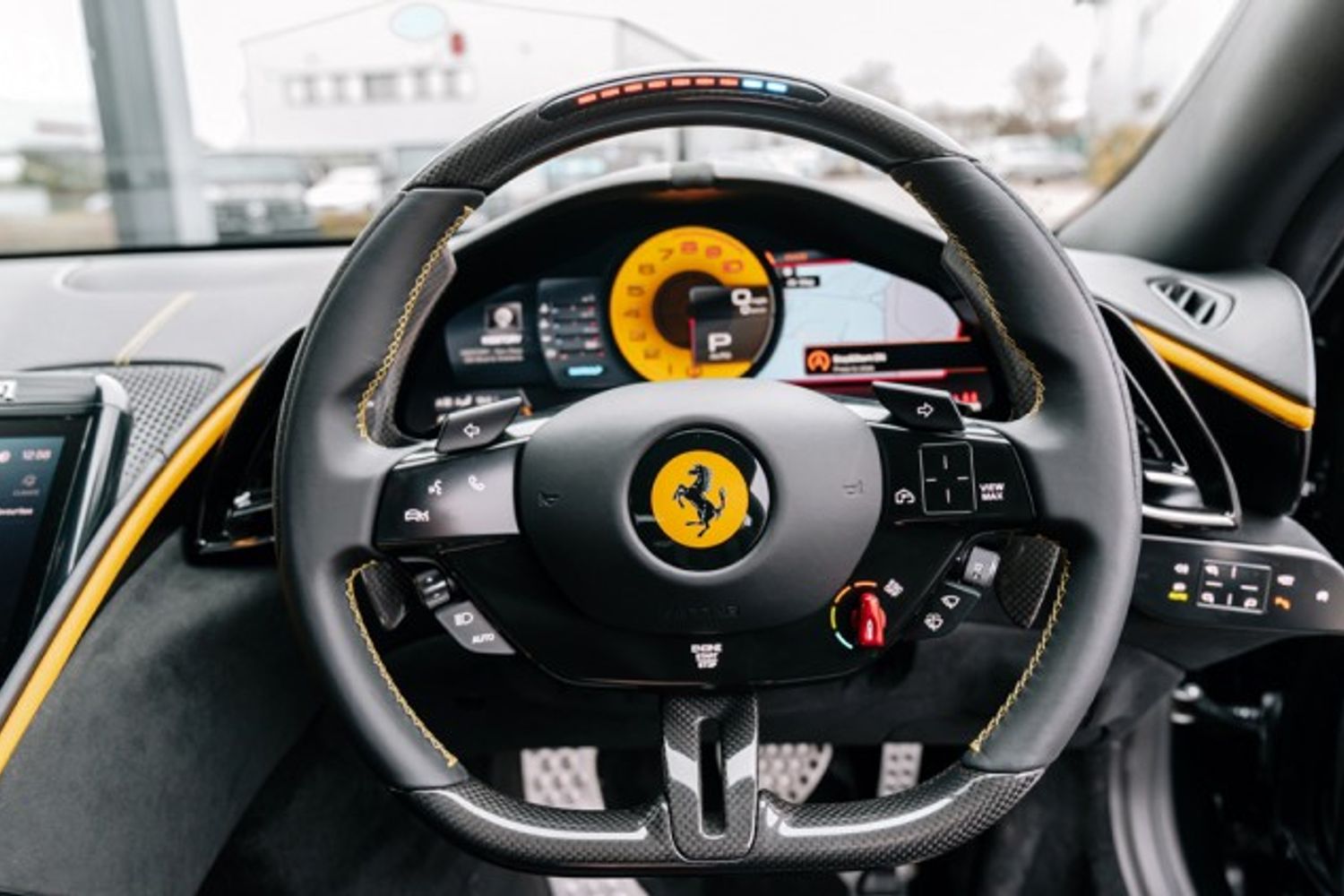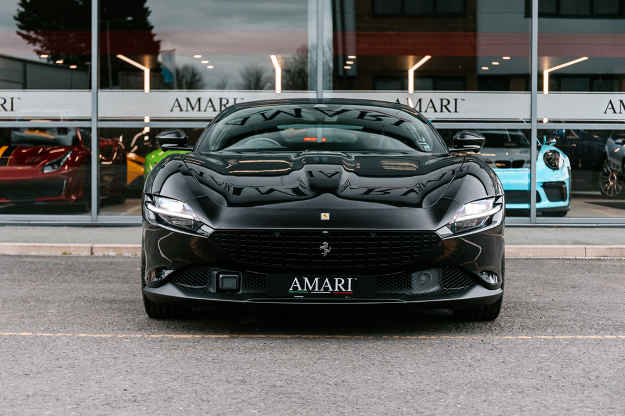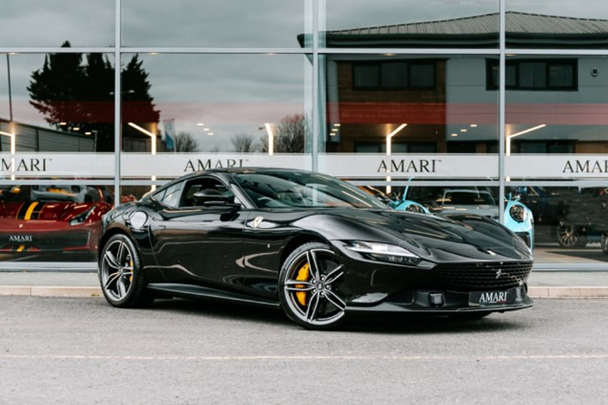 This particular example of the new Ferrari Roma 3.9 was supplied new in March 2021, 21 Registered. Presented to you in Nero Daytona, featuring Brake Calipers in Giallo Modena, featuring Carbon Fibre Wheel Cups. The interior is upholstered in Nero Hide throughout, featuring Square Pattern Style Seats. This vehicle has covered a mere 150 Miles by 1 Owner from New.