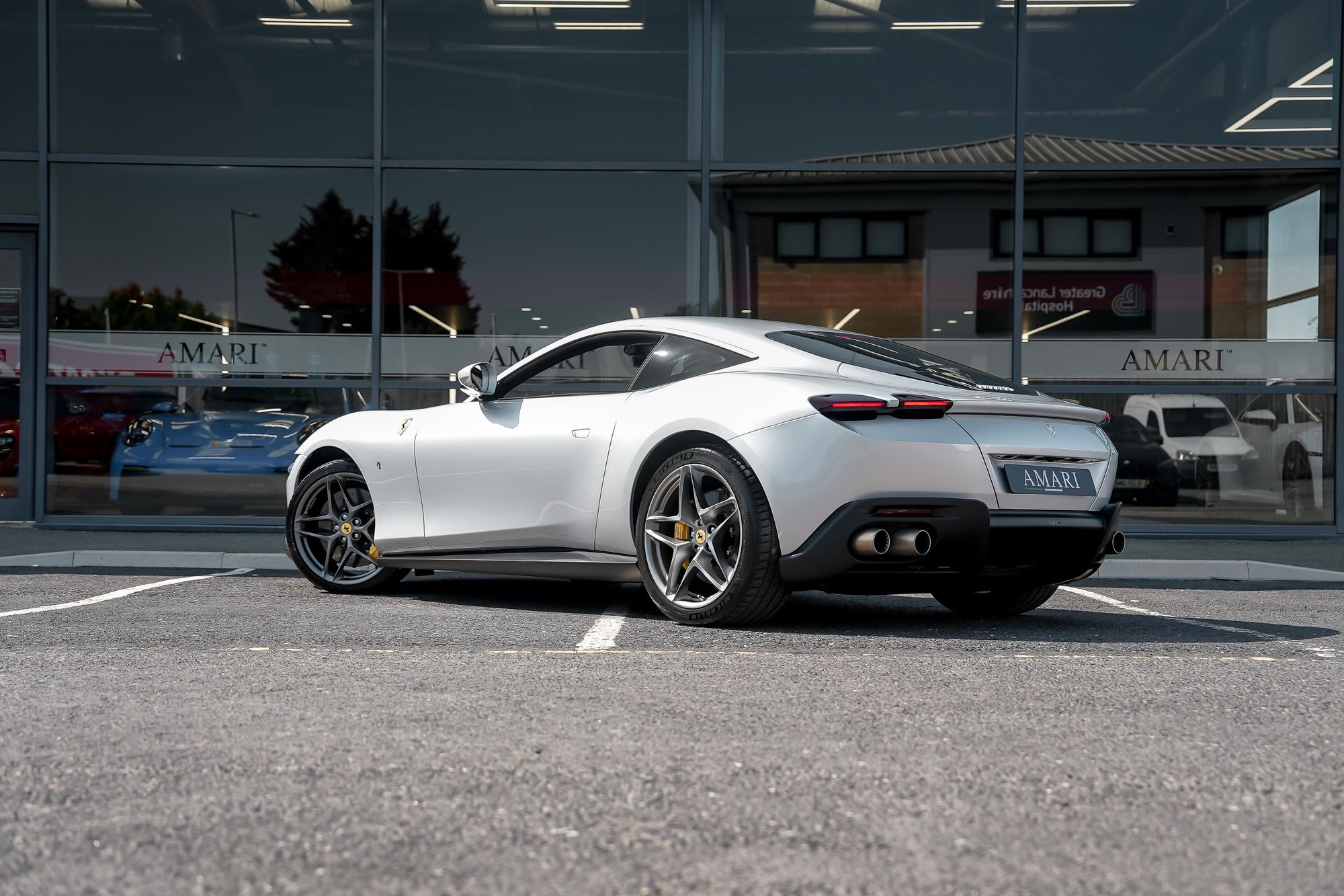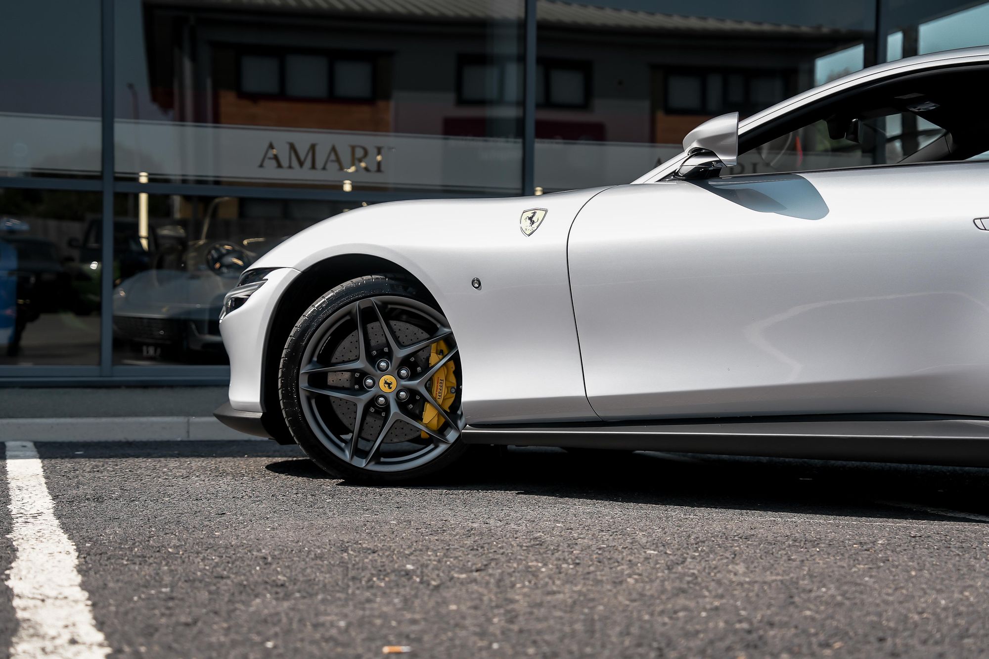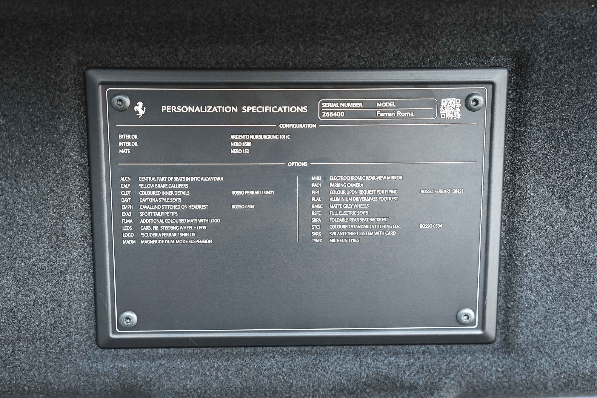 Our New Arrival is finished in Argento Nurburgring with Nero leather & alcantara hide with contrasting rosso piping and stitching through the seats dash board and centre console. 2 keepers covering only 1750 miles the Roma benifits for it remaninder of the 7 year Free Ferrari Servcing Plan until May 2028 and 4 year warranty that expires in May 2025. As well as the option below the Roma is supplied with 2 keys tracker fobs, Ferrari car cover and car charger.
