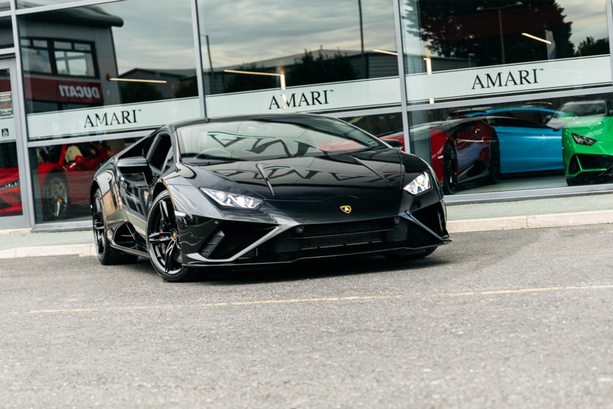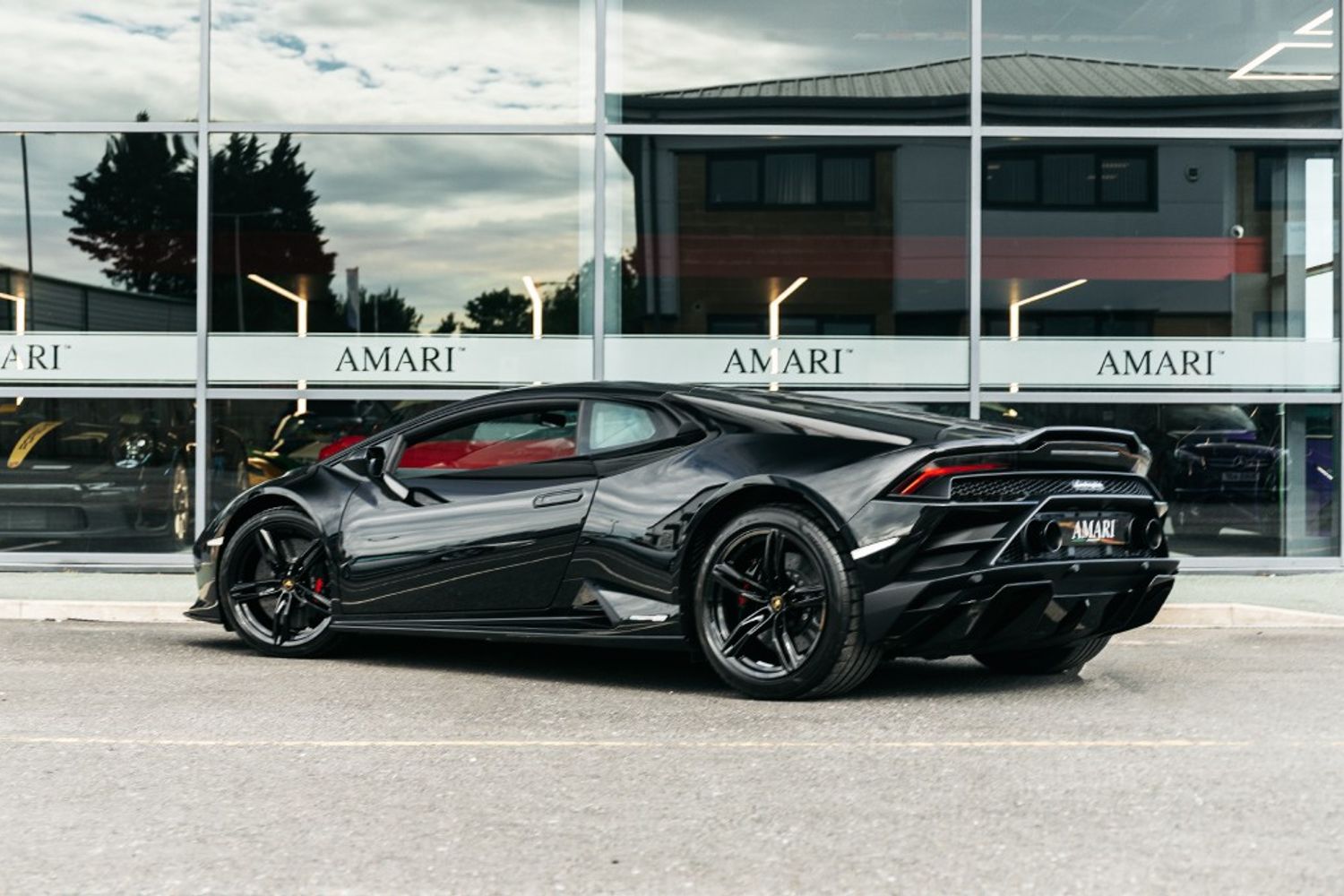 This example of the Lamborghini Huracan LP610-2 EVO RWD was supplied new in April 2021, 21 Registered. Presented to you in Nero Helene featuring Black Calipers with Rosso logo, the interior is upholstered in Black Hide with Rosso stitching throughout. This vehicle has covered a mere 567 Miles by 1 Owner from New.