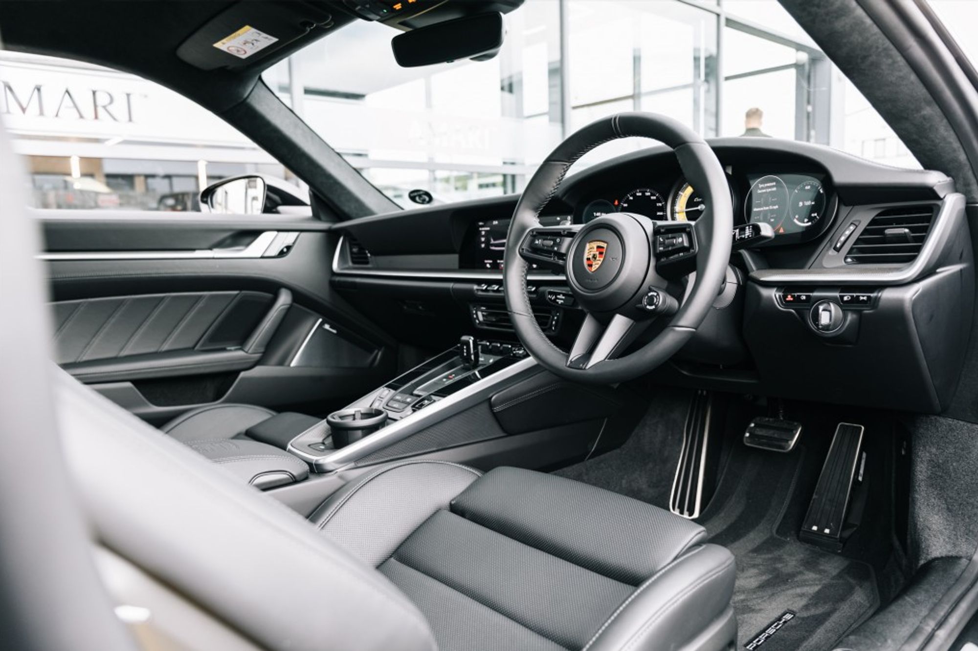 This particular example of the Porsche 911 992 Turbo S PDK was supplied new in May 2021, 21 Registered. Presented to you in Jet Black Metallic featuring 20/21-inch 911 Turbo S Exclusive Design Wheels in High Gloss Black. The interior is upholstered in Black Leather Interior. This vehicle has covered Delivery Miles (55 Miles) with 1 Registered Owner from New. The already extensive specification of the Turbo S is enhanced by the following options: