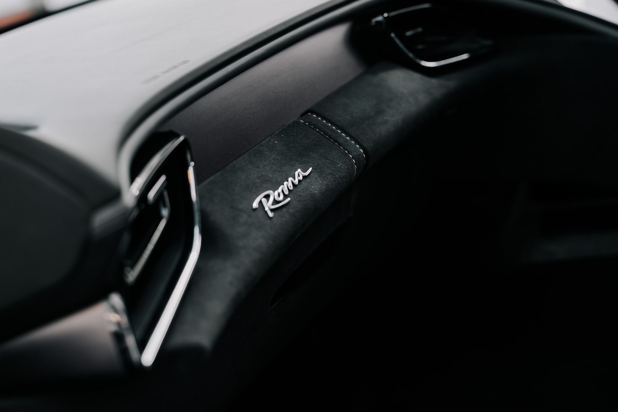 The Ferrari Roma is not only captivating but also technologically advanced, boasting features like Apple CarPlay, ensuring seamless connectivity for all your entertainment and navigation needs. Safety is paramount, and the Roma comes equipped with colored safety belts in striking yellow, enhancing the interior's sporty appeal. The carbon fiber dash inserts add a touch of modernity and flair to the cockpit, setting it apart from the rest.