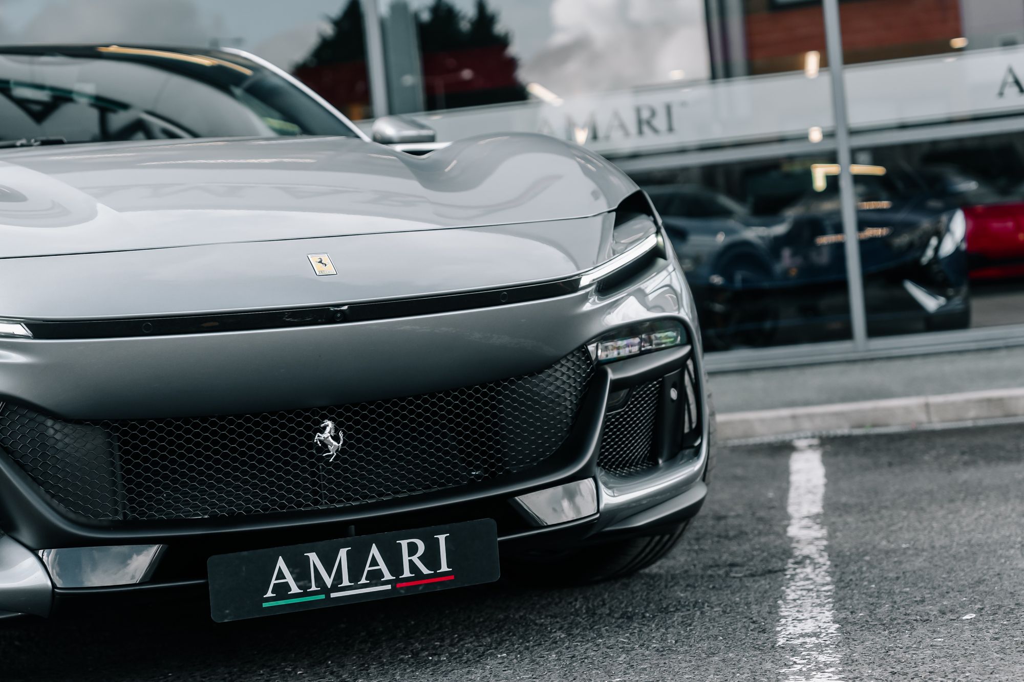 Experience the pinnacle of luxury and performance with the Ferrari Purosangue, meticulously finished in stunning Grigio Titanio over an opulent Blu Sterling interior. Ferrari’s debut in the SUV segment is nothing short of revolutionary, blending unparalleled craftsmanship with the brand’s signature performance.