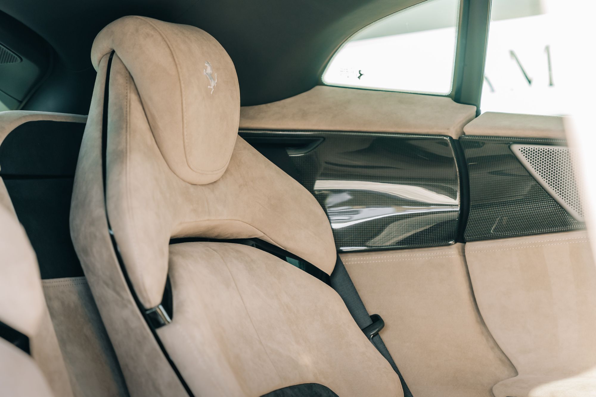 The 2024 Ferrari Purosangue represents Ferrari's first SUV, blending high-performance capability with the practicality of a luxury crossover. Powered by a 6.5-litre V12 engine, it produces over 700 bhp, allowing it to achieve supercar-like performance while offering spaciousness and all-wheel drive. The Purosangue combines Ferrari’s signature racing heritage with everyday usability, featuring cutting-edge technology, carbon fibre components, and a luxurious interior. This model has a stunning exterior in Verde Dora, paired with a Tortora Alcantara interior and carbon fibre accents, enhancing its exclusivity and premium feel.